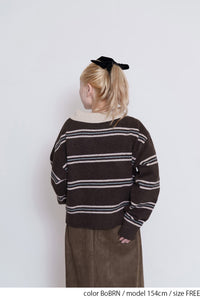 衿と前立てに配色を施したデザインが顔まわりを明るく見せ、ベーシックなボーダー柄に程よいアクセントをプラス。