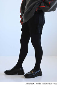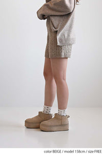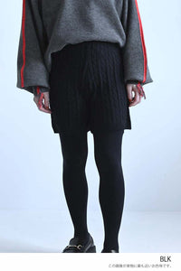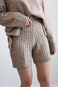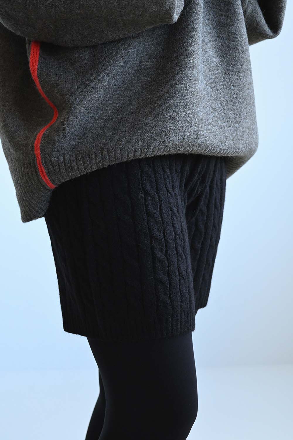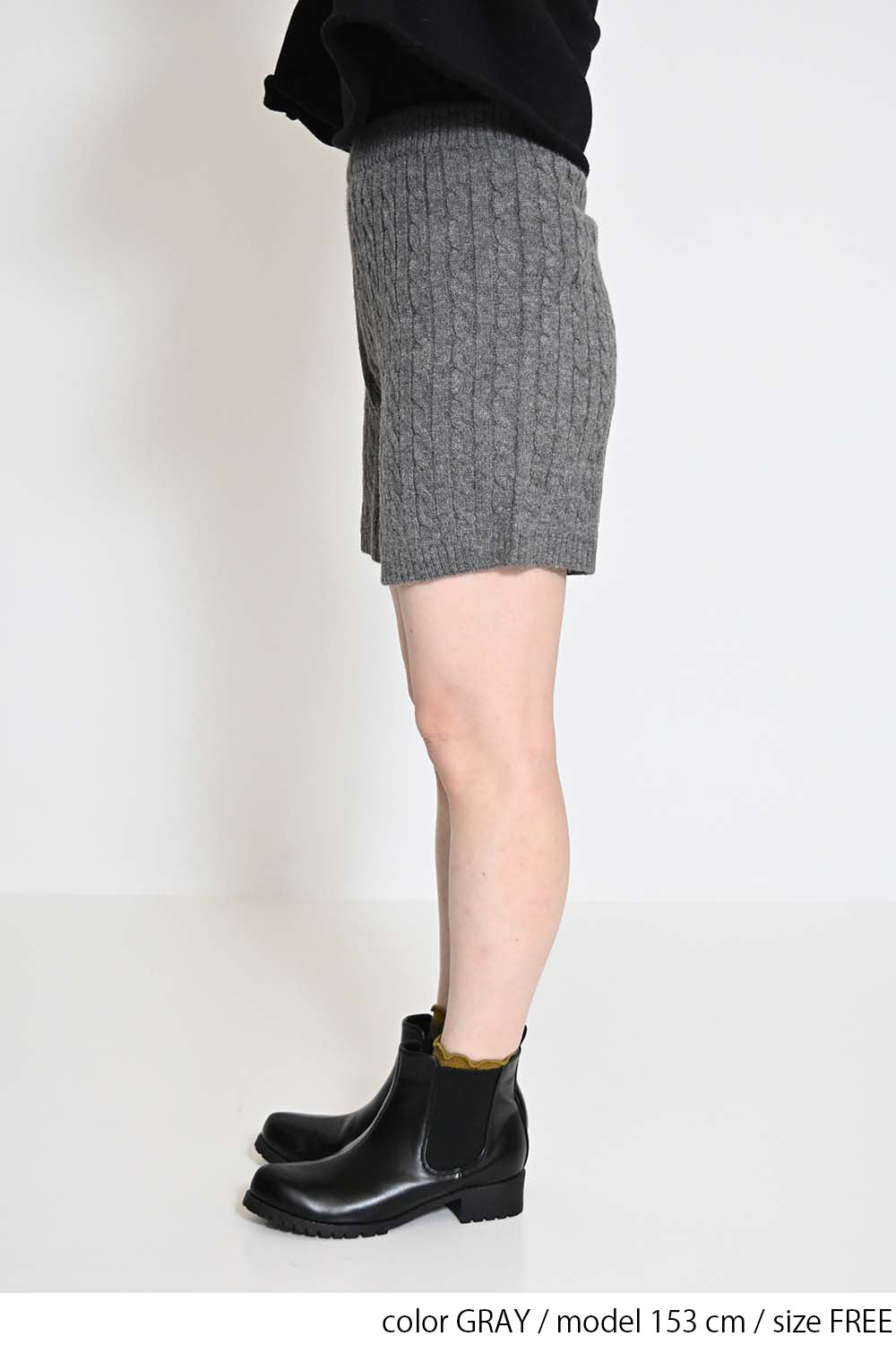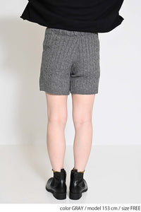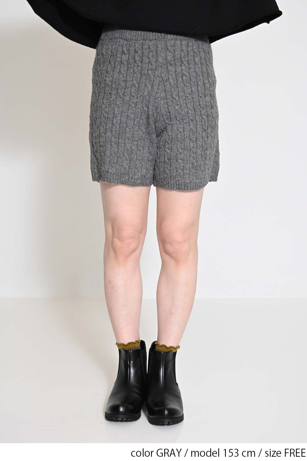 ふんわりとした表情がかわいい、ケーブル編みのニットショートパンツ。
