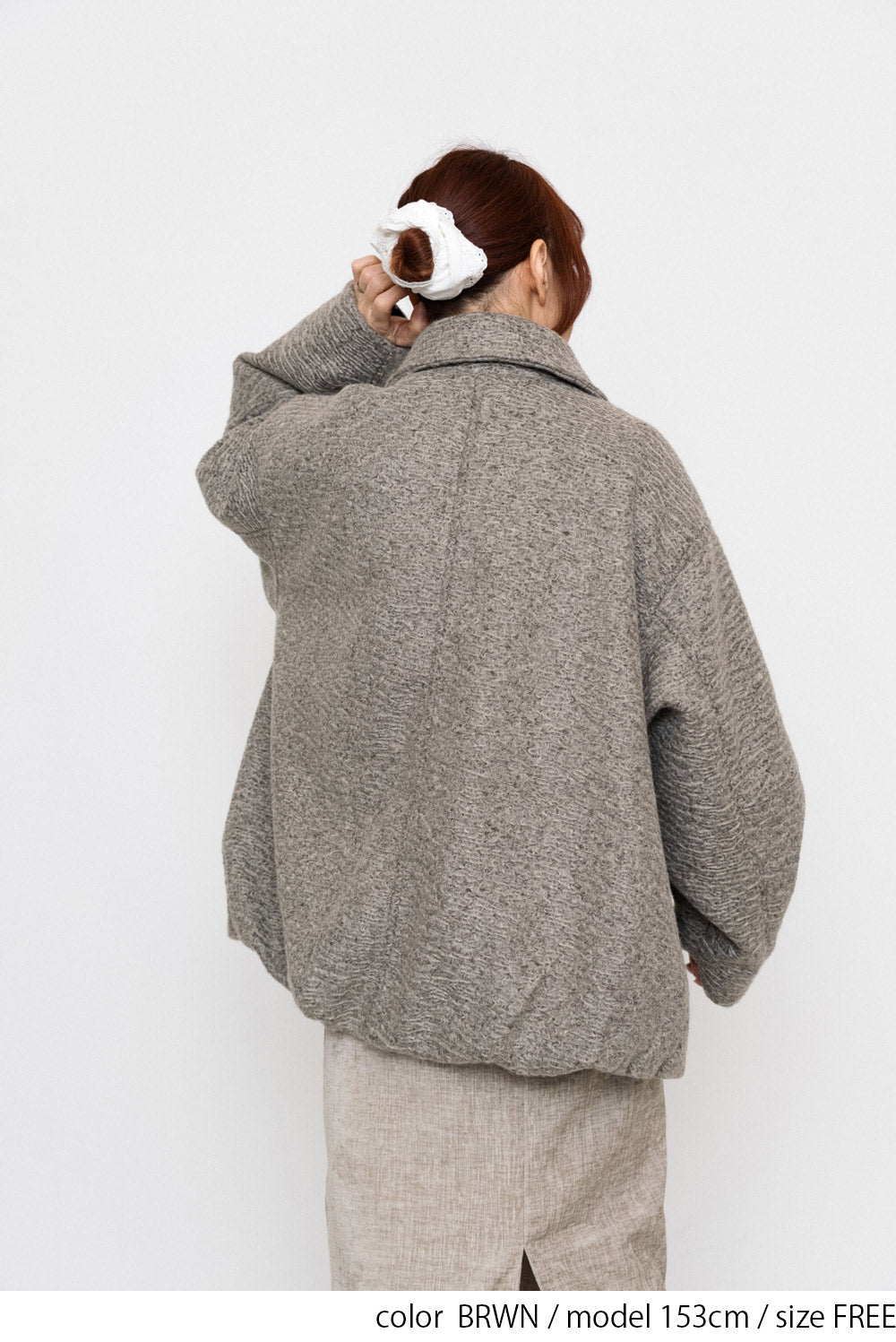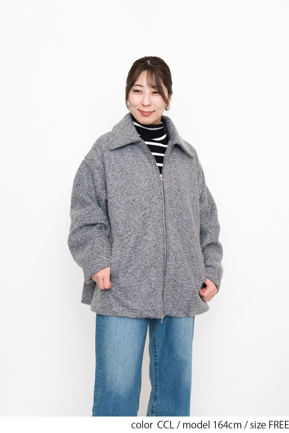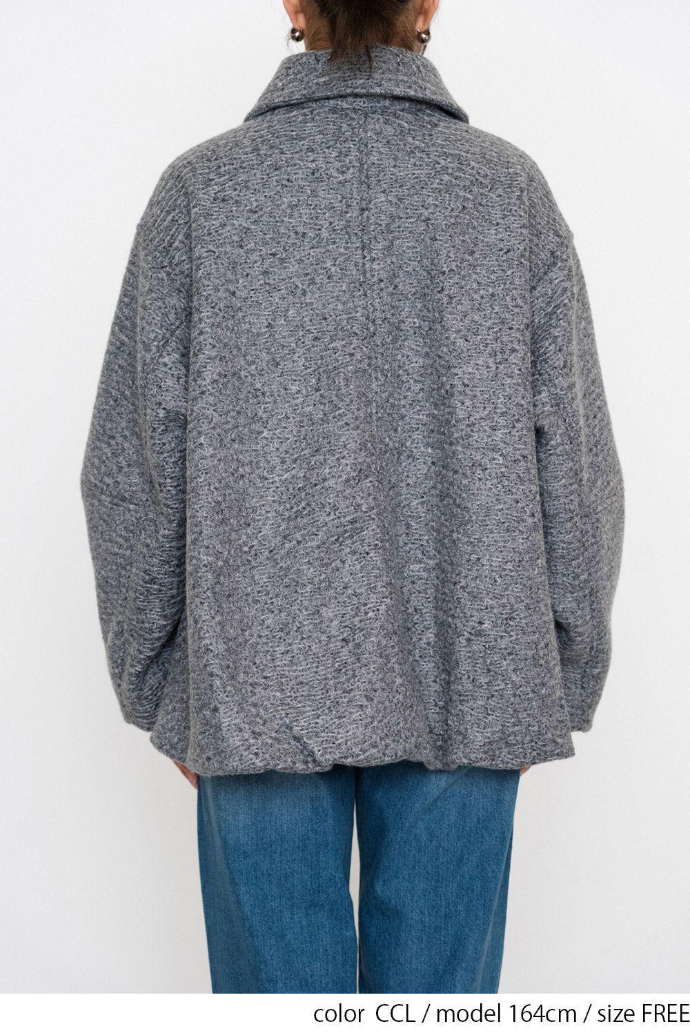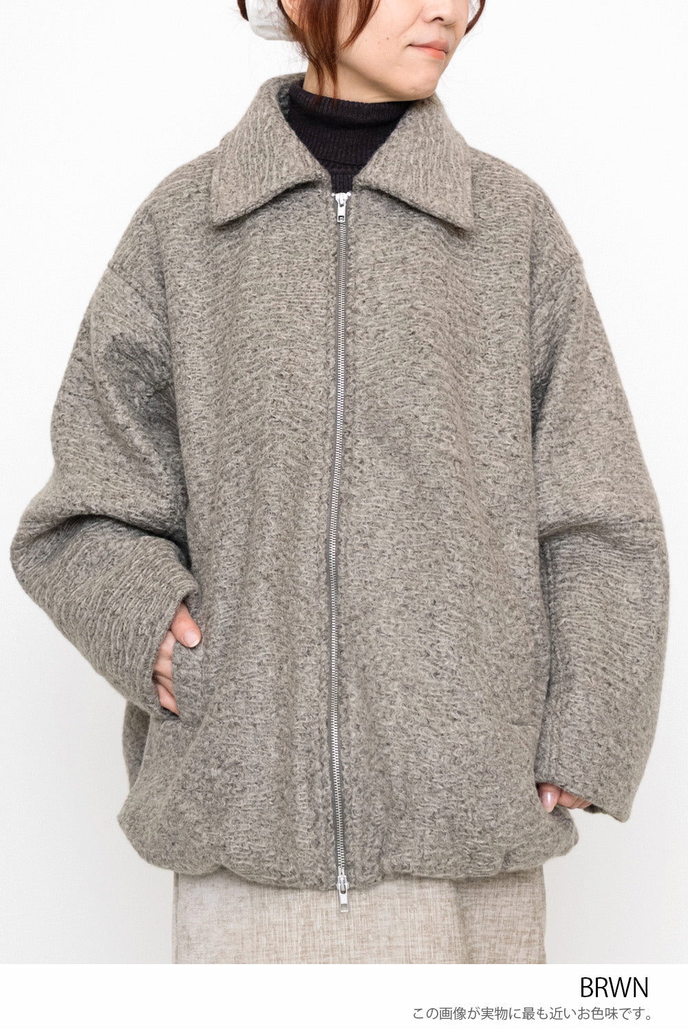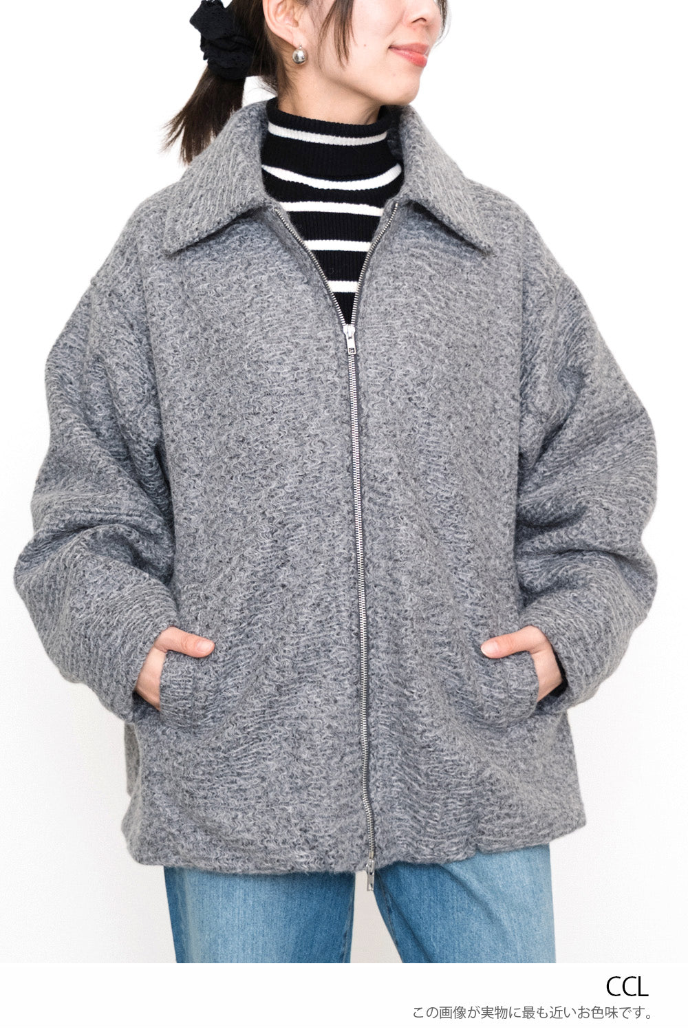 ふんわりとしたカールシャギー素材が魅力の、バルーンシルエットジャケット。