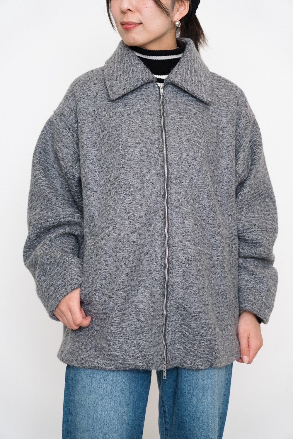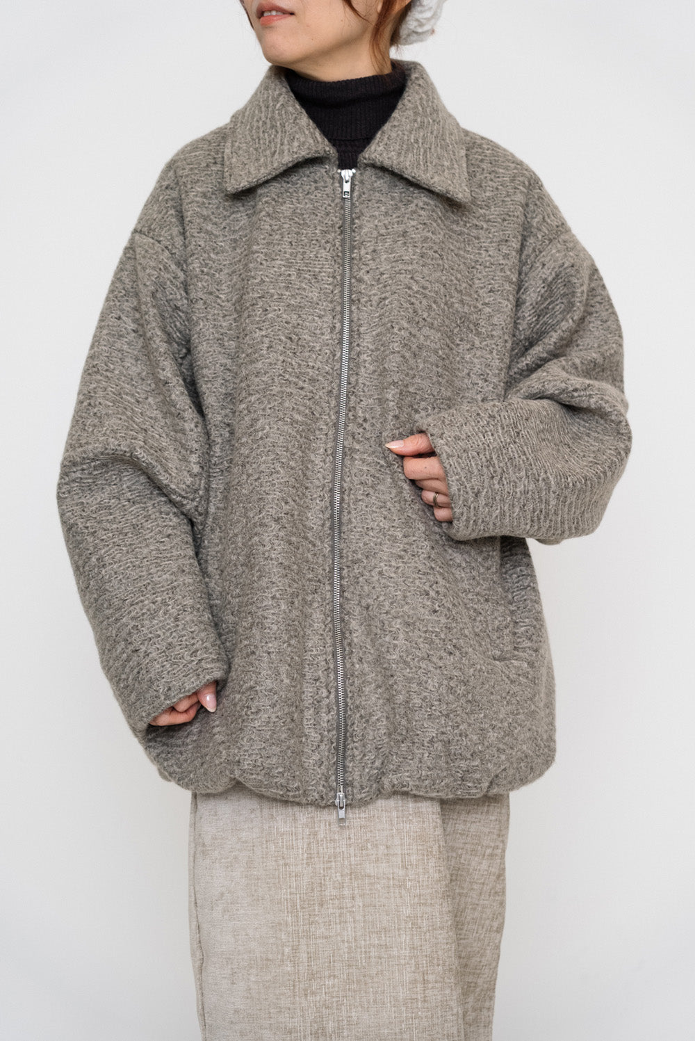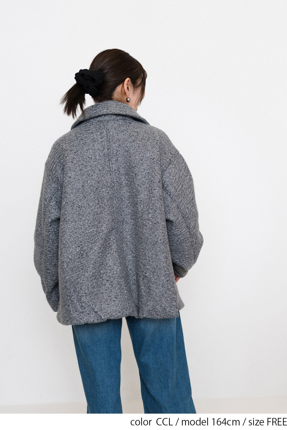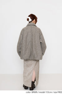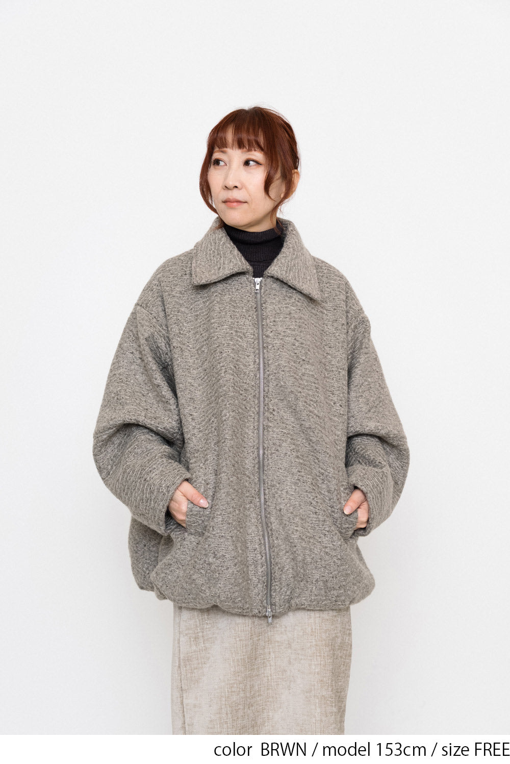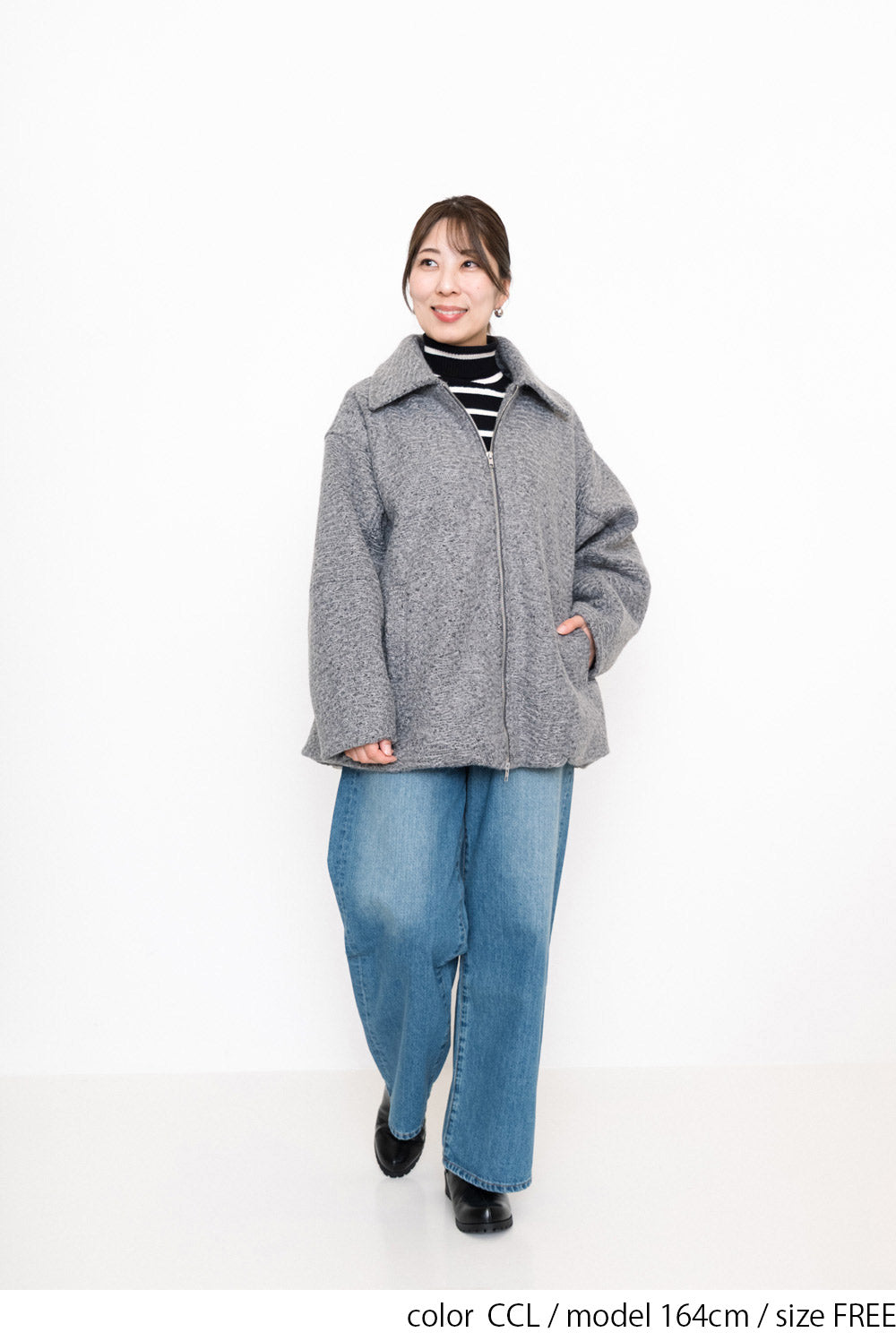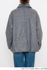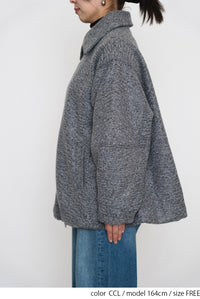 ふんわりとしたカールシャギー素材が魅力の、バルーンシルエットジャケット。