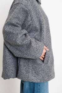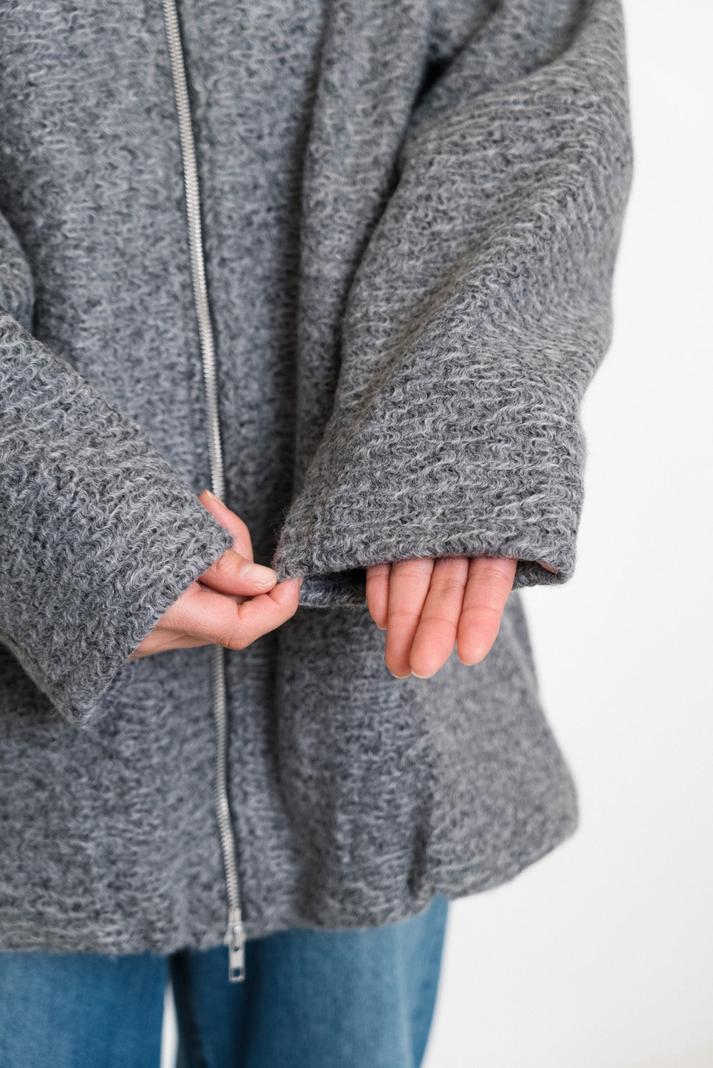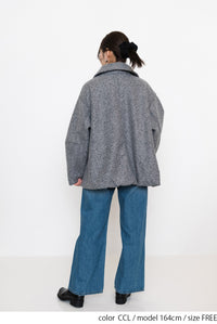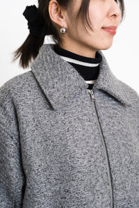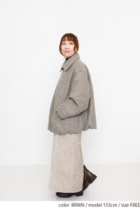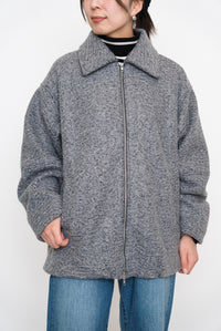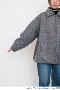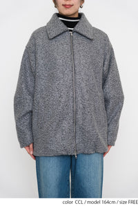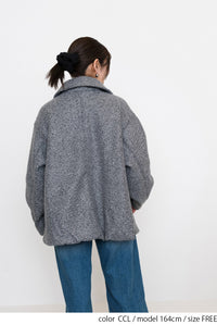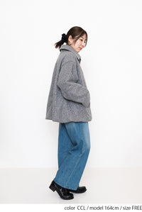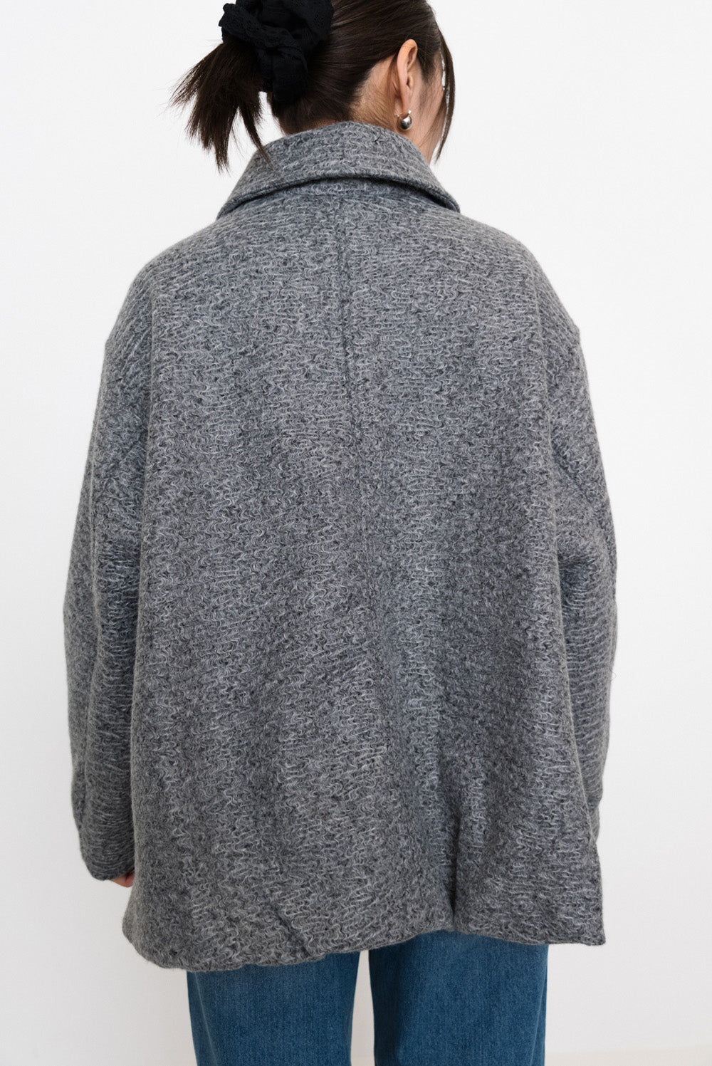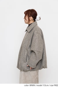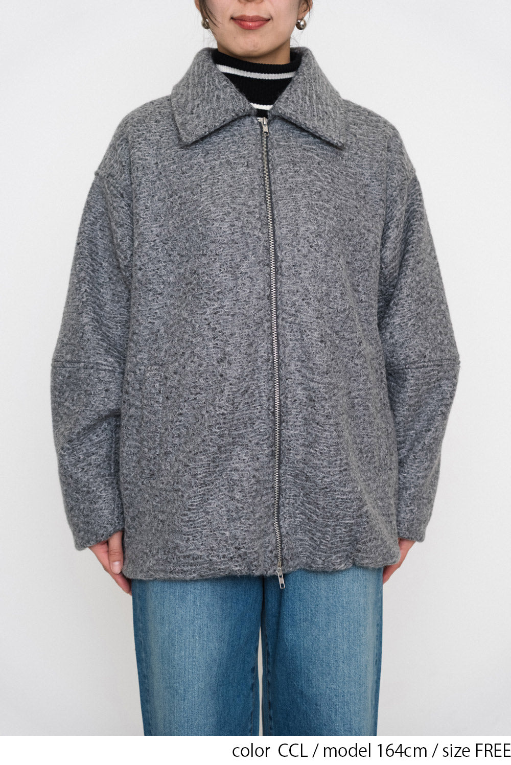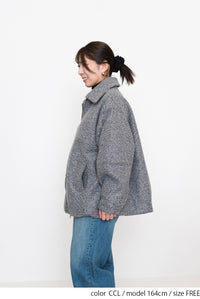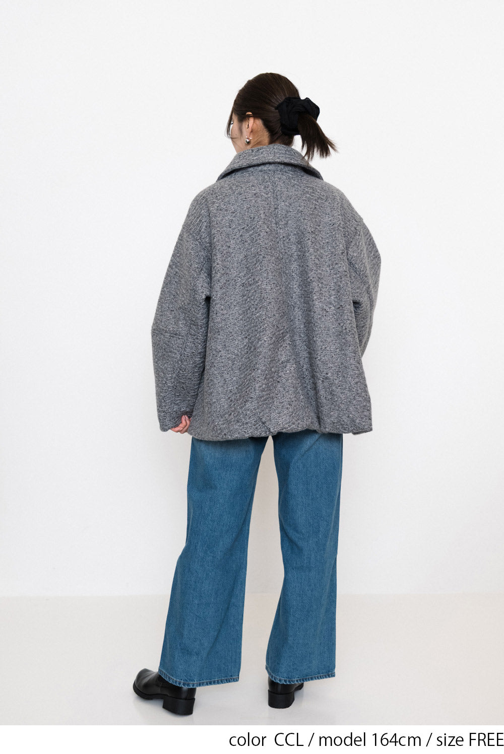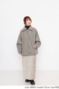 ふんわりとしたカールシャギー素材が魅力の、バルーンシルエットジャケット。