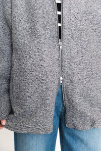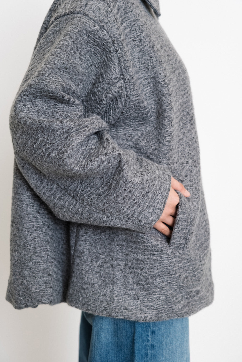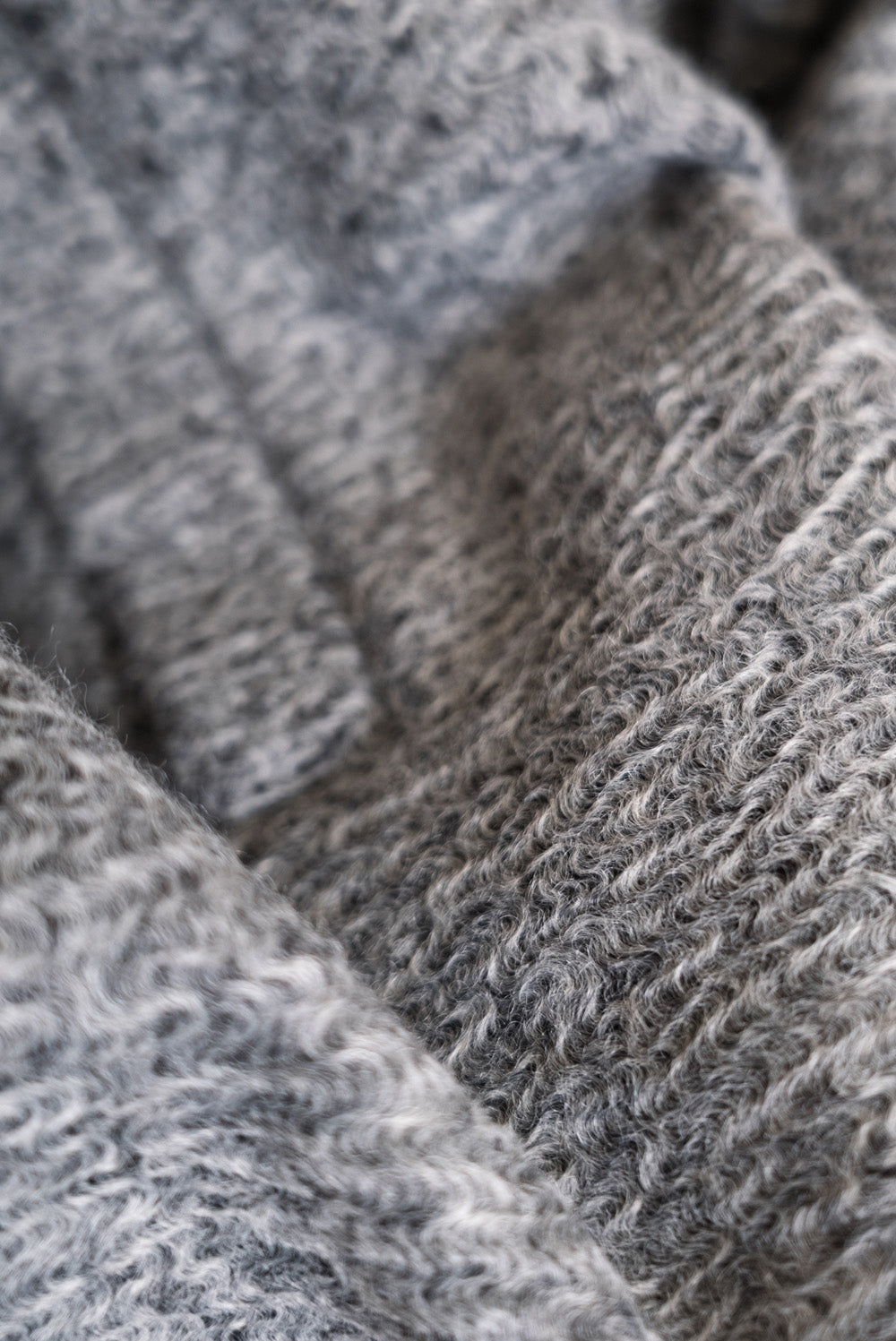 やや毛足のあるカールシャギーが柔らかな表情を作り、羽織るだけで季節感と温かみをプラスしてくれます。