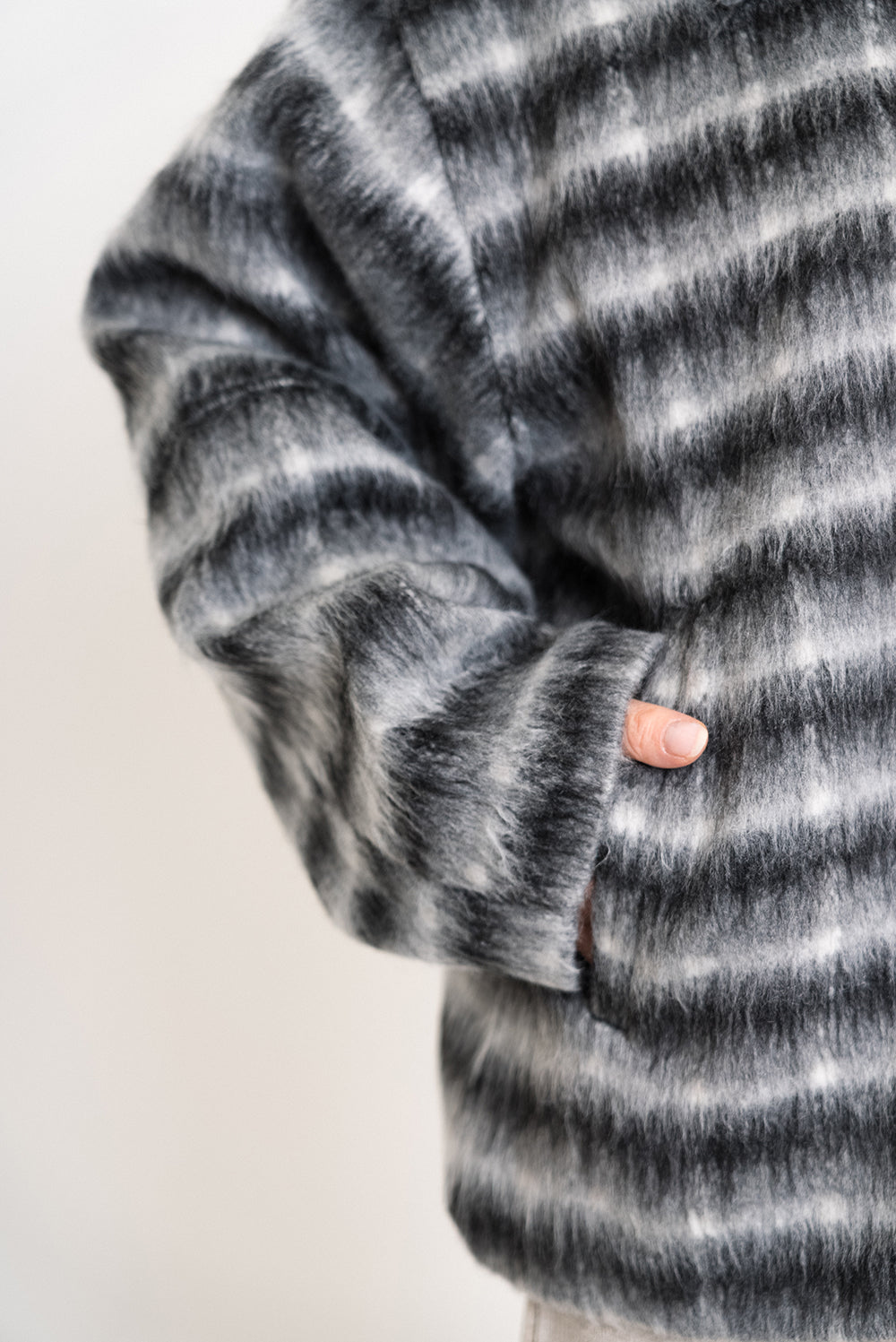 毛足のあるシャギー素材に立体感をプラスし、羽織るだけで冬らしいあたたかみのあるスタイルが完成します。