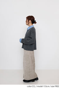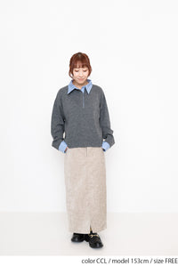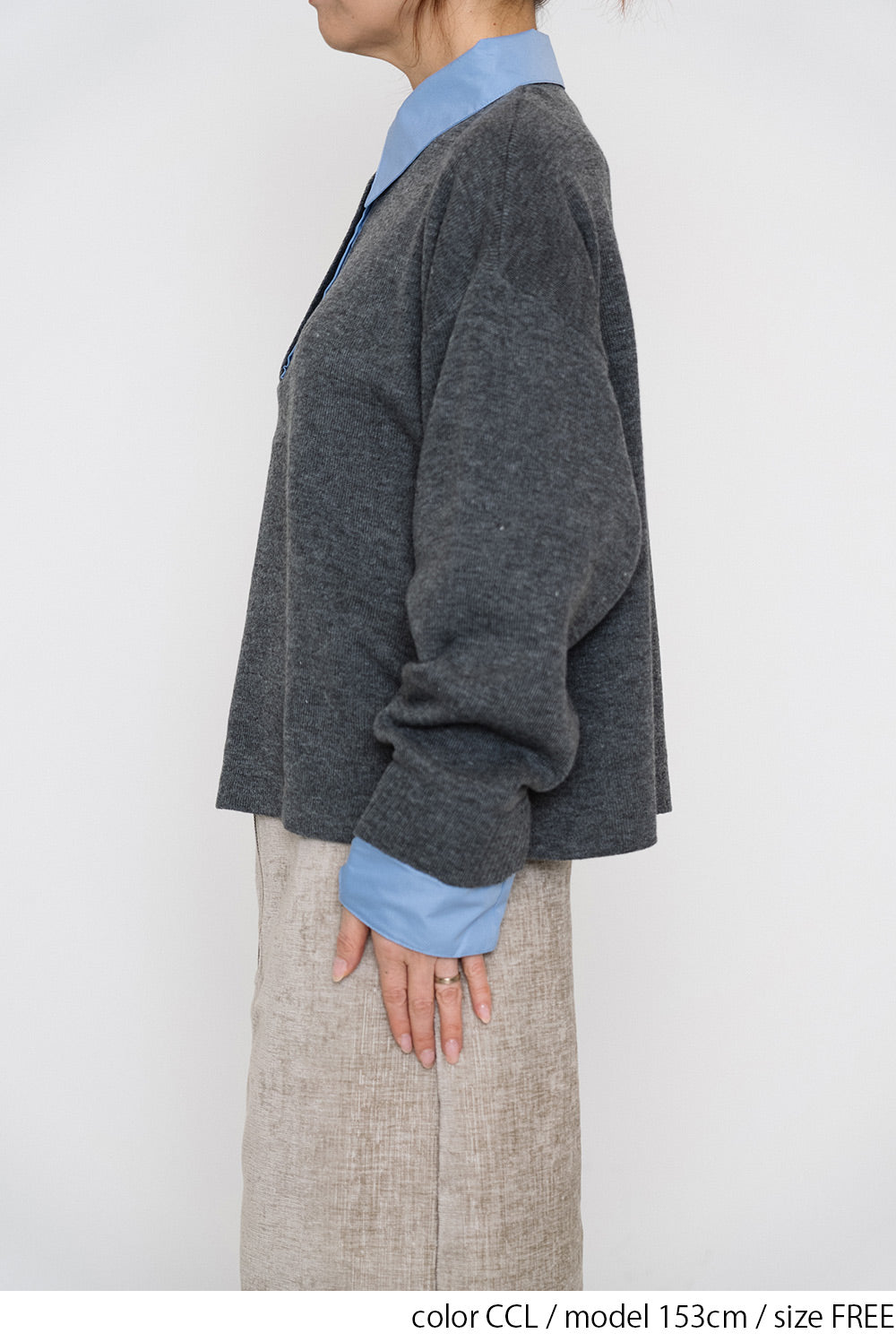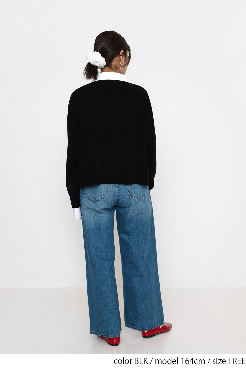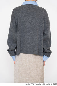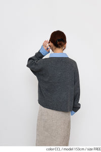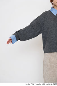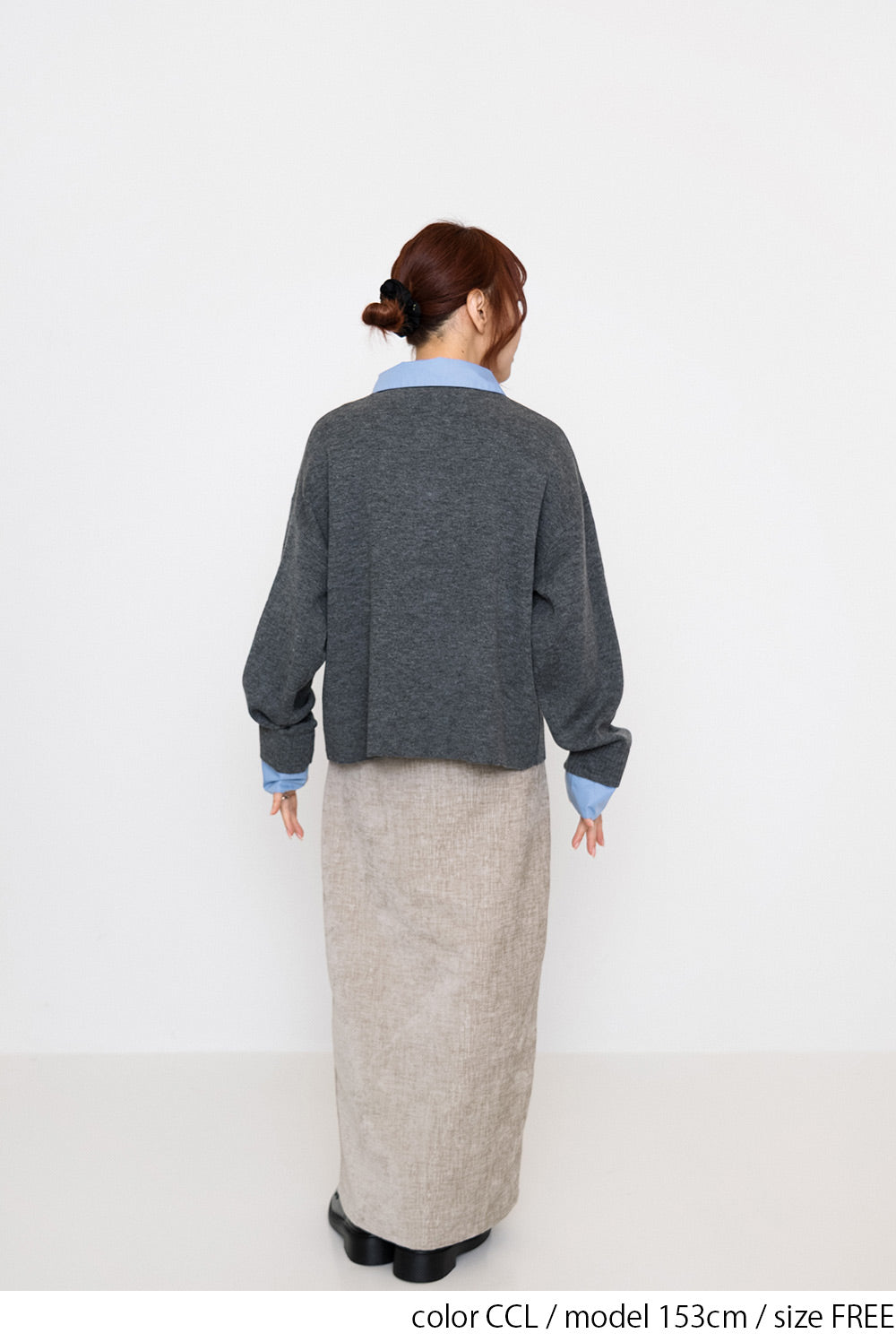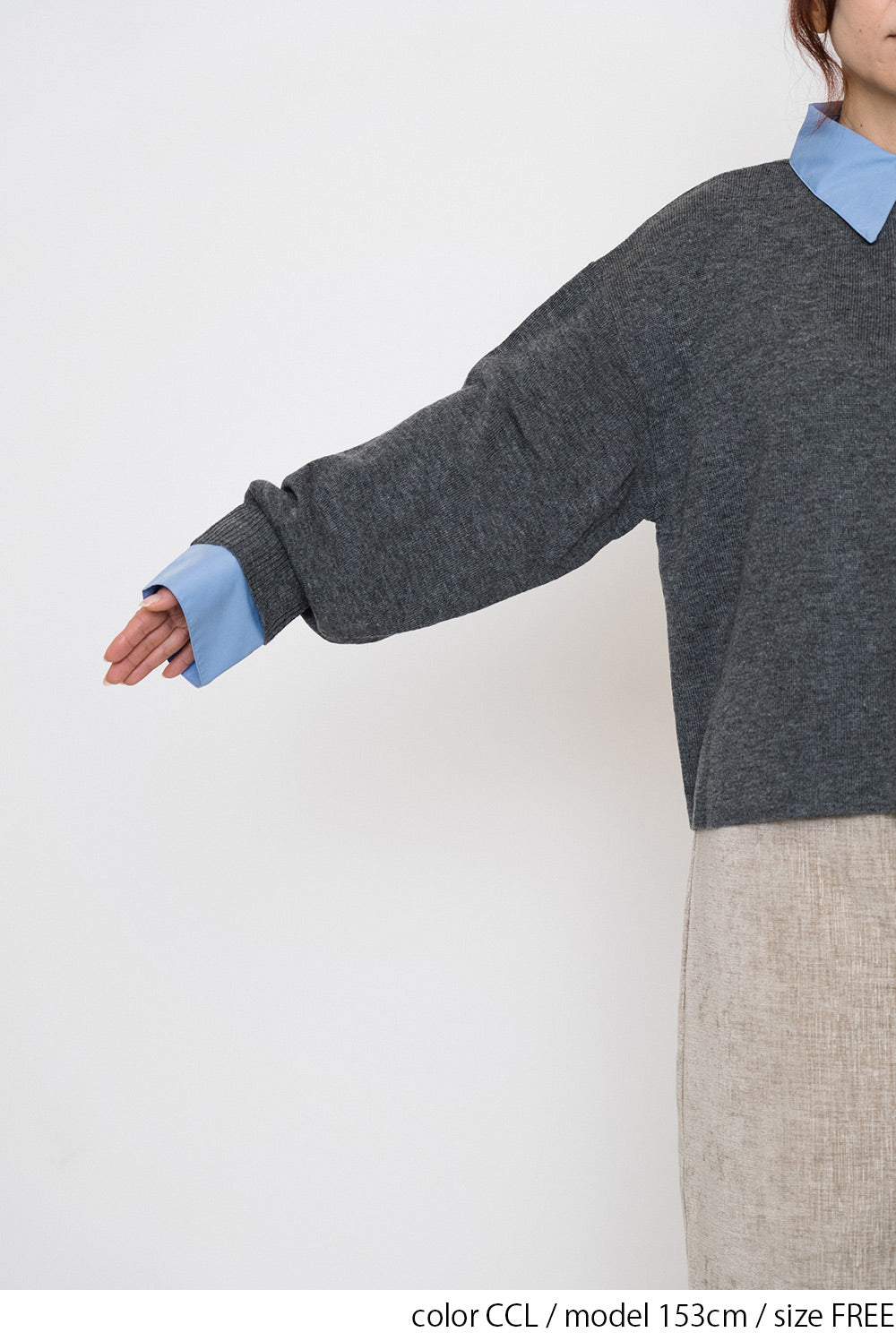 ふんわりとしたバルキーニット素材で、ほどよいゆとりのある身幅で体のラインをデニムにもスカートにも合わせやすい着丈バランス。