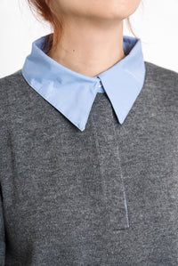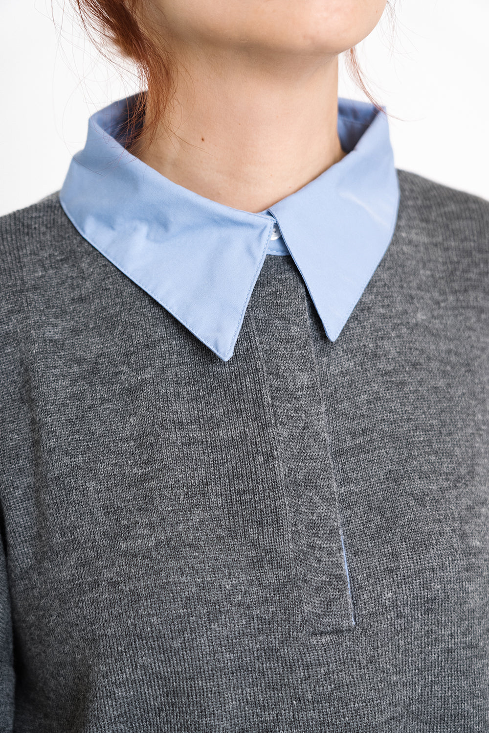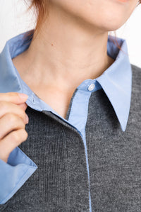軽くて暖かいアクリル100%ニット素材と、丈夫で肌触りの良いポリエステルと綿混のシャツ素材