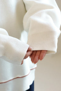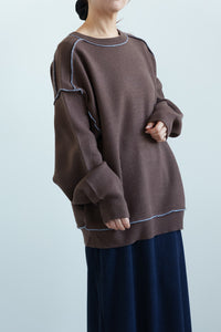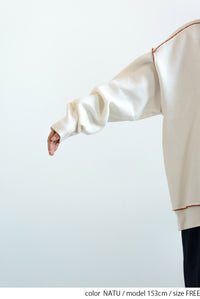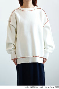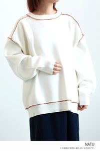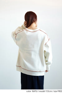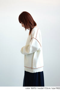 柔らかく軽い、優しい肌触りが魅力のアルパカタッチ素材を使用し、見た目にも着心地にもあたたかみを感じられる一枚です。