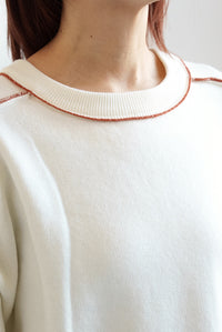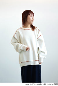 配色ラインがさりげないアクセントになった、アルパカタッチのふんわりニットチュニック。