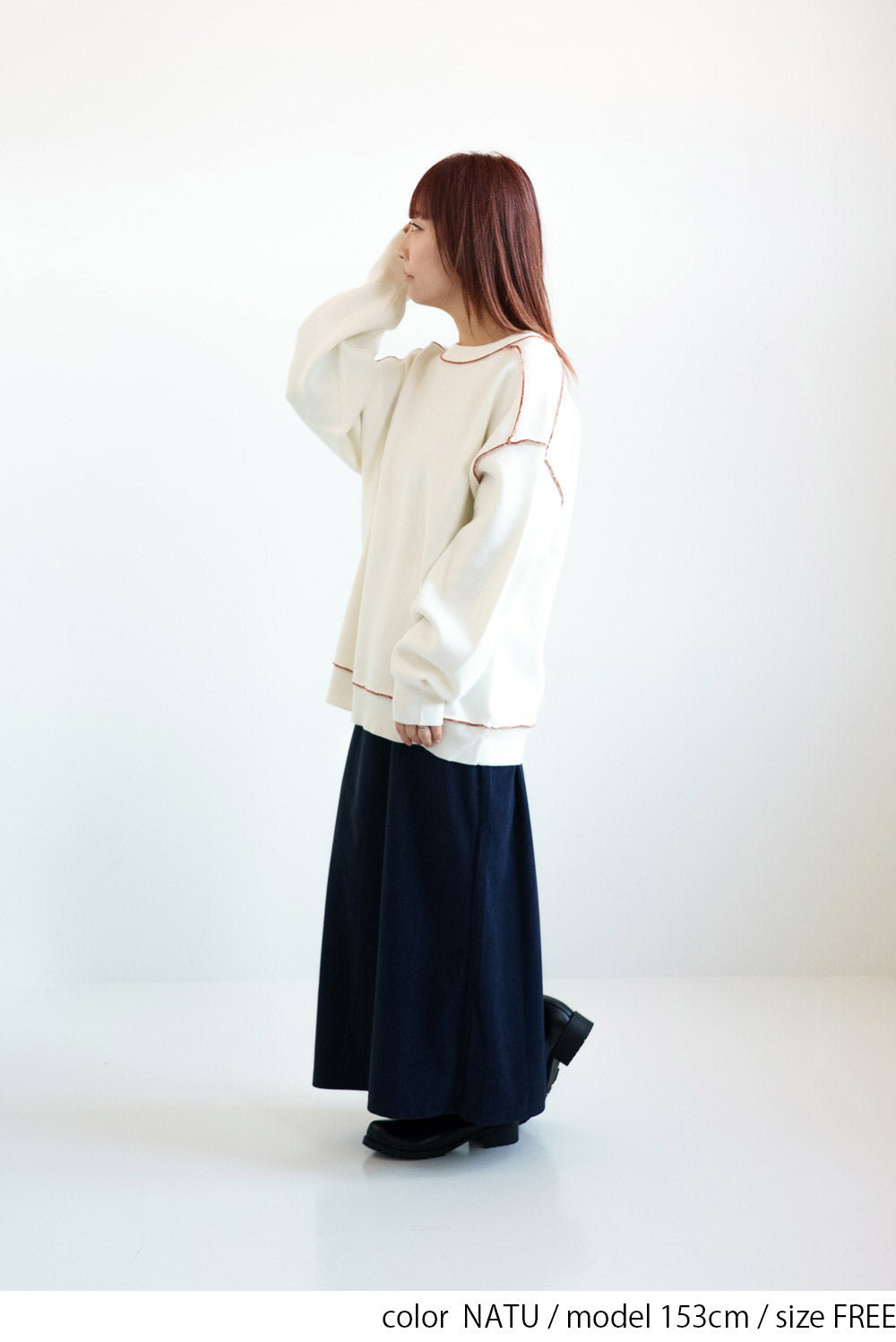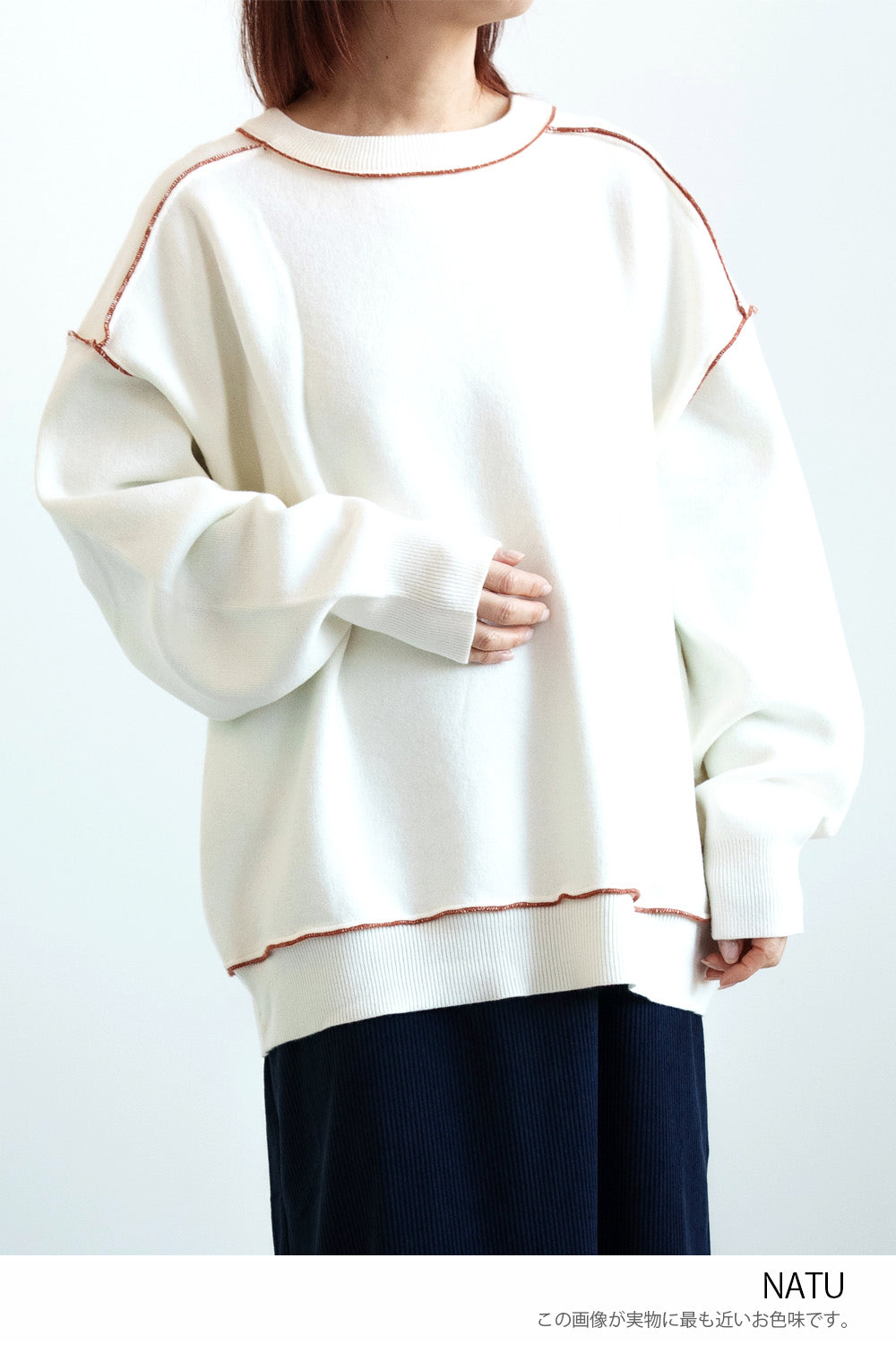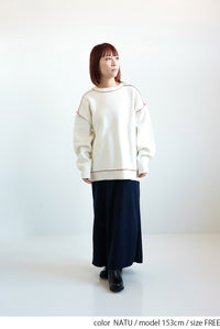 程よくゆったりとしたシルエットで体のラインを拾いにくく、チュニック丈が気になる腰まわりを自然にカバーしてくれます。