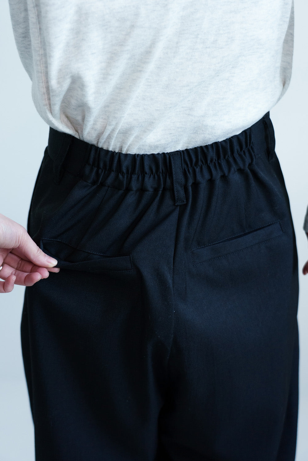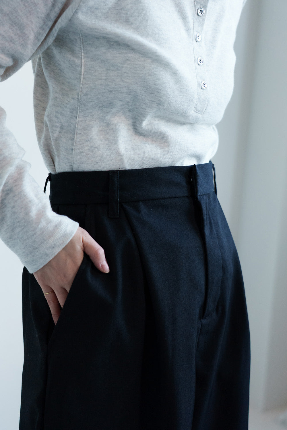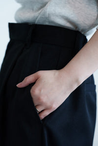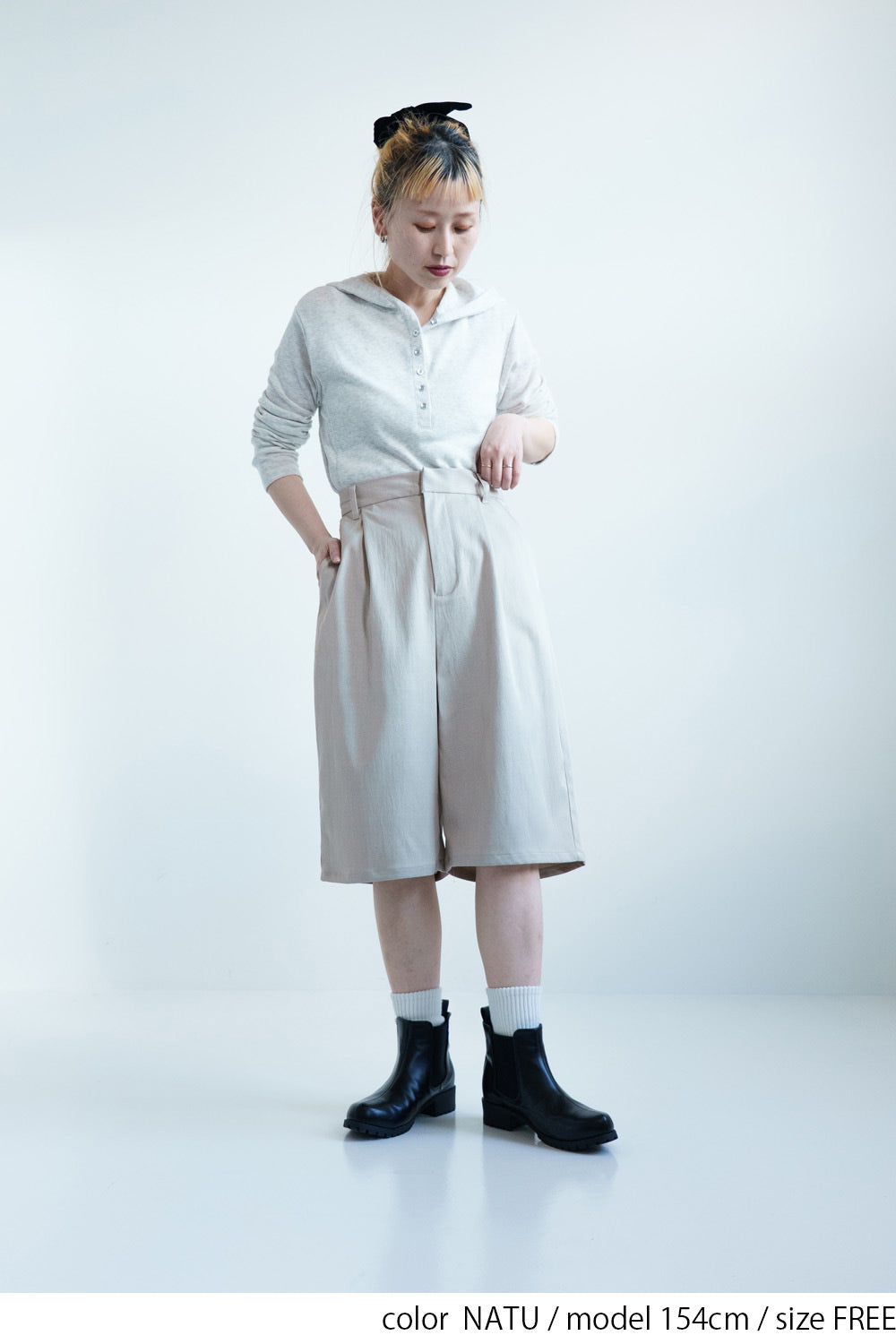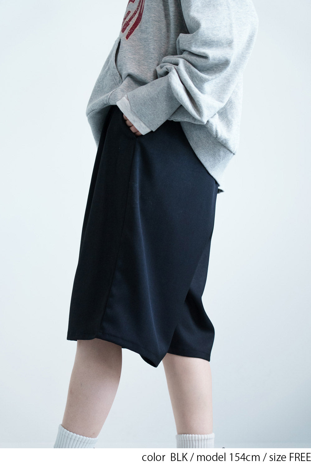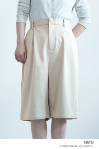 TRツイル素材は落ち感があり、ハーフ丈でもラフになりすぎず上品な印象に仕上がります。
