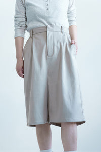 きれいめにもカジュアルにも使いやすい、タックハーフパンツ。