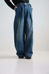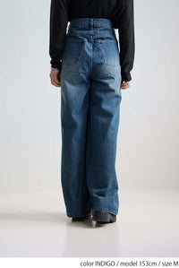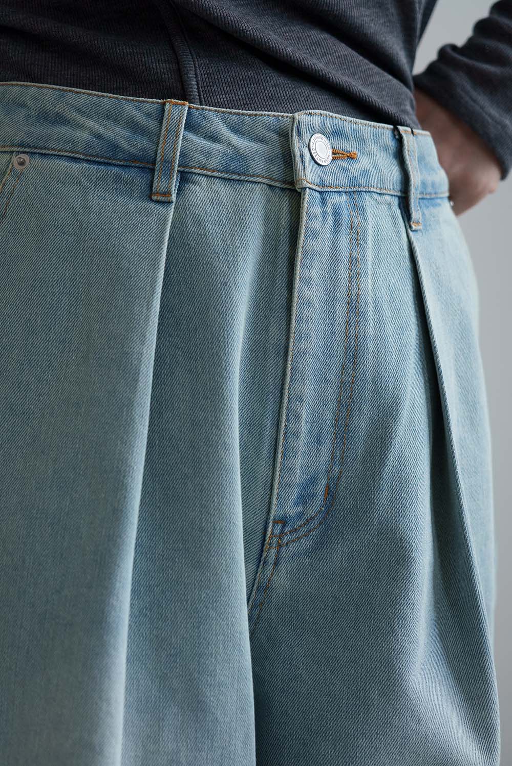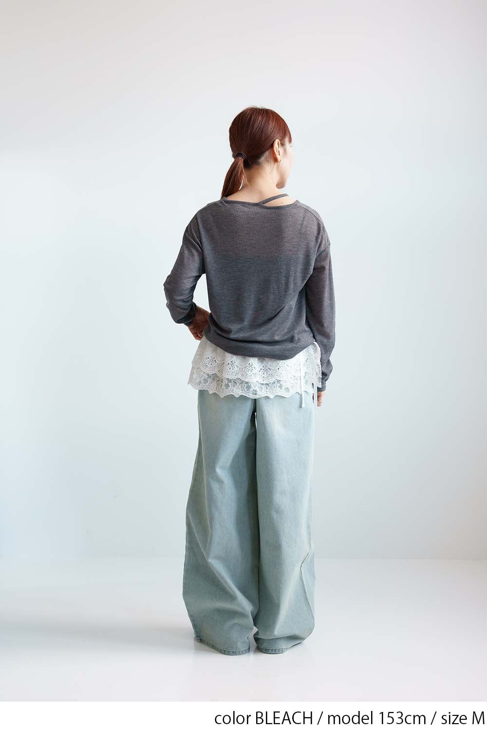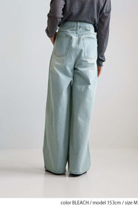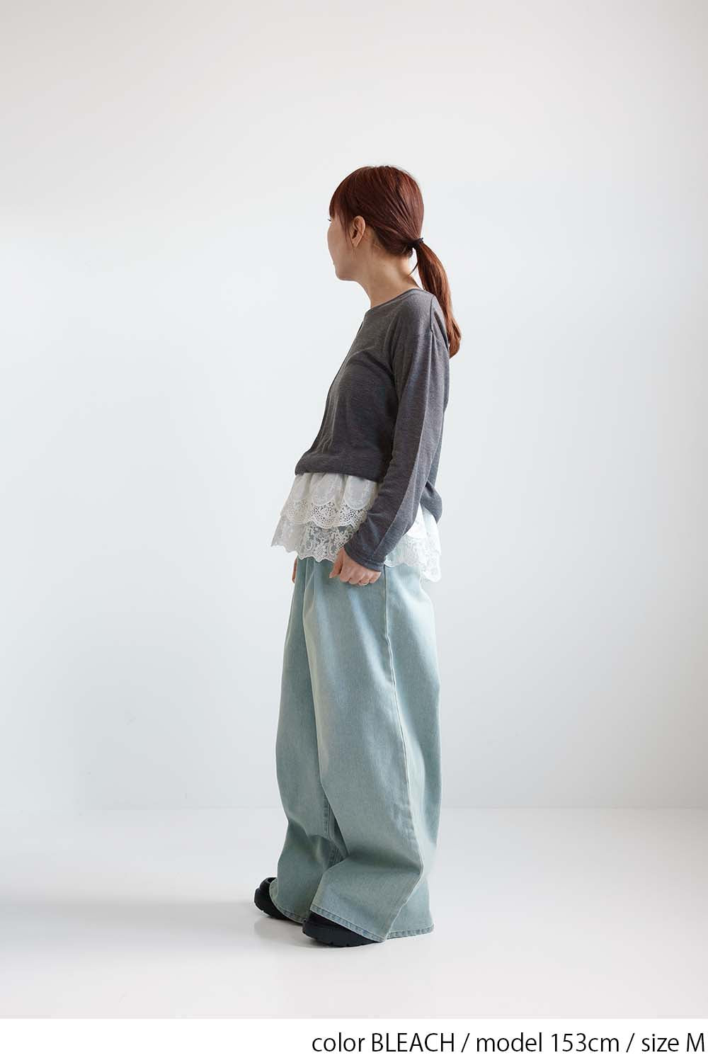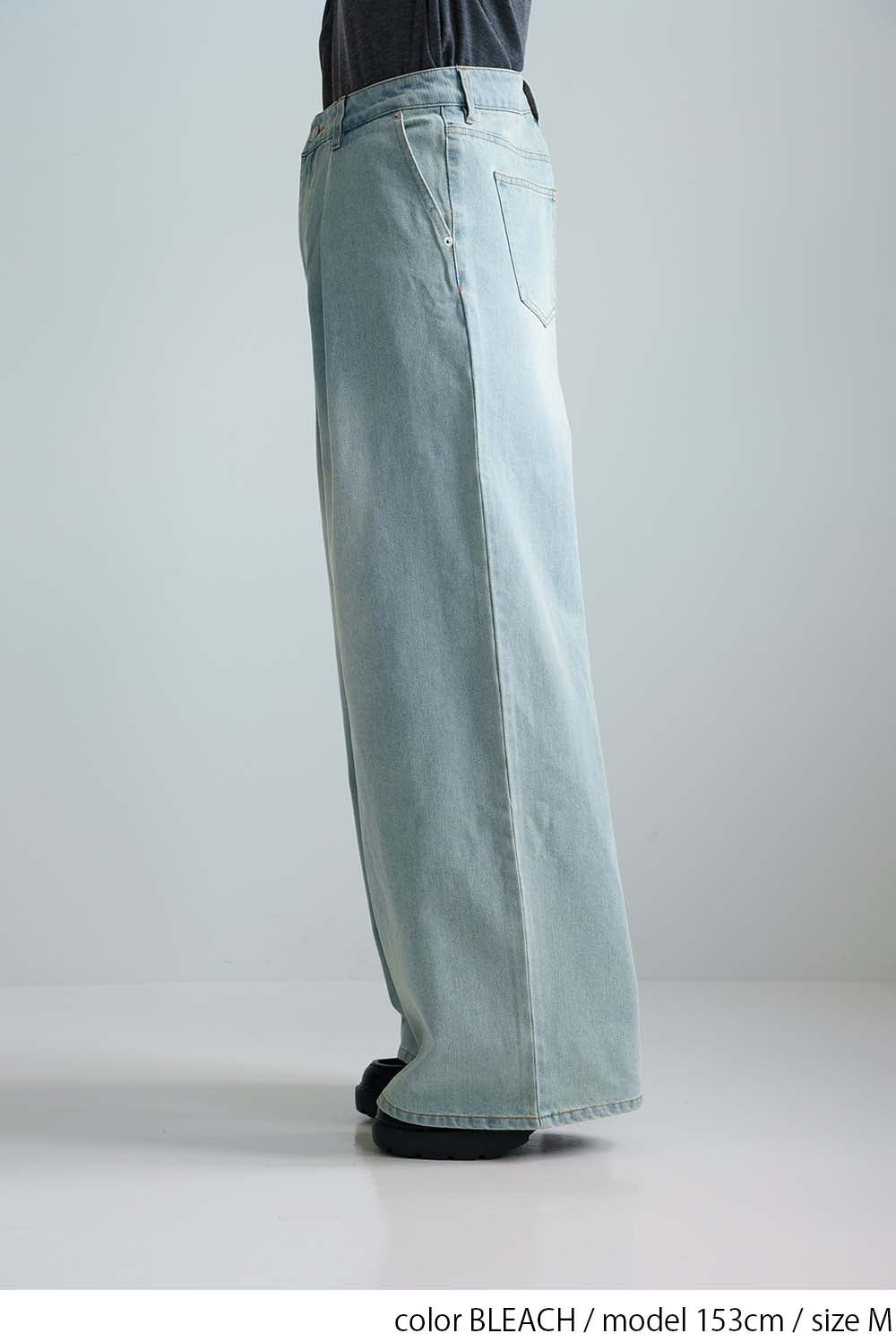 程よい色落ち加工がこなれた印象を演出するデニムタックワイドパンツ。
