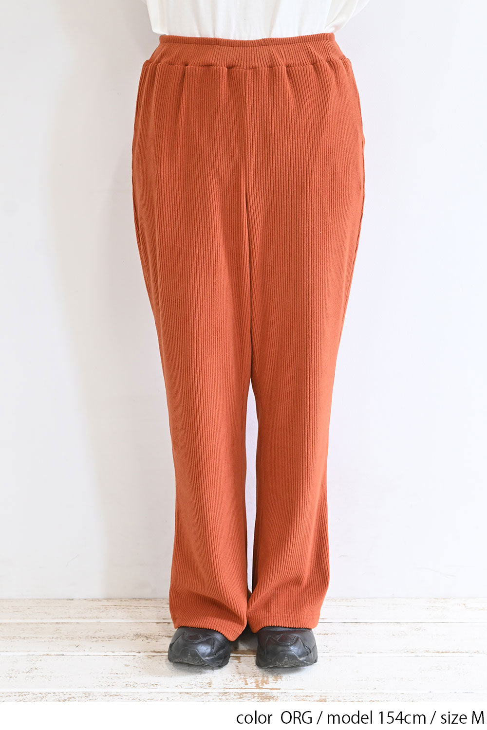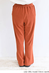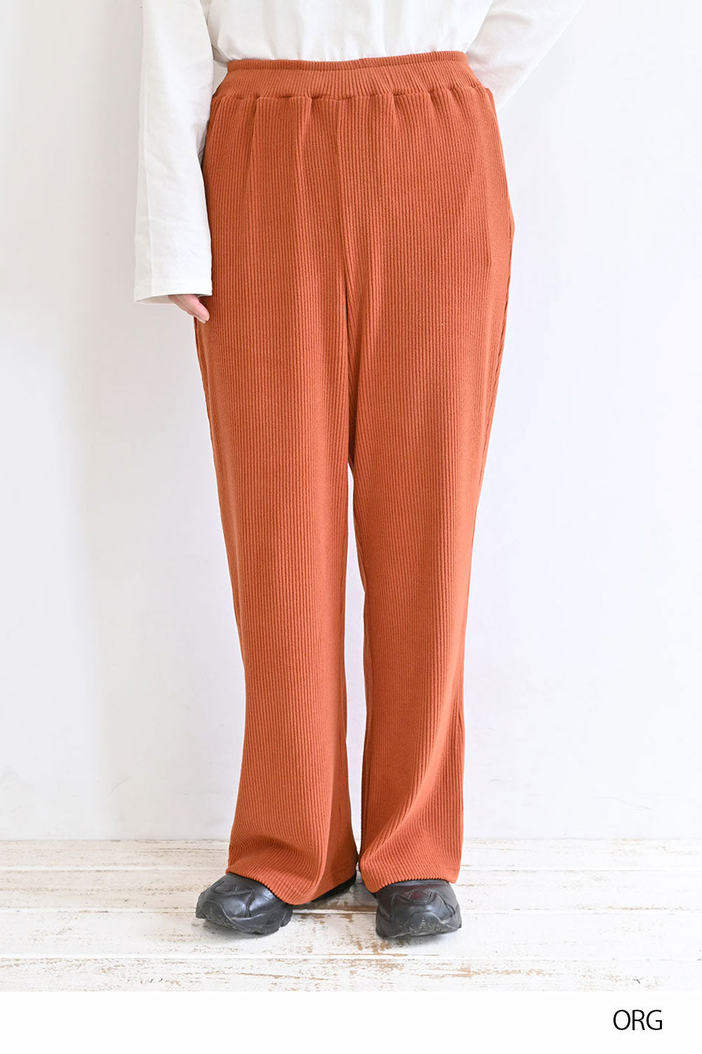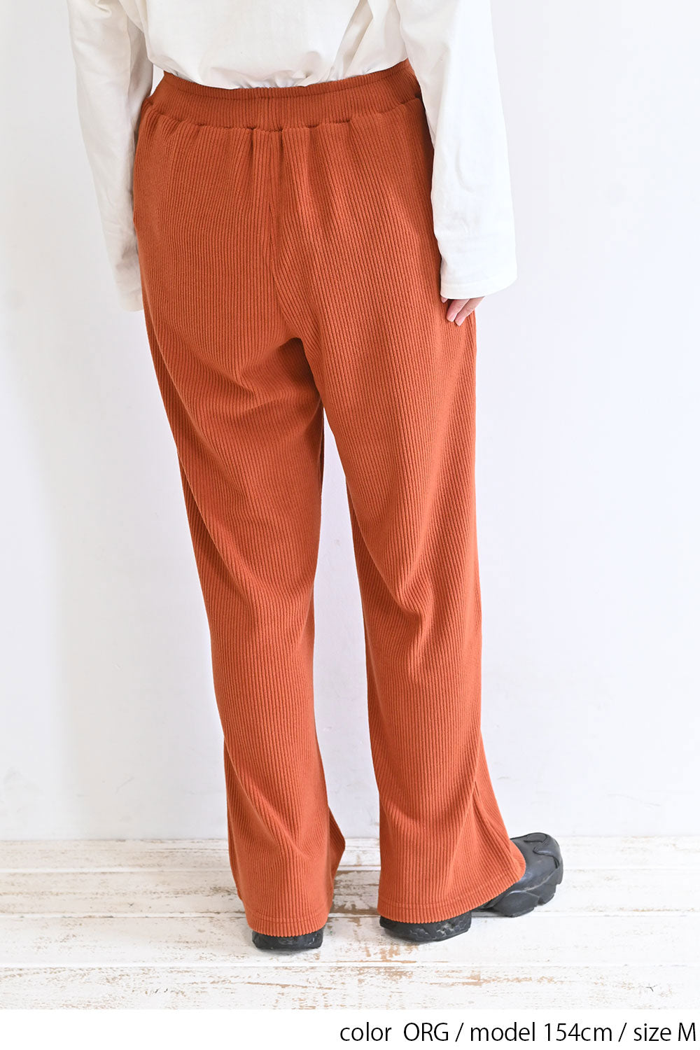 ストレッチ性のある総ゴム仕様が楽ちんなリブパンツです。