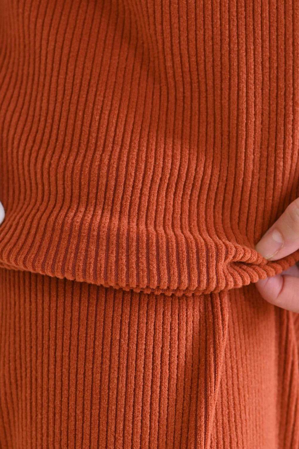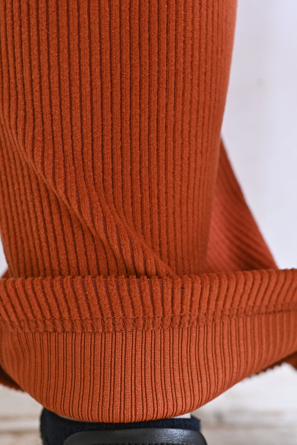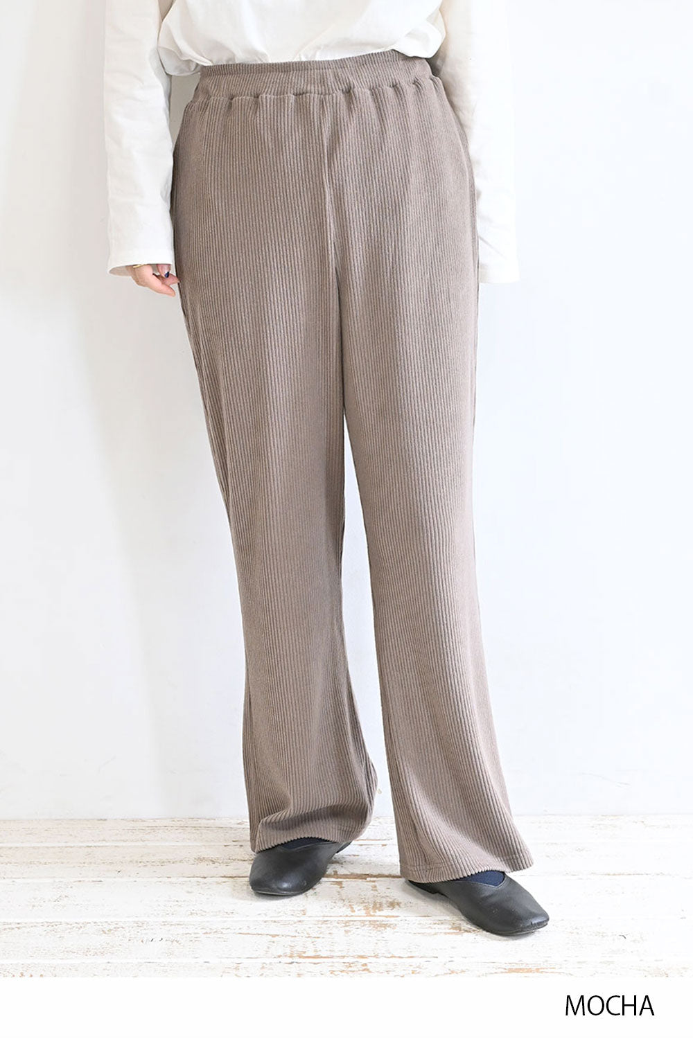 ストレッチ性のある総ゴム仕様が楽ちんなリブパンツです。