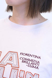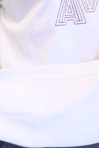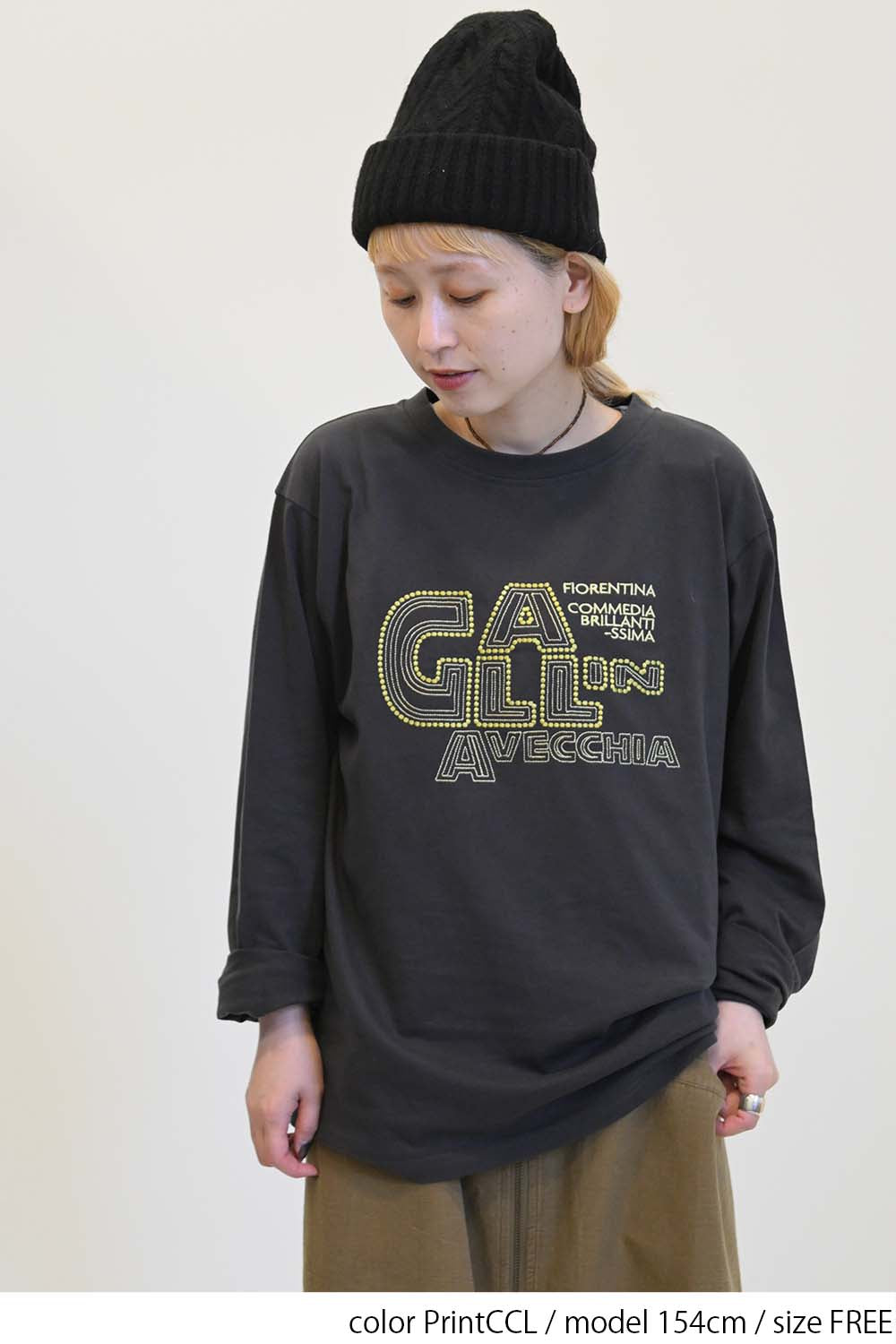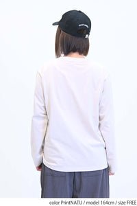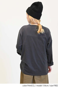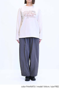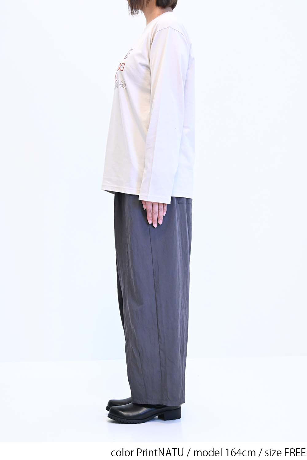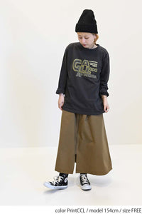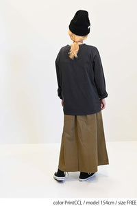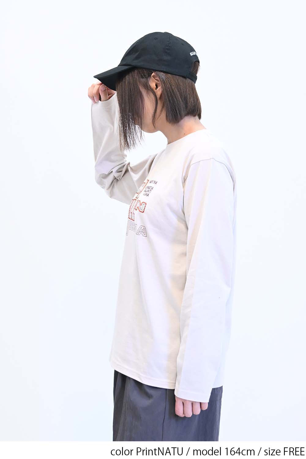 ストリート感あふれるロゴプリントが目を引くロングTシャツ。