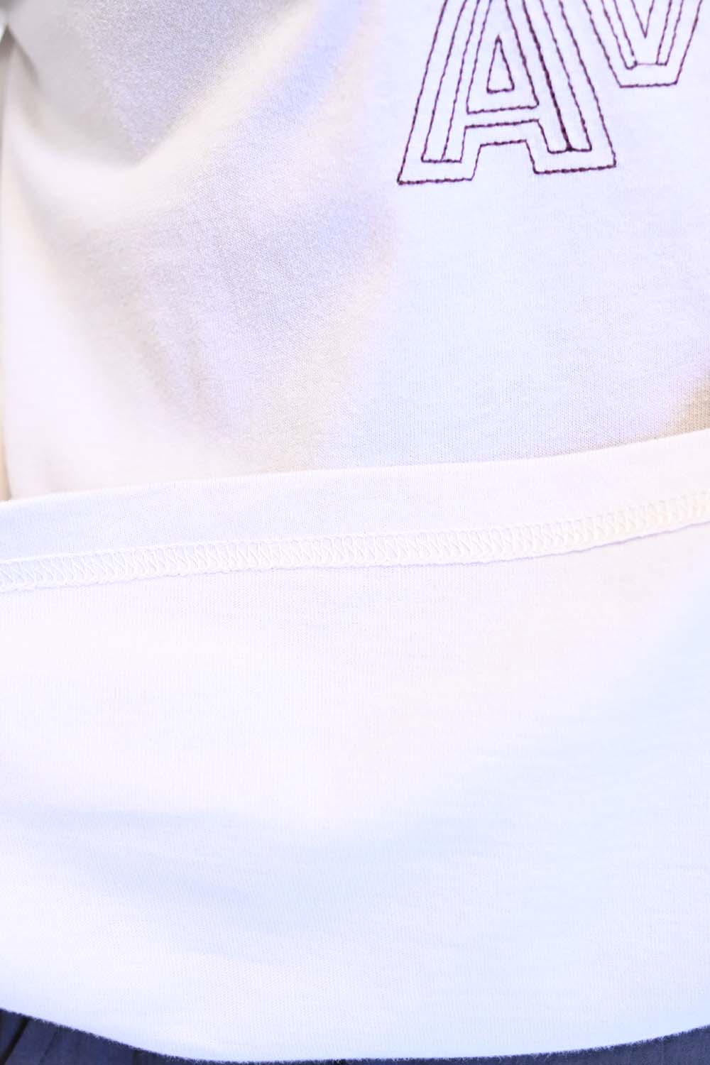 程よくゆとりのあるサイズ感なので、タックインやレイヤードもしやすく、ジャケットやパーカーを羽織った重ね着コーデにもおすすめです。