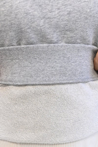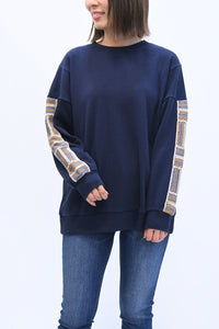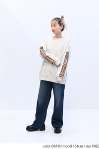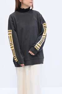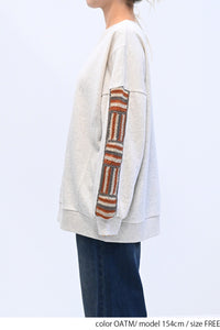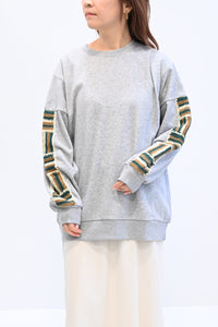 カジュアルなスウェットに、手仕事の温もりを感じるかぎ針編みのパッチワークを袖に施しました。