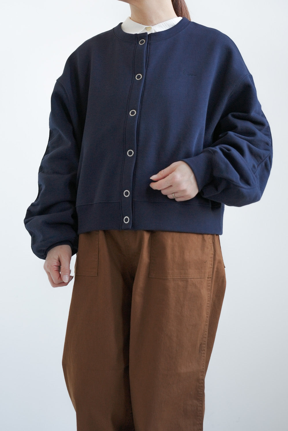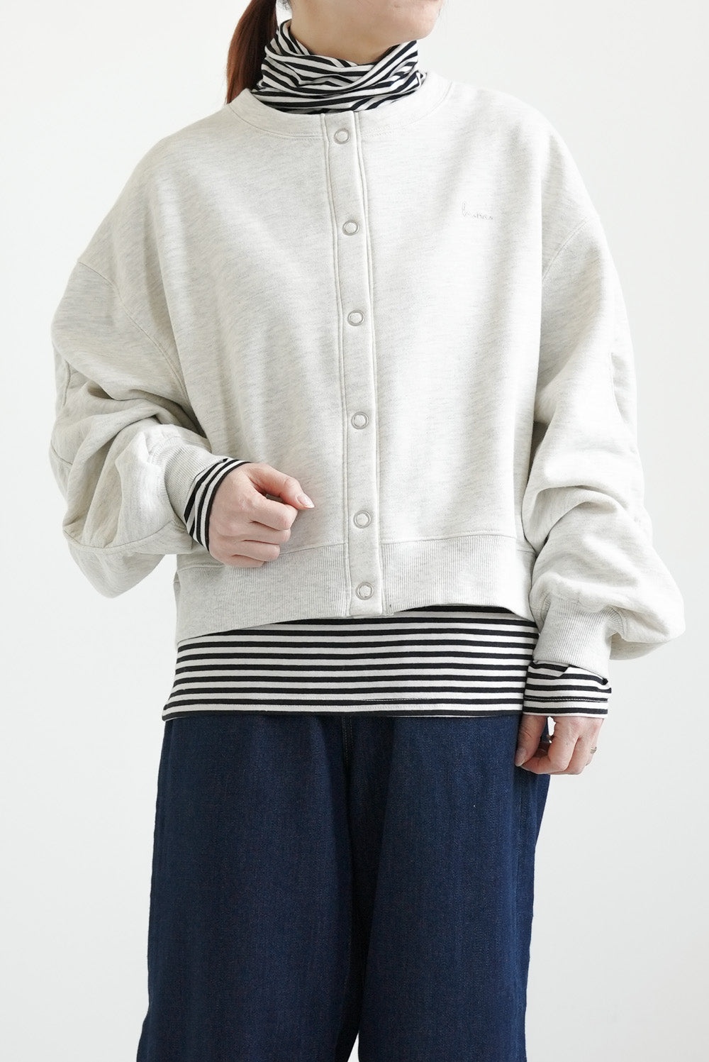ボタンを留めてトップス風に着たり、さっと羽織ったりと、幅広い着こなしを楽しめます。