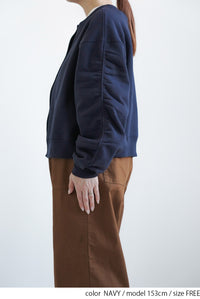 袖にはシャーリングを施し、くしゅっとした立体感のあるボリューム袖に。