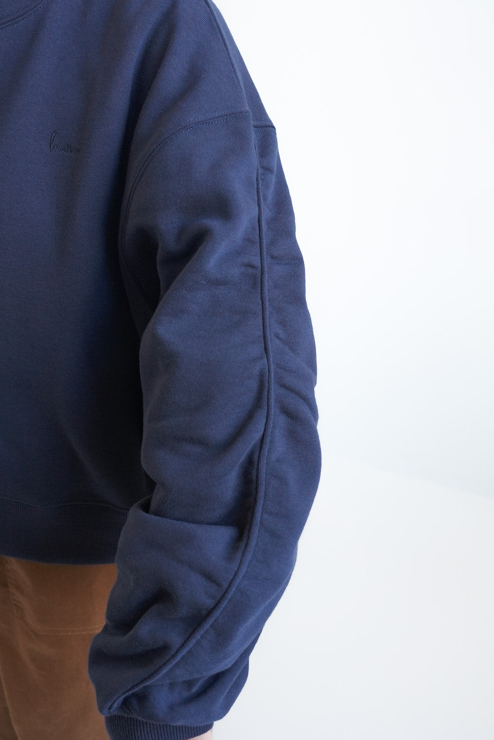 胸元には身頃と同色糸のロゴ刺繍を添えました。
