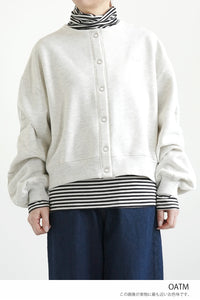 着た瞬間からふんわりと暖かさを感じられる、裏起毛素材の釦カーディガン。