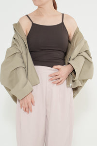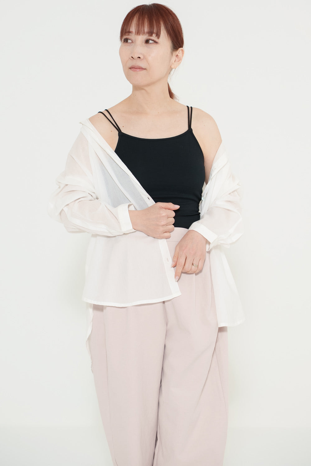 ゆるっとしたシャツやデザイン性のあるシャツを羽織り、インナーにキャミソールを。