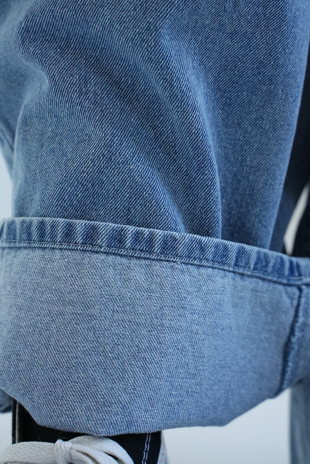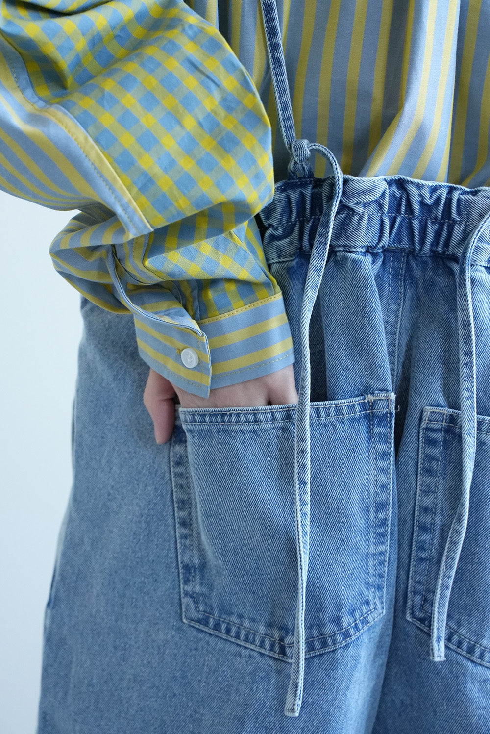再生繊維(セルロース)が入ることで、通常のデニムよりもほんのり落ち感があり、しなやかな表情に。ごわつきにくく、動きやすいのが特徴です。