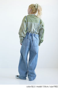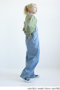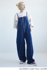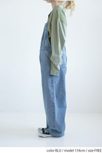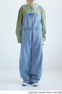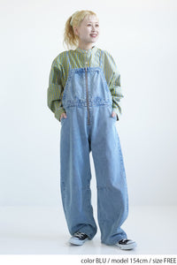 ゆったりとしたワイドシルエットが特徴なデニムサロペット。