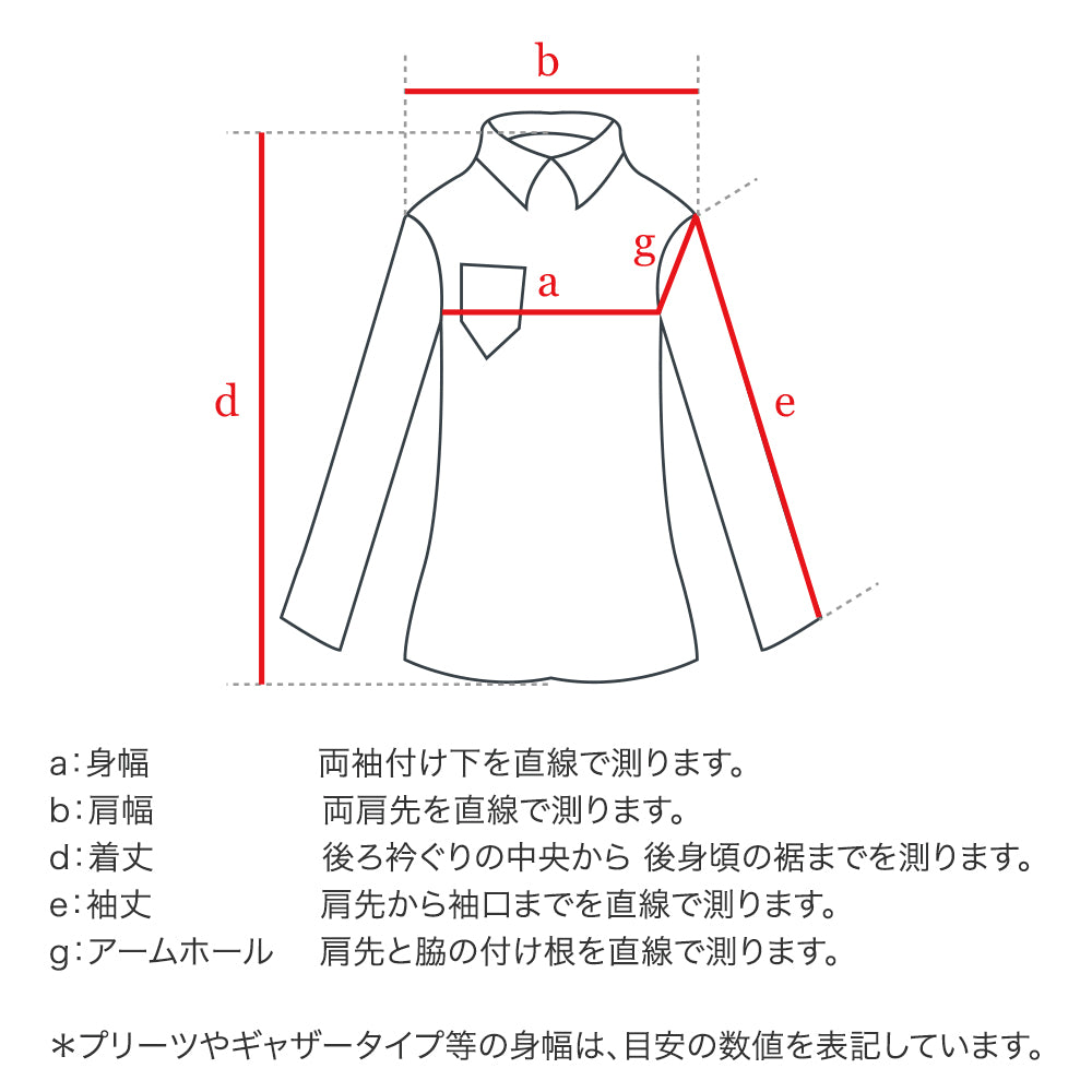 サイズ | 身幅 | 肩幅 | 着丈 | 袖丈 | アームホール |