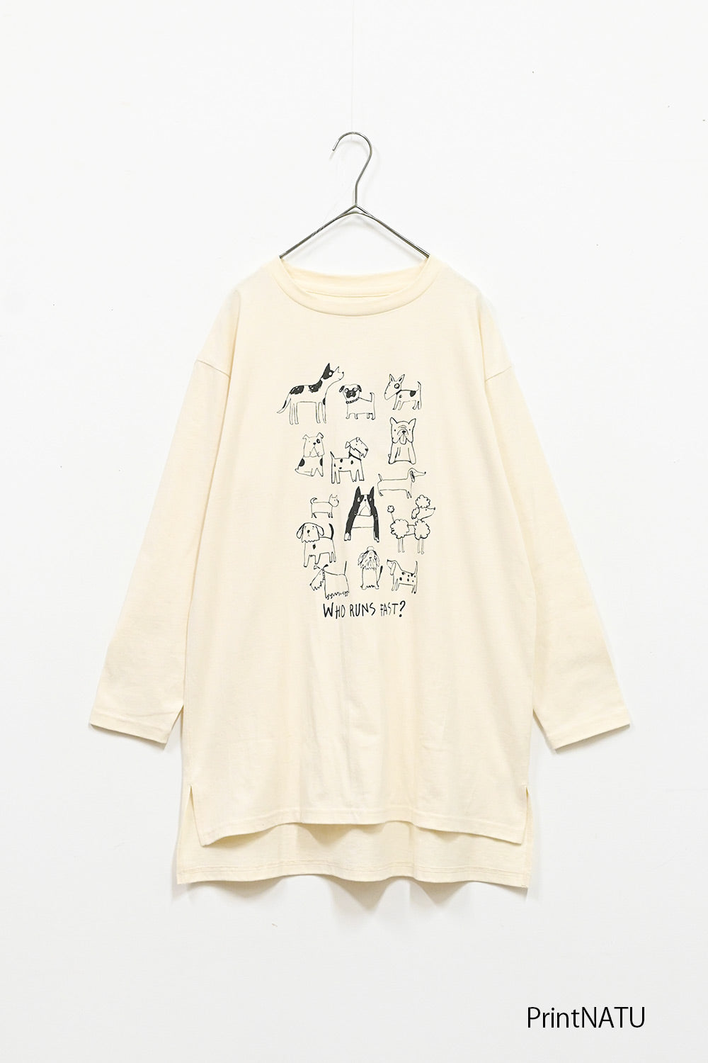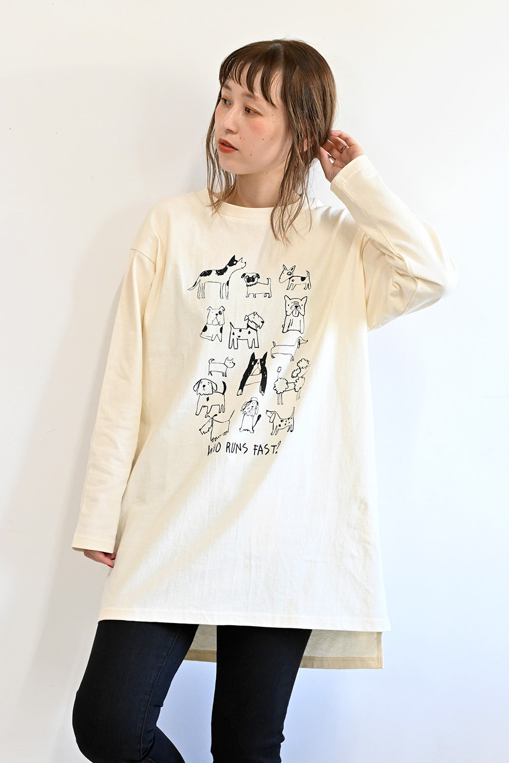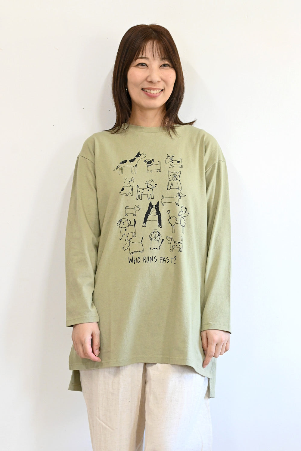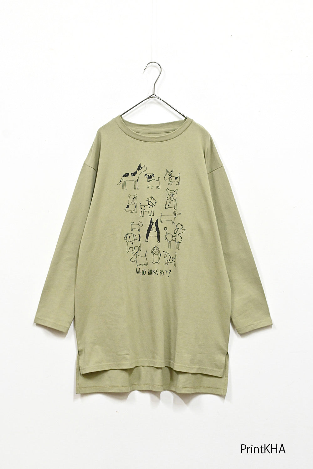 フロントにバリエーション豊かな犬プリントを詰め込んだチュニック。