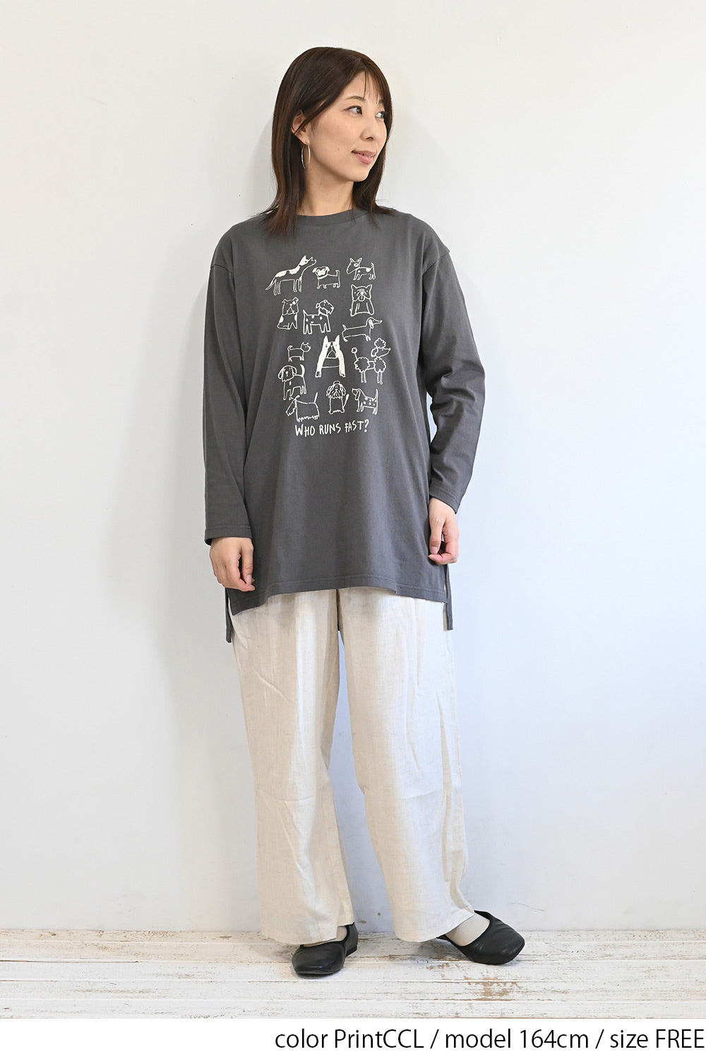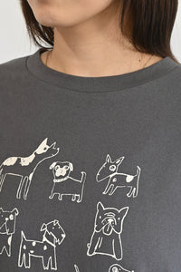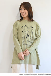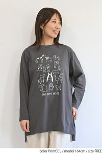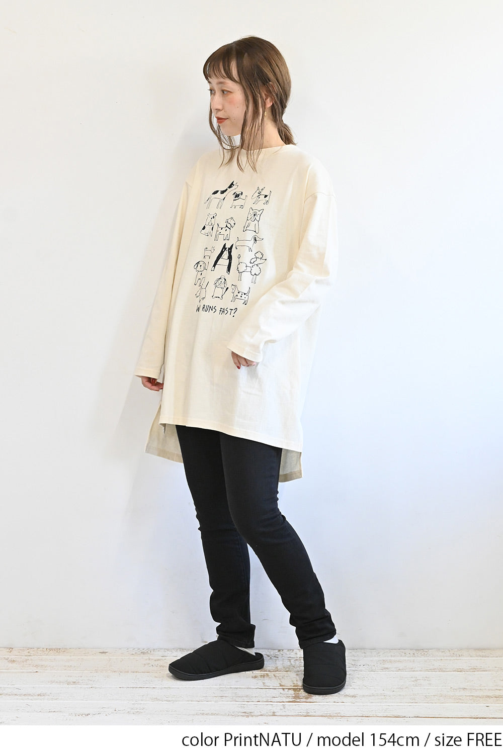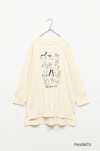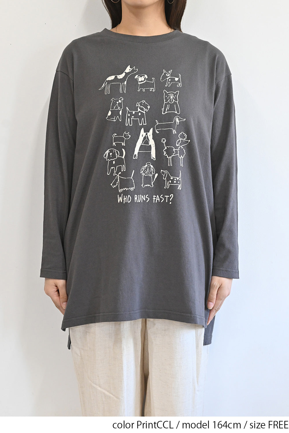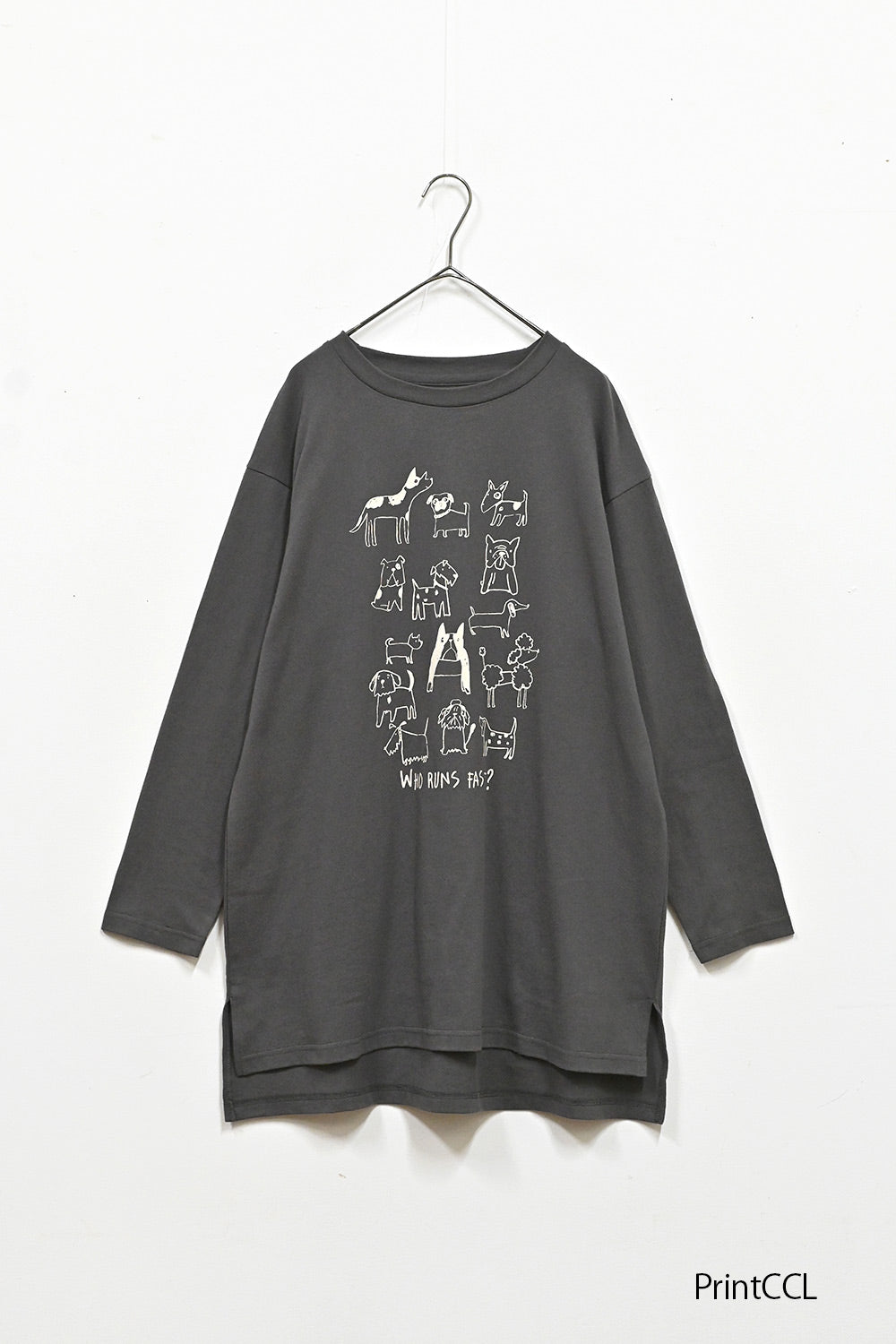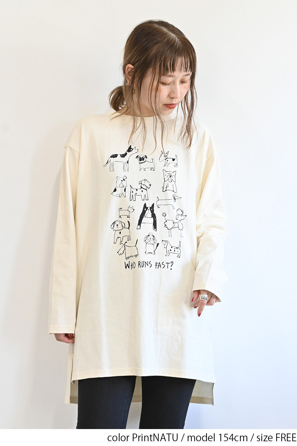 フロントにバリエーション豊かな犬プリントを詰め込んだチュニック。