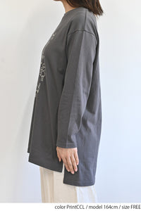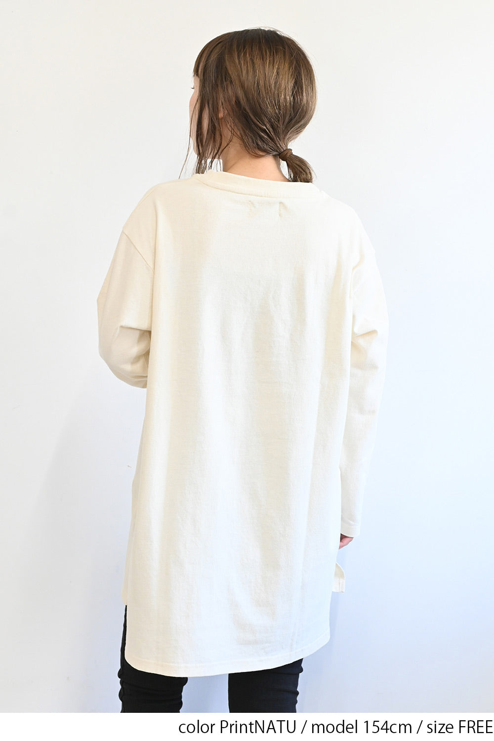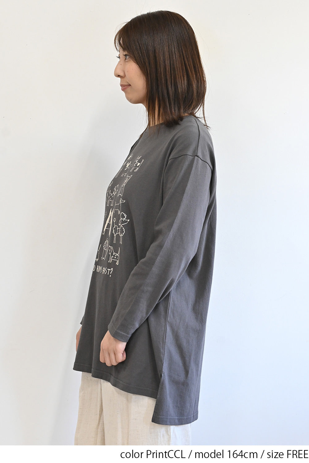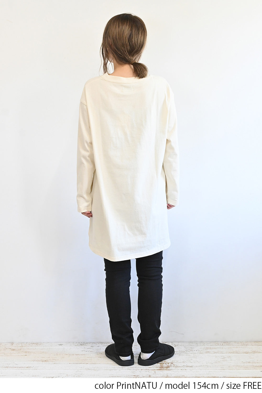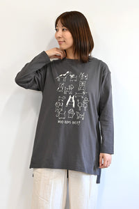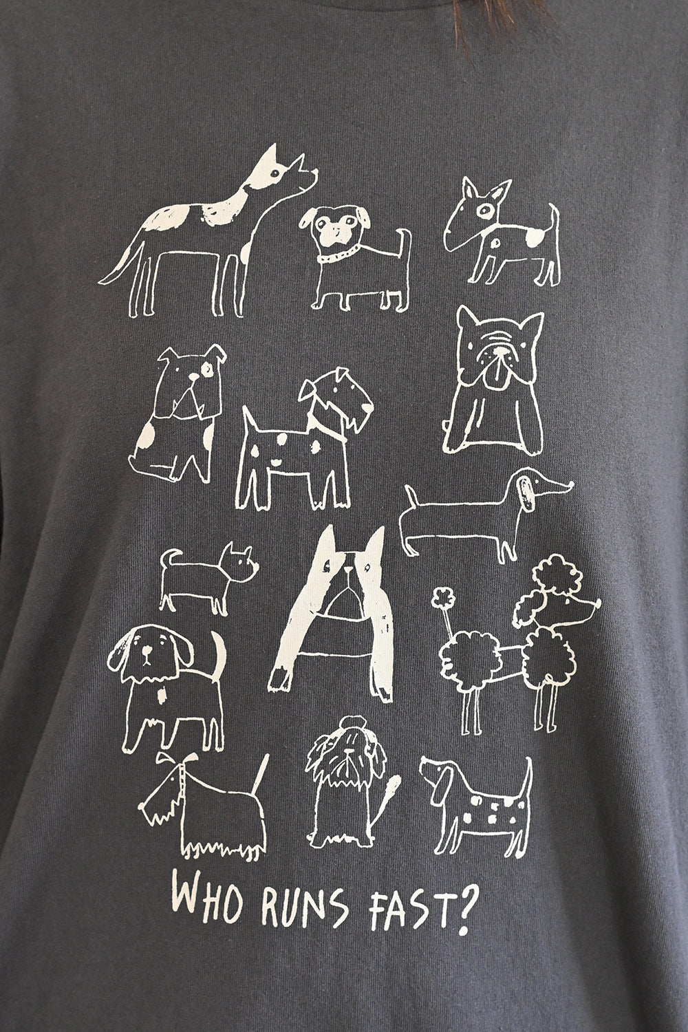 フロントにバリエーション豊かな犬プリントを詰め込んだチュニック。
