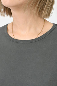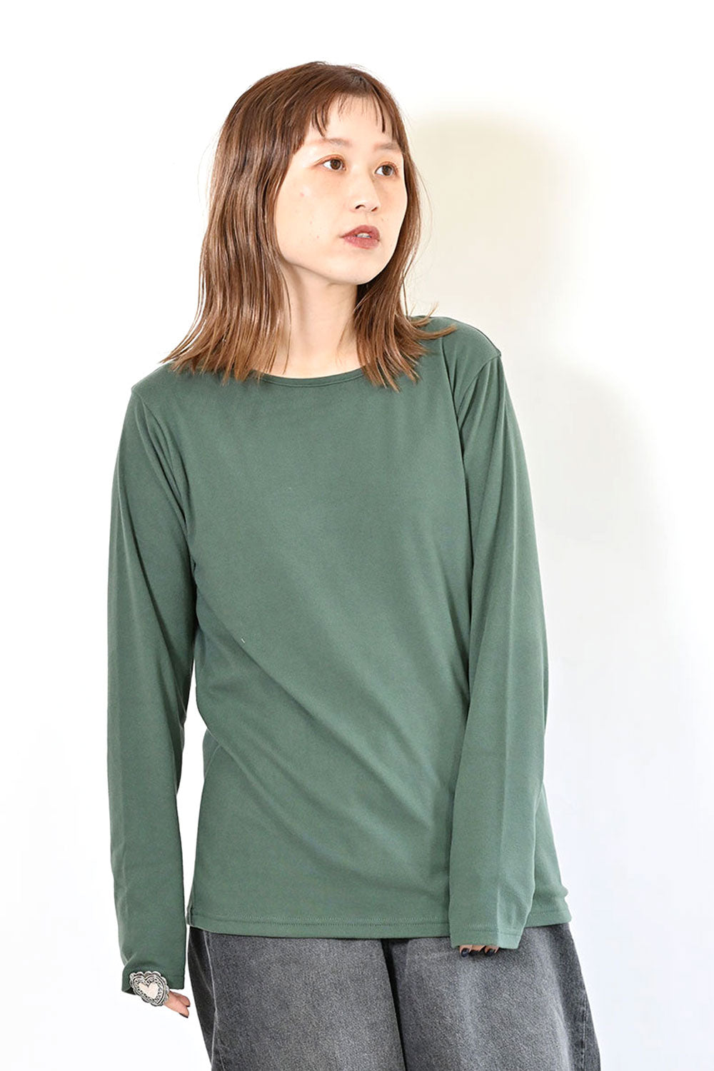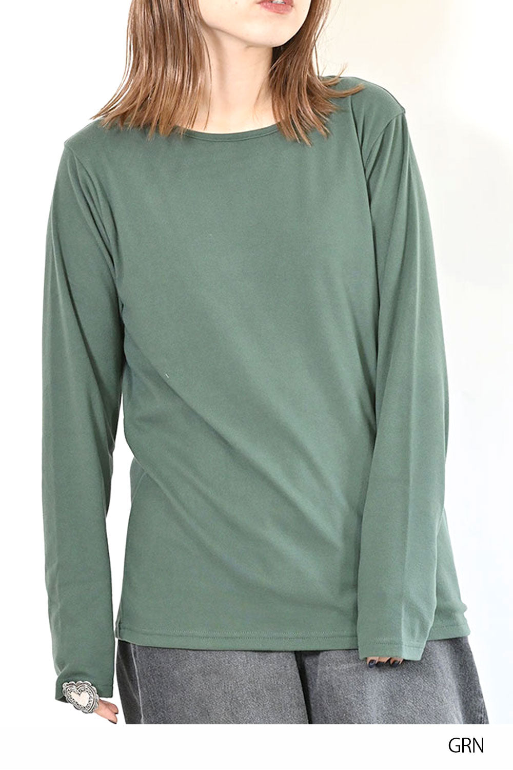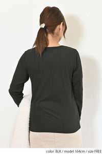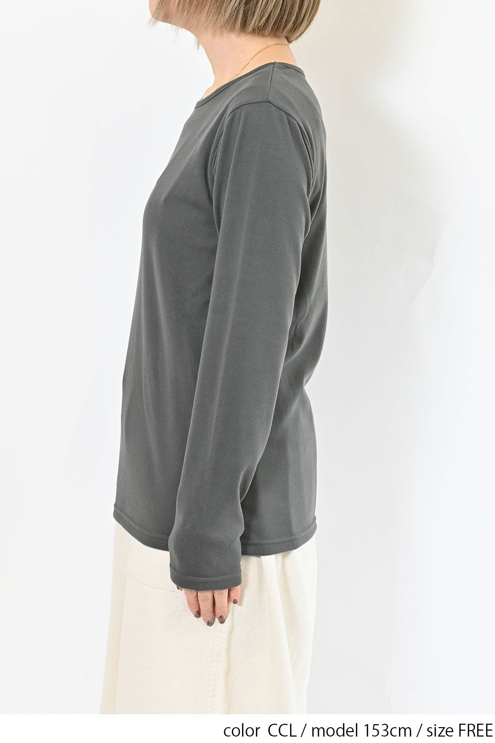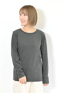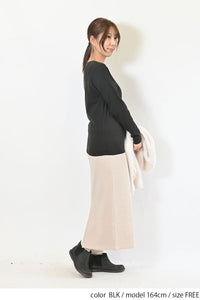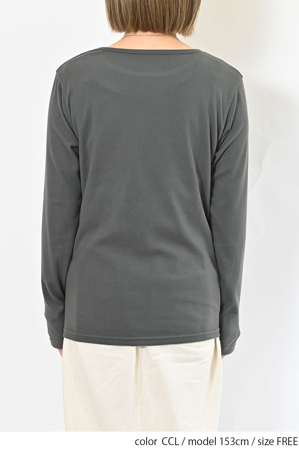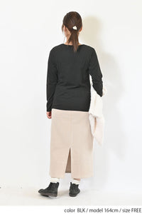 Uネックよりもネックのつまったデザインで、上に着るトップスに響きません。