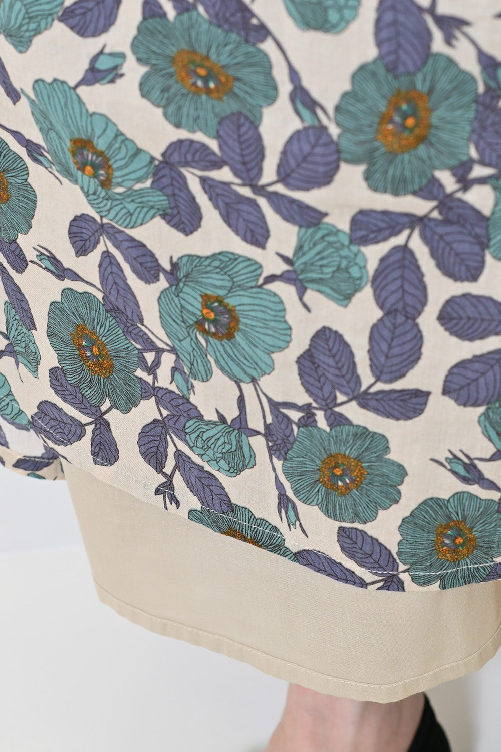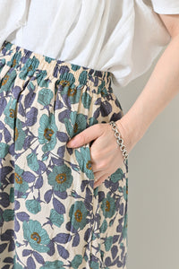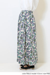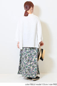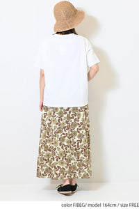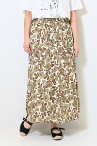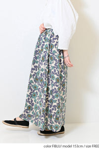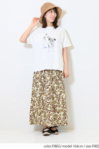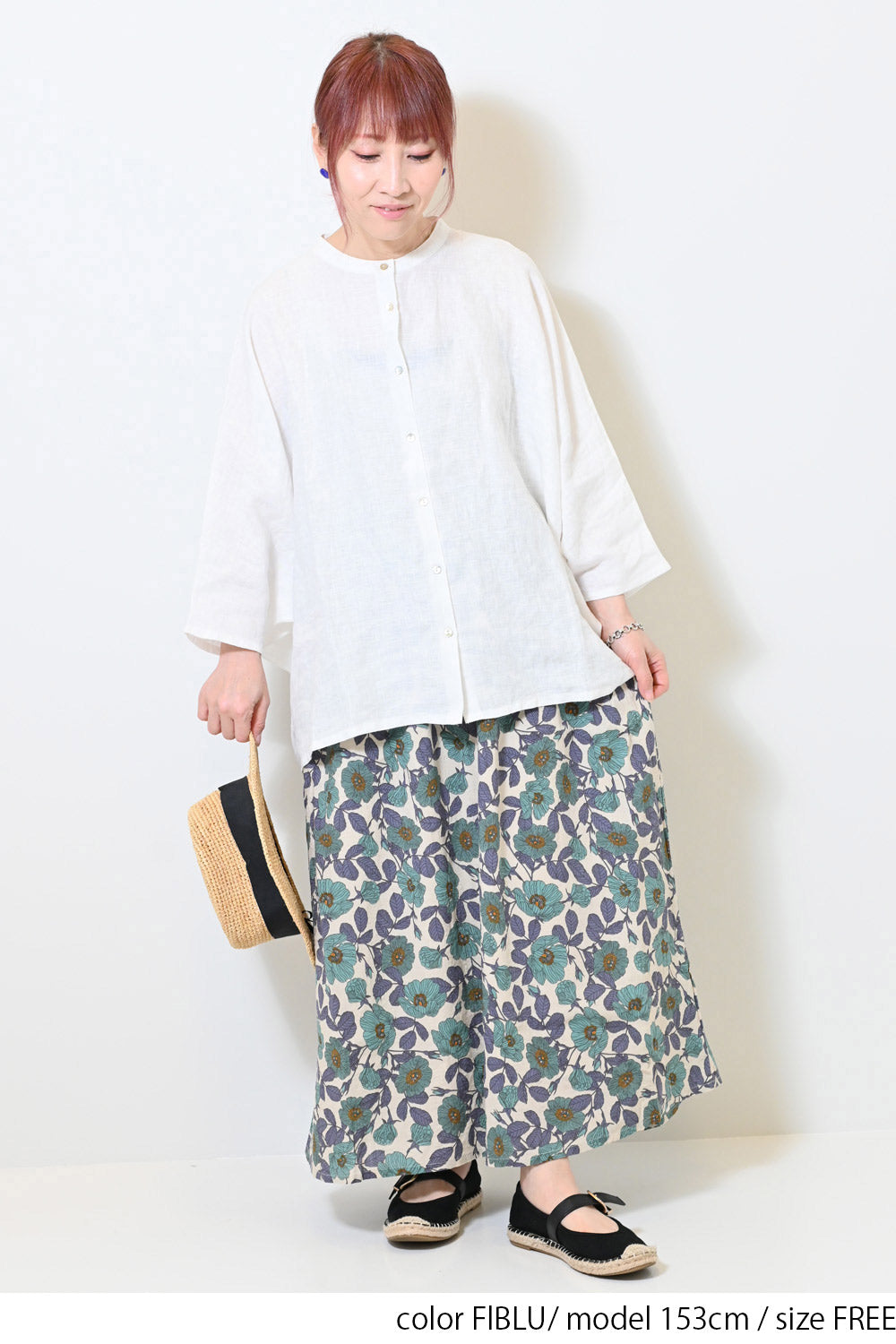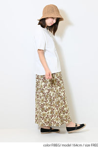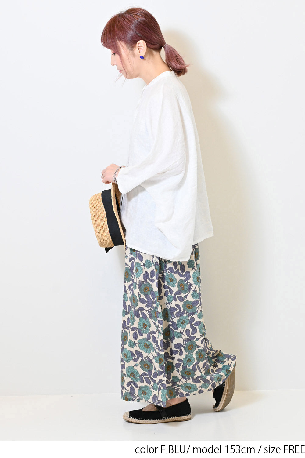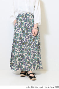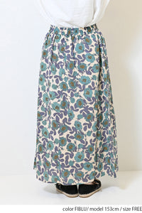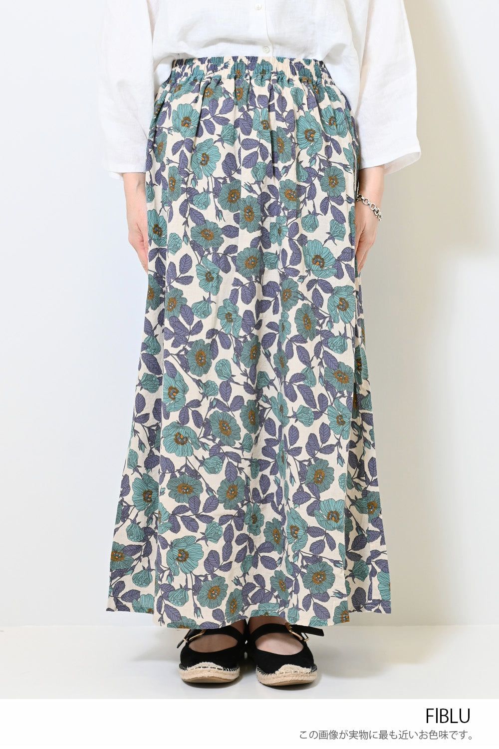 ふんわり軽やかな綿レーヨン素材に、大胆な大柄フラワーをのせた華やかなギャザースカート。