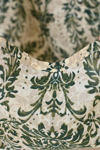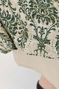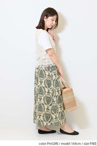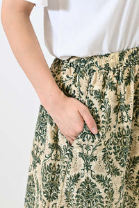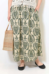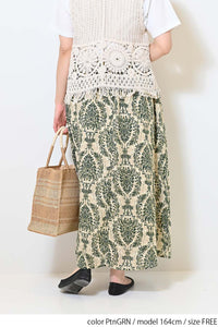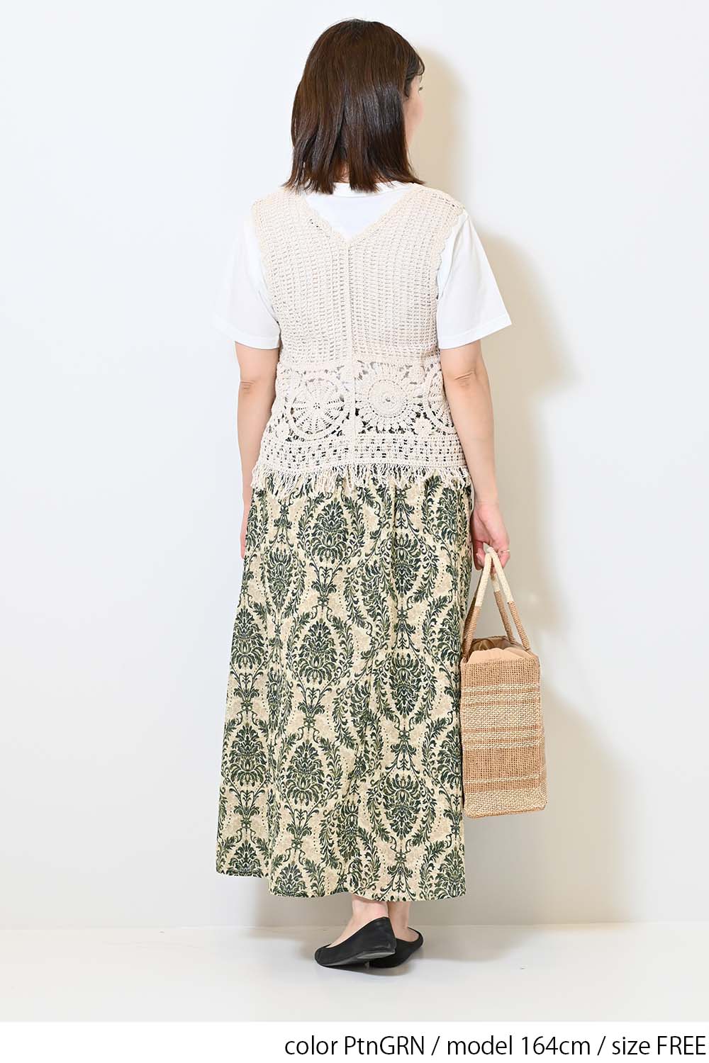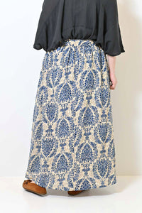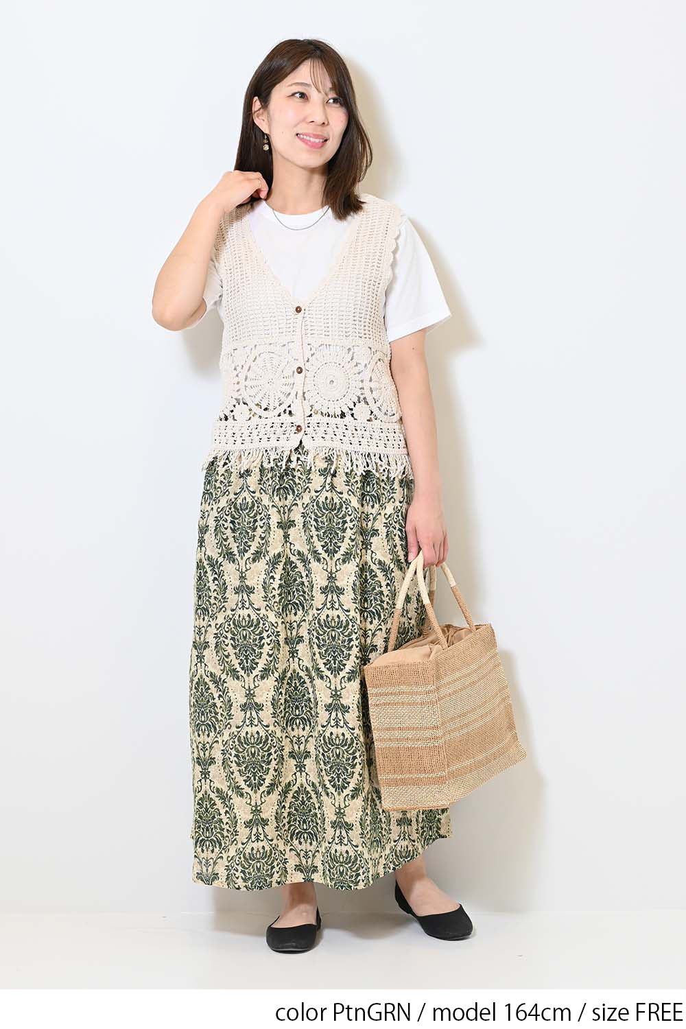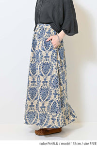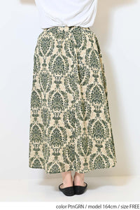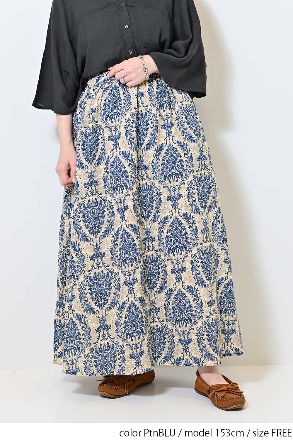 クラシカルなダマスク模様が目を引く、存在感たっぷりのギャザースカート。