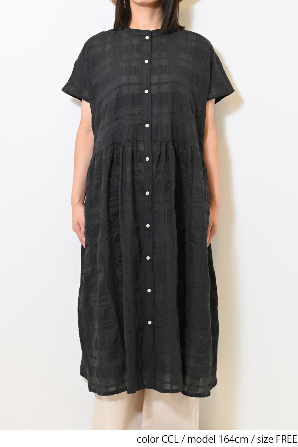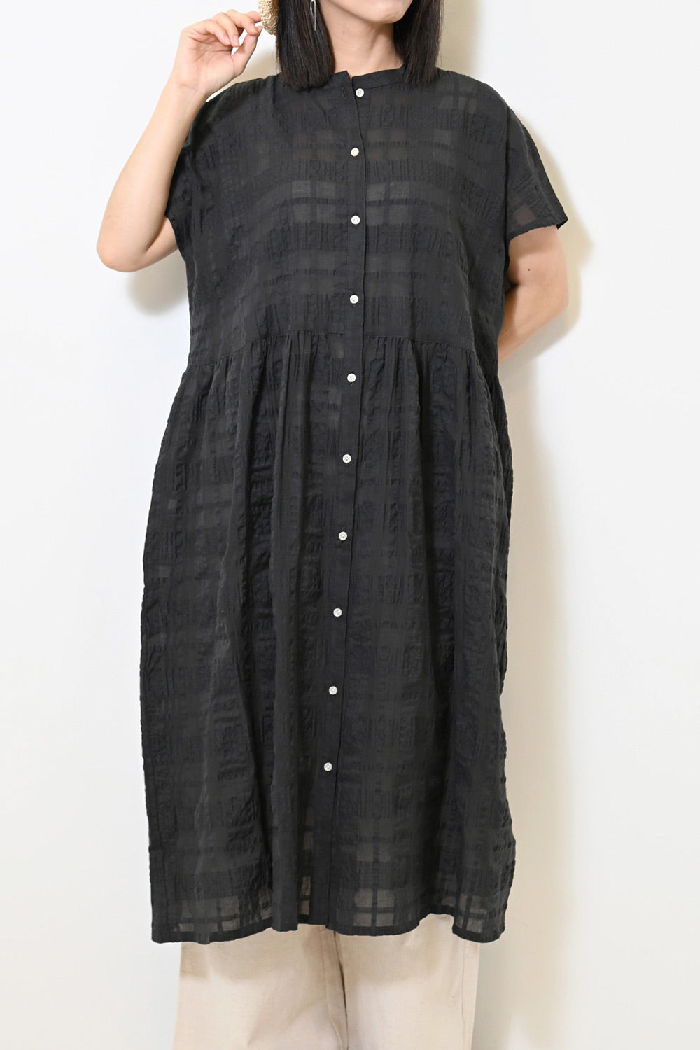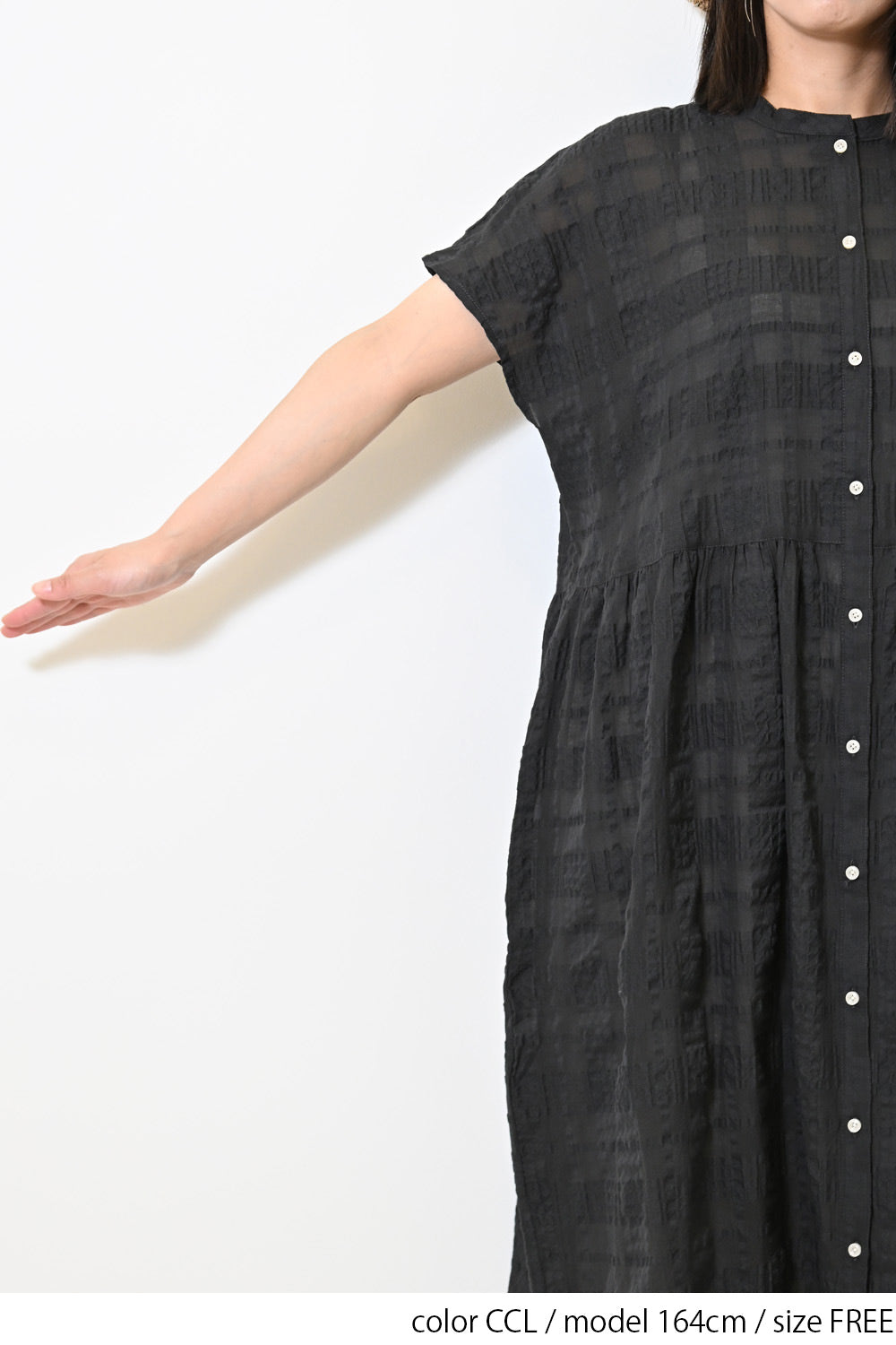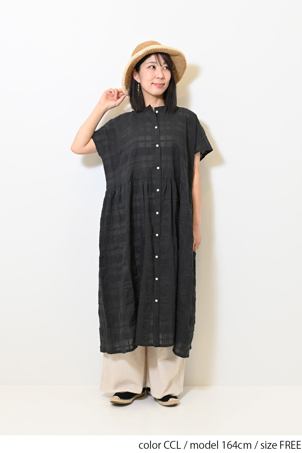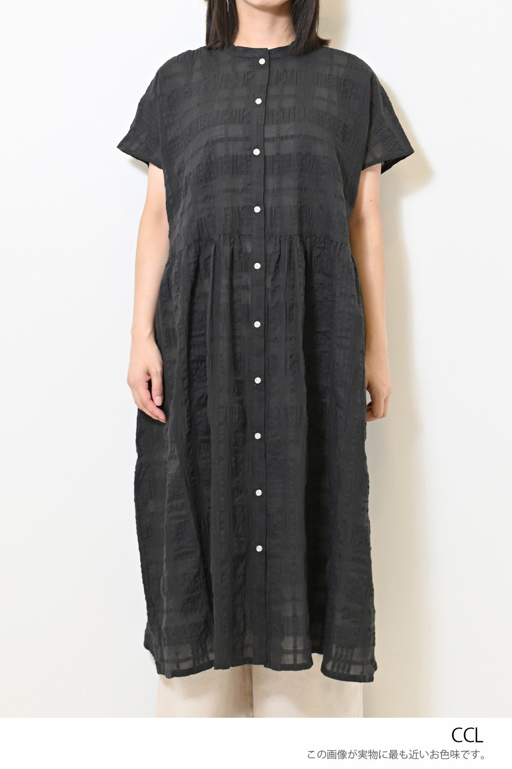 さりげない格子柄の織りが上品な、涼しげな透け感が魅力のシャツワンピース。