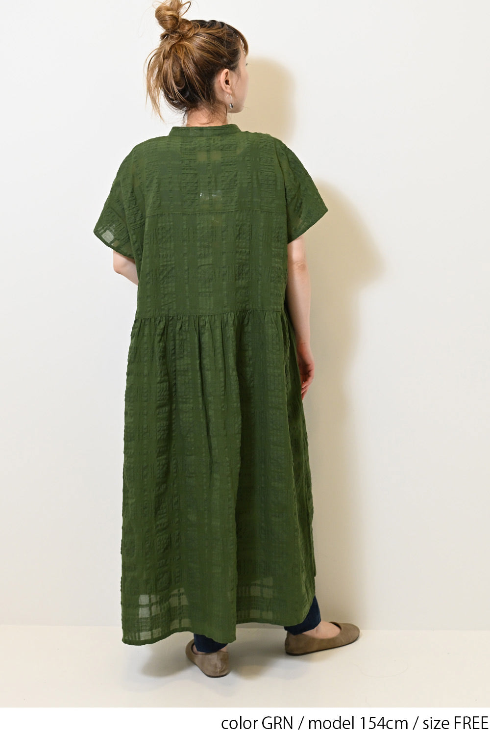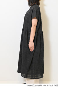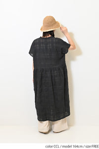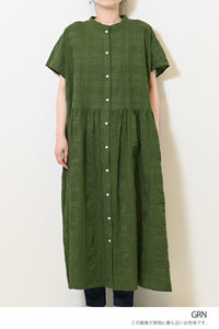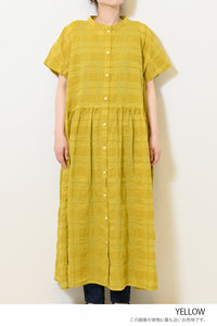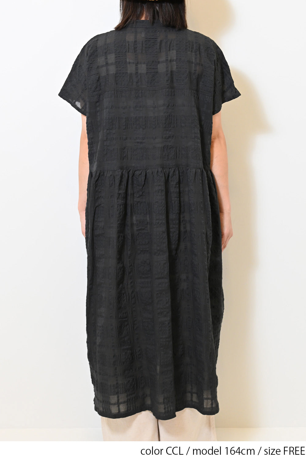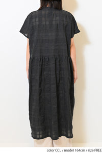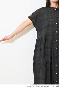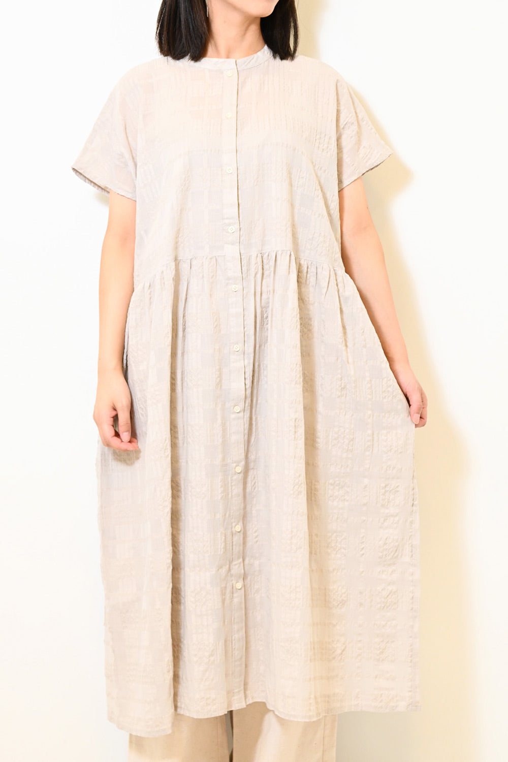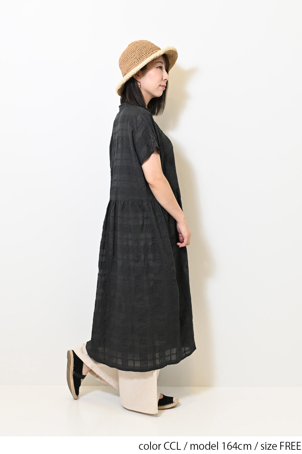 さりげない格子柄の織りが上品な、涼しげな透け感が魅力のシャツワンピース。