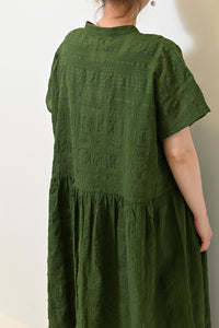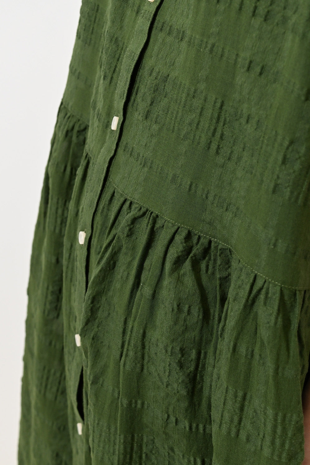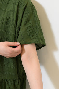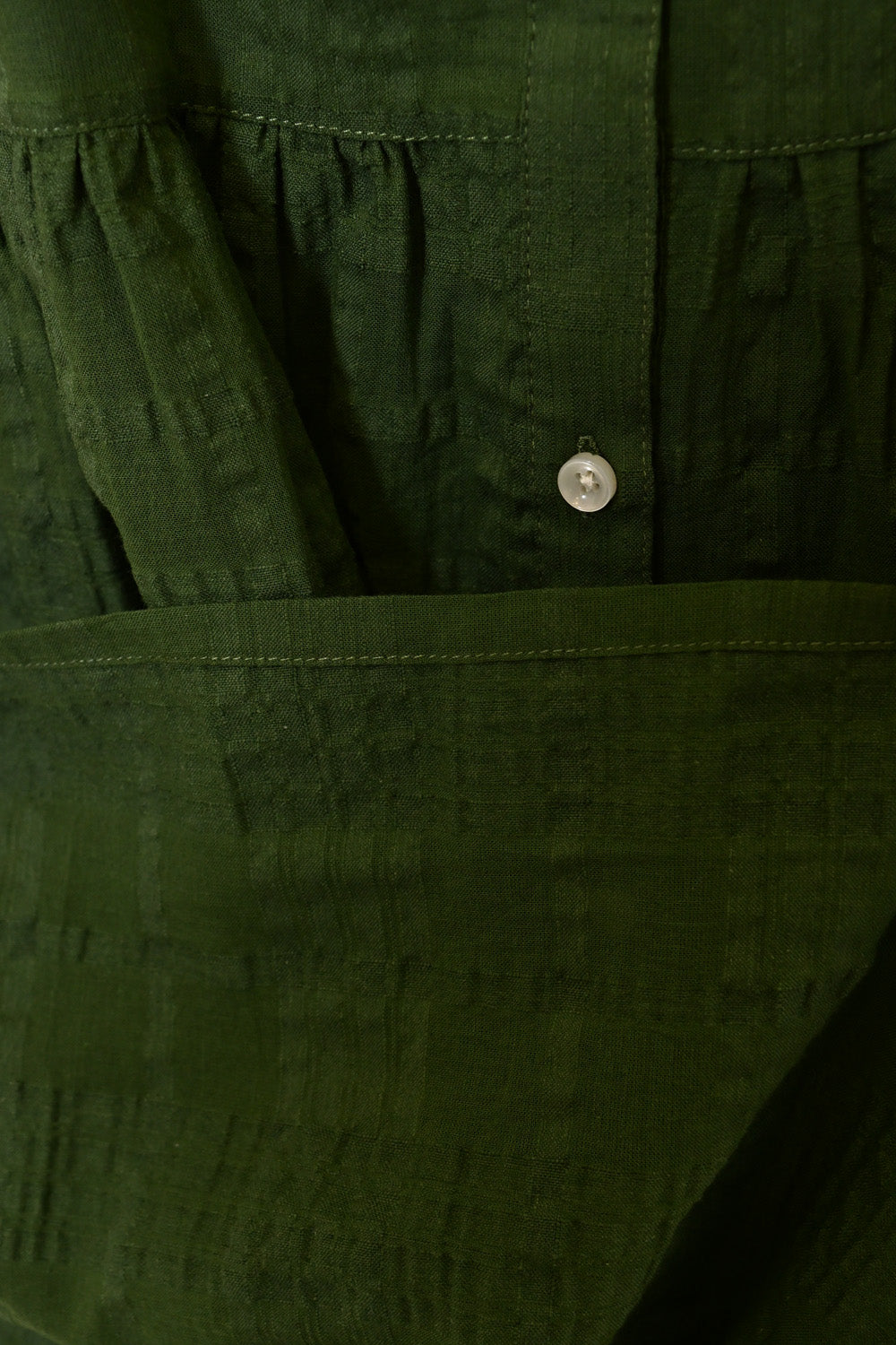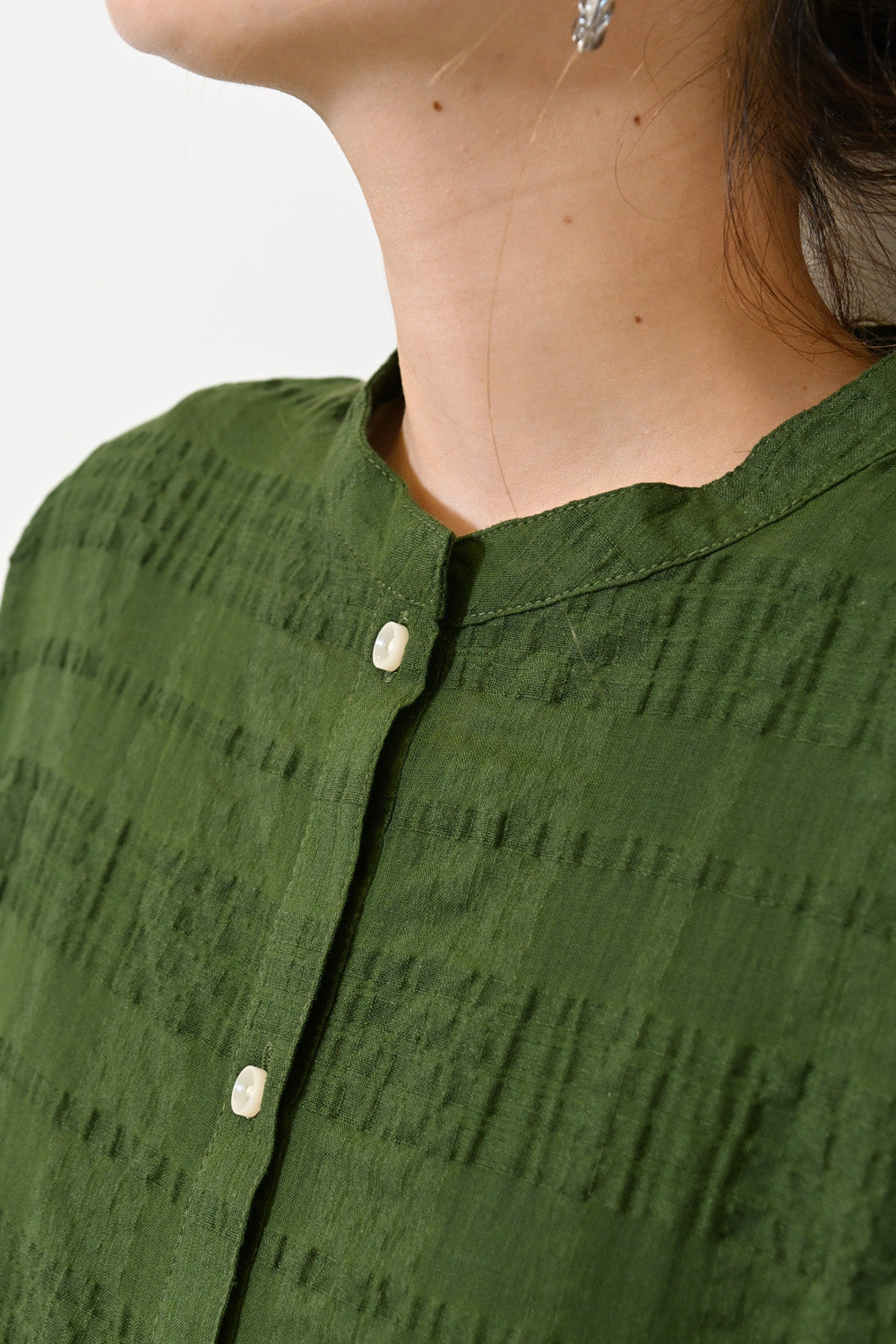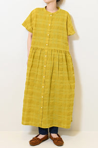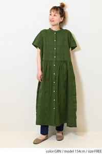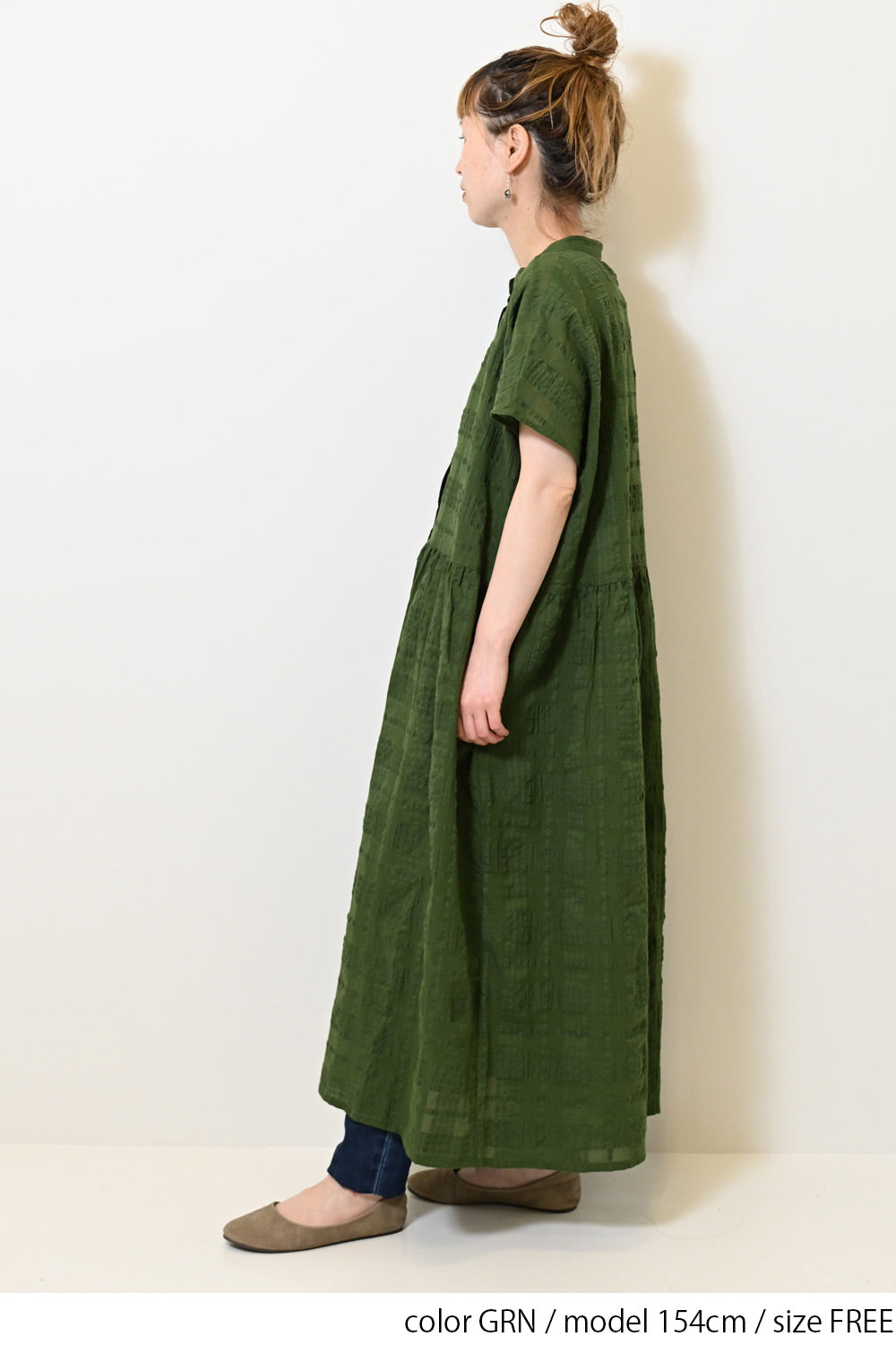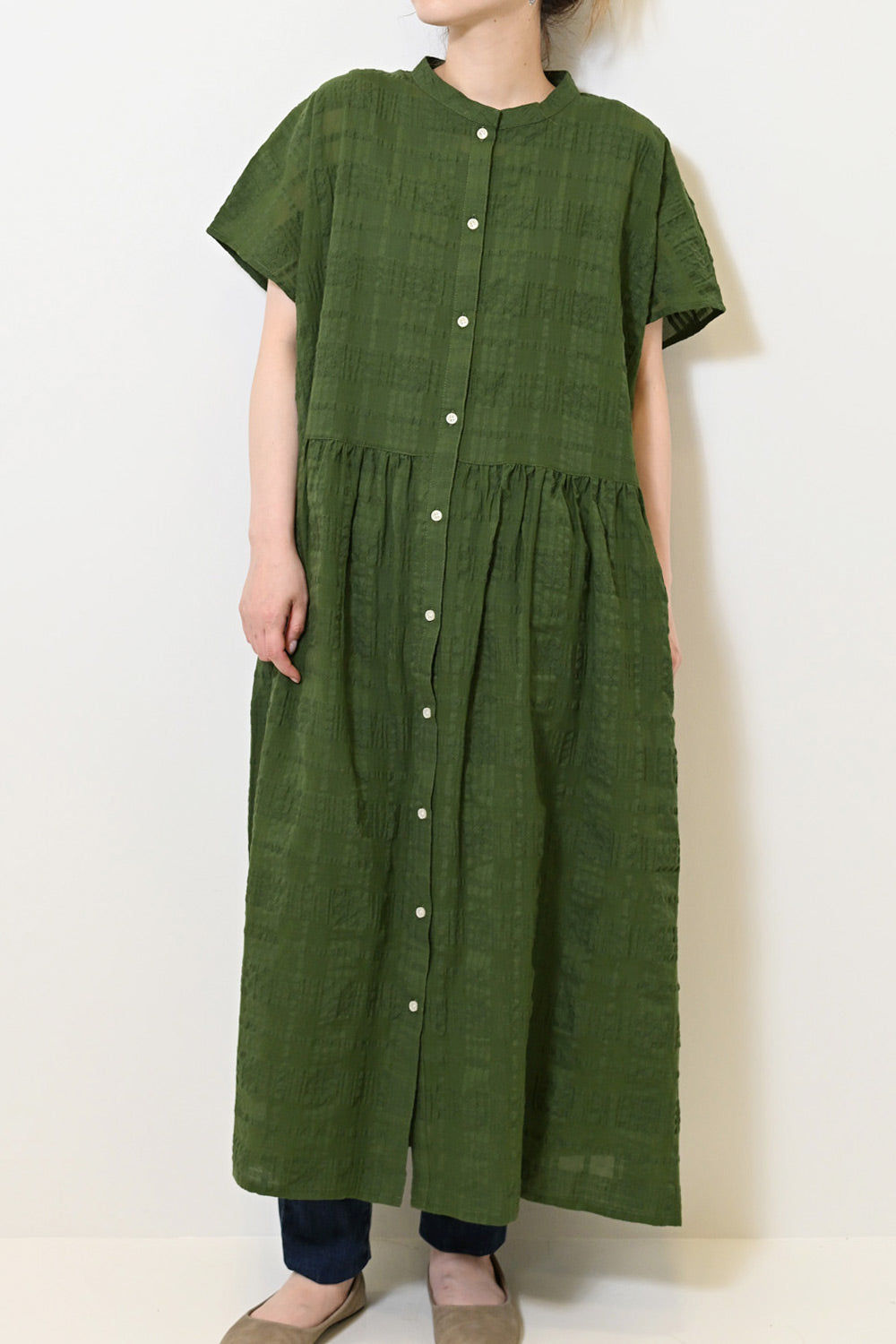さりげない格子柄の織りが上品な、涼しげな透け感が魅力のシャツワンピース。