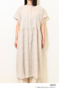 肩に沿うフレンチスリーブが女性らしいやわらかさをプラスし、ウエスト切り替え下にふんわりと入れられたギャザーが、やさしい印象に仕上げてくれます。