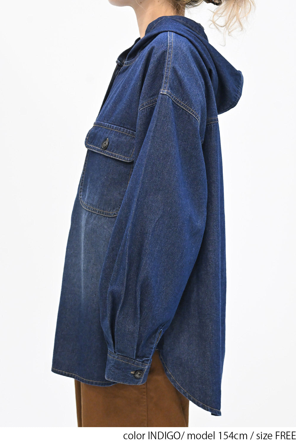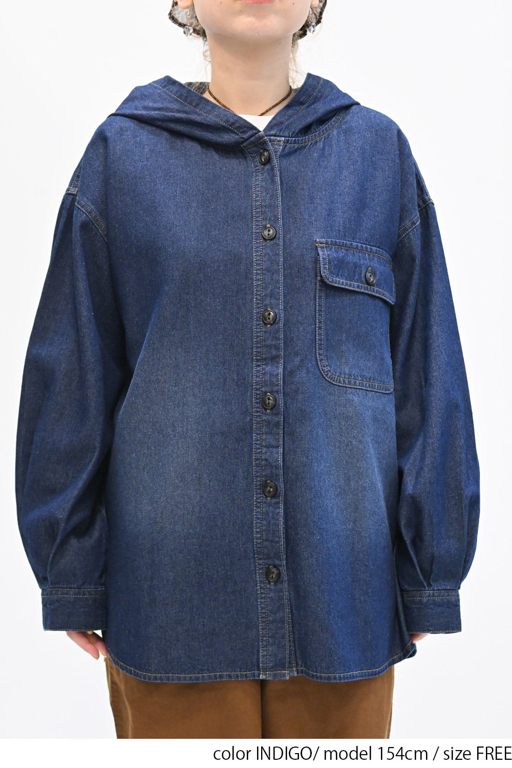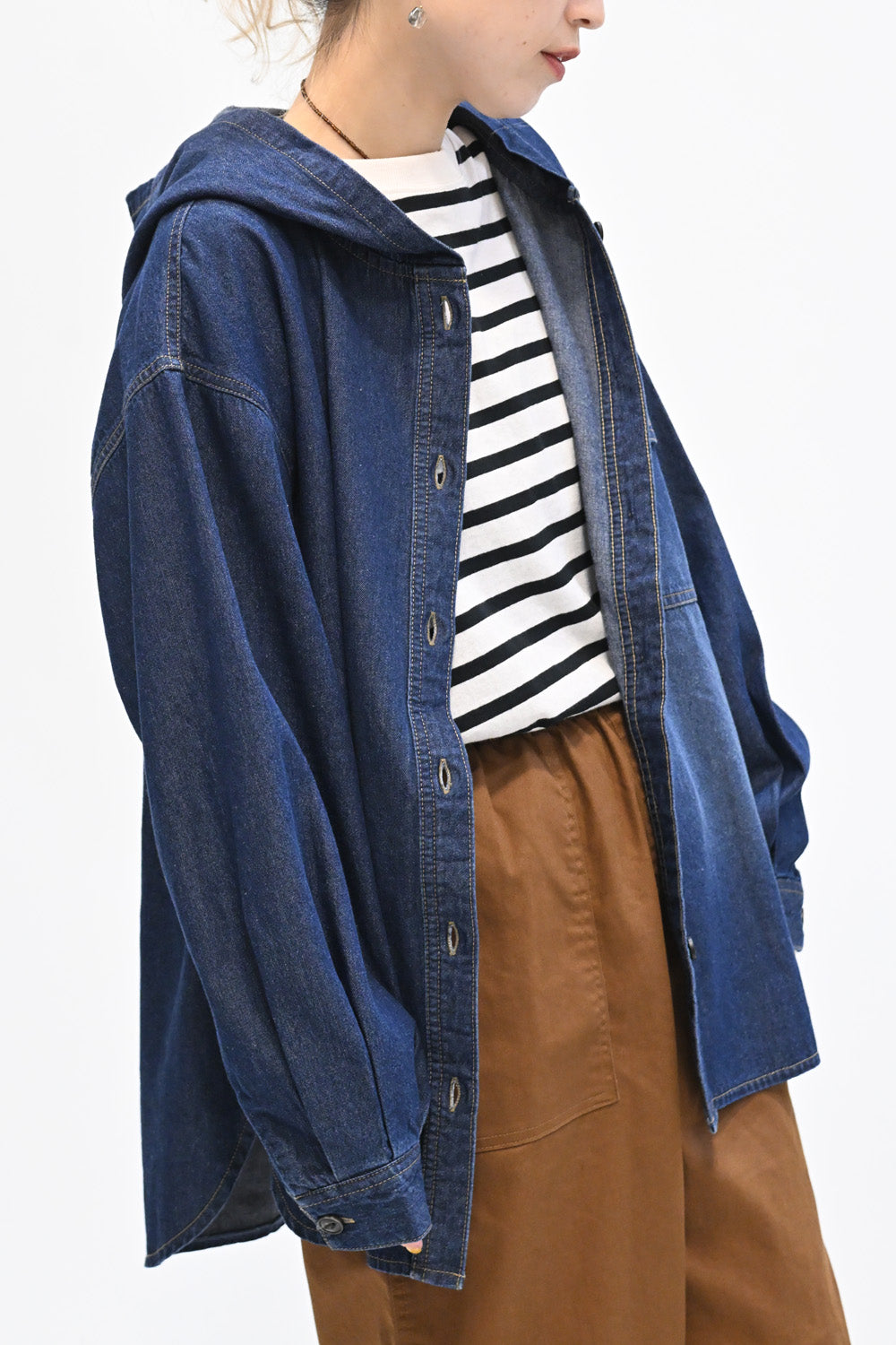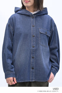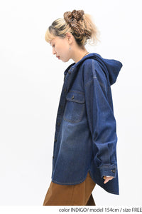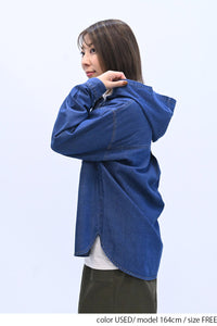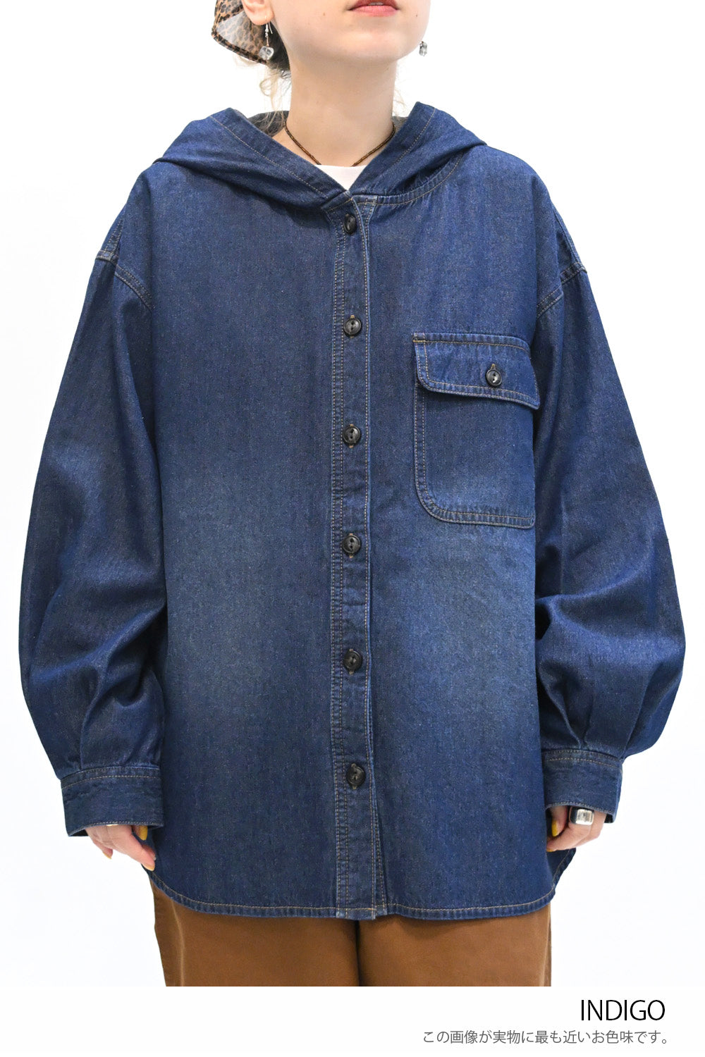 6オンスの薄手デニム生地を使用した、フード付きデニムシャツです。