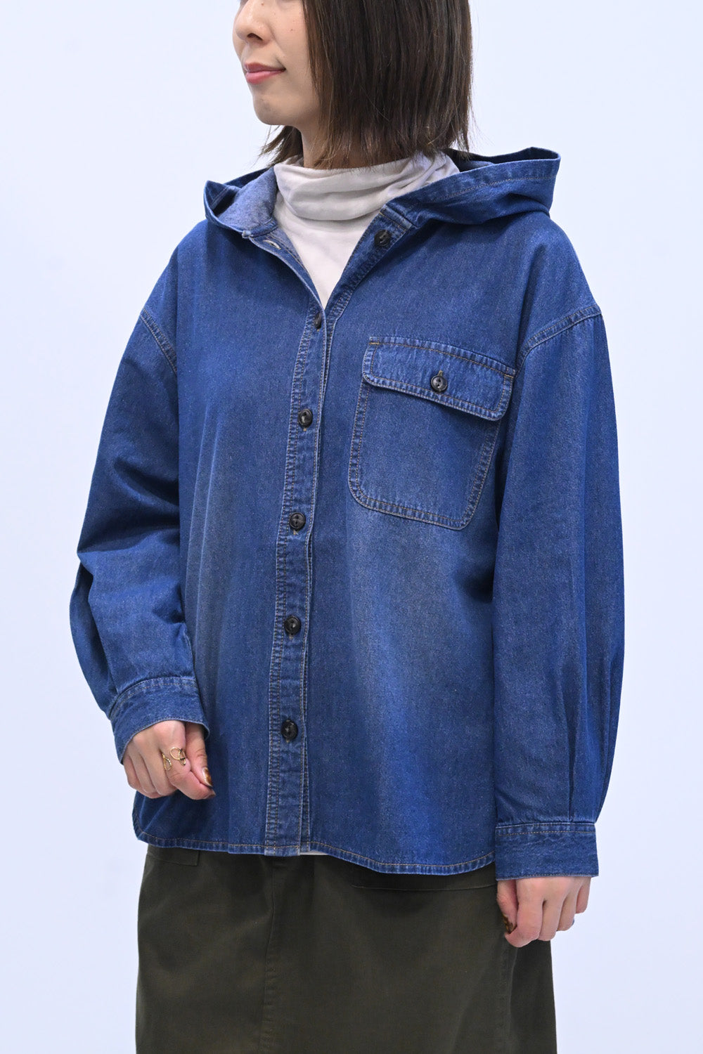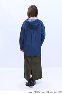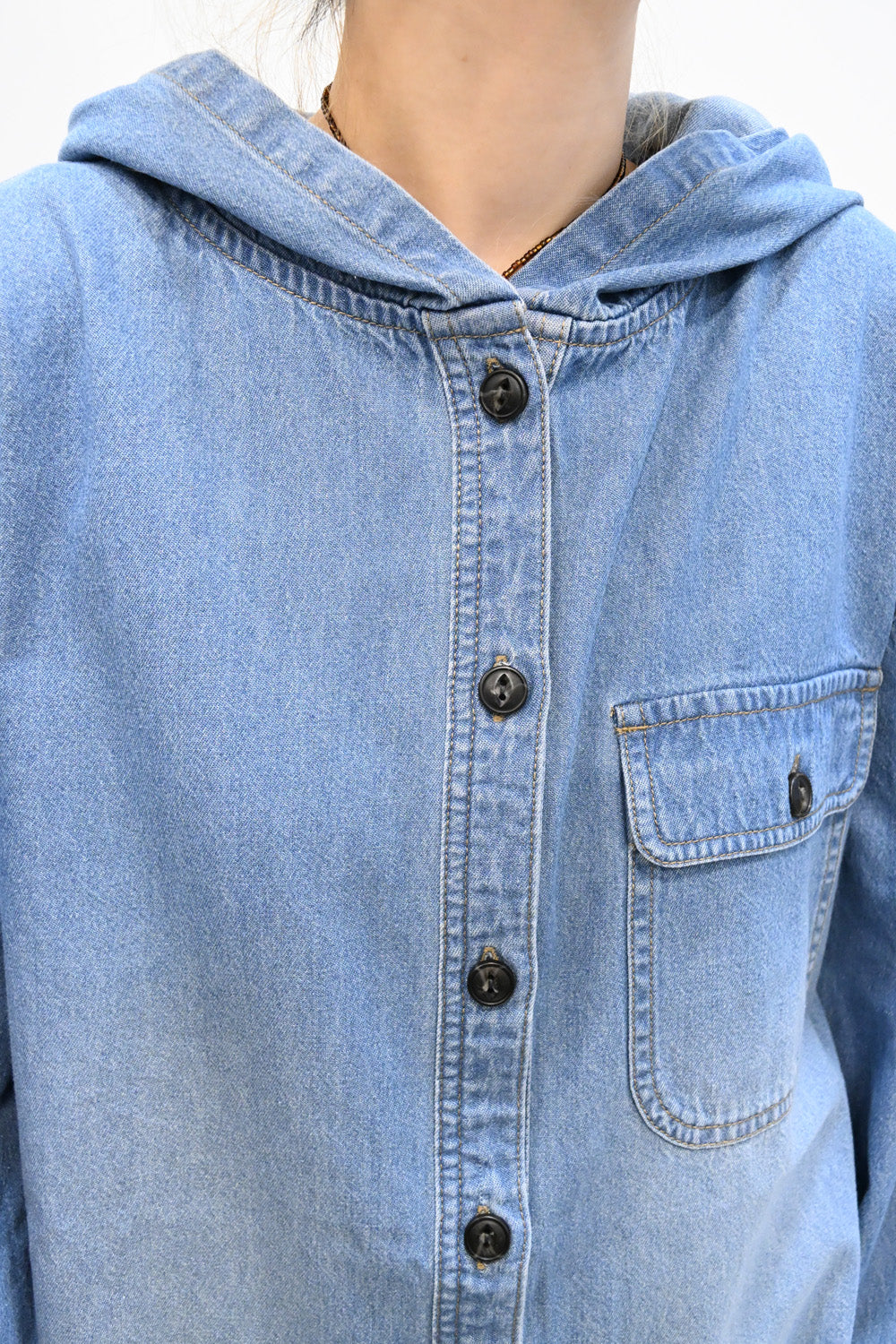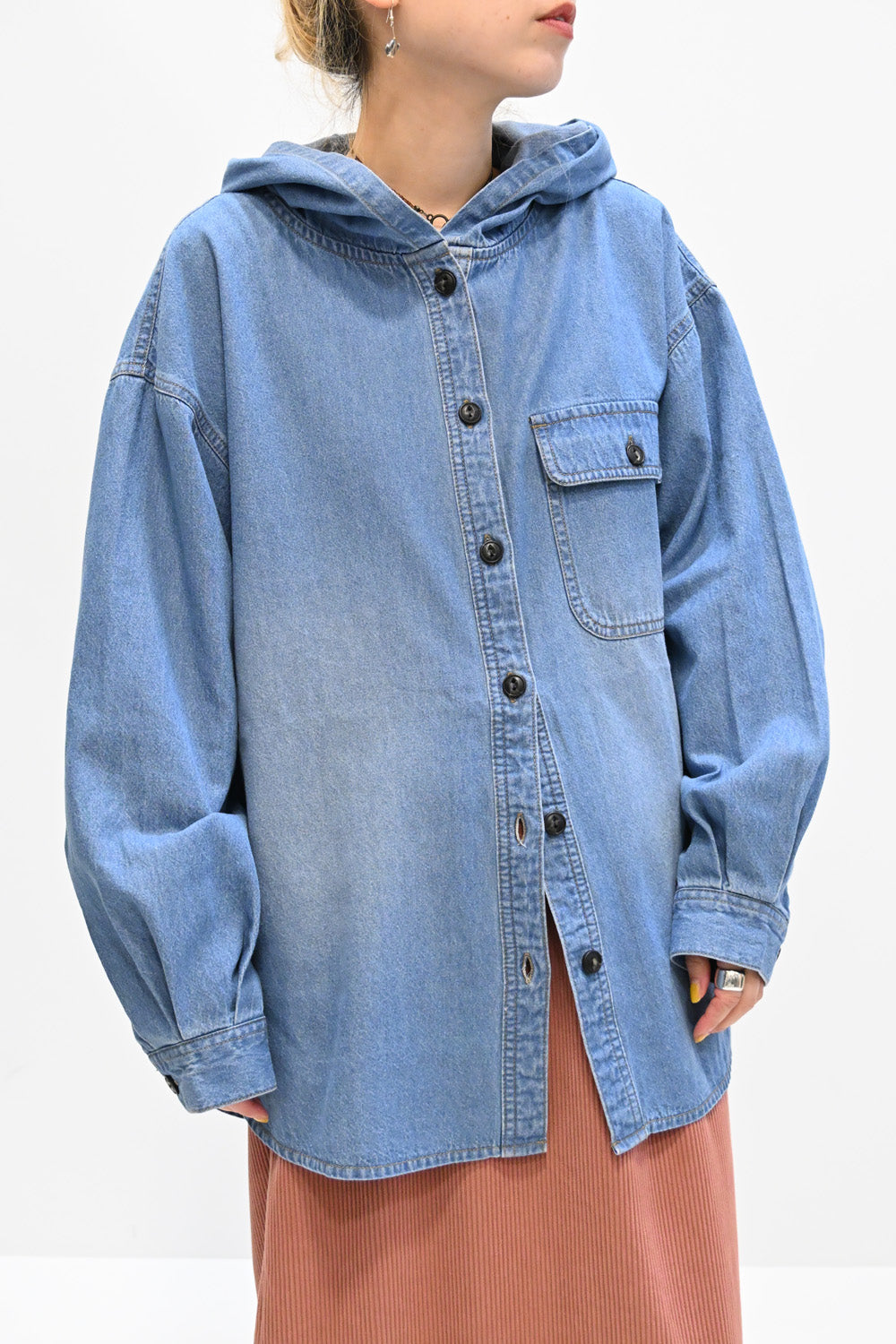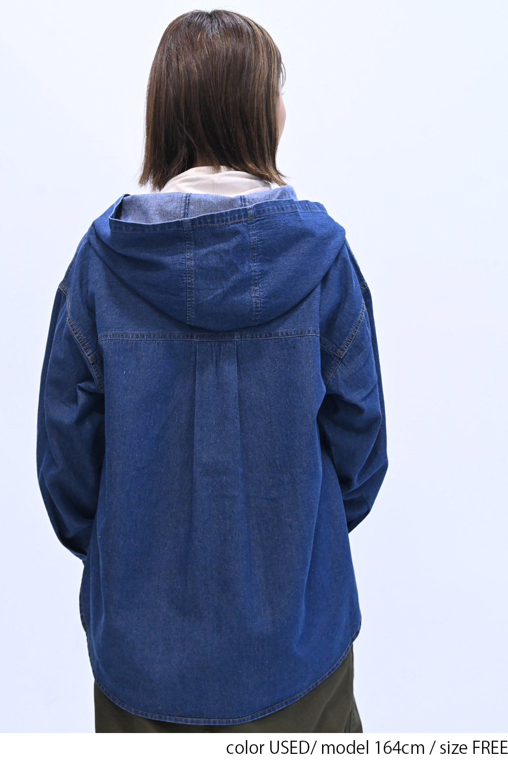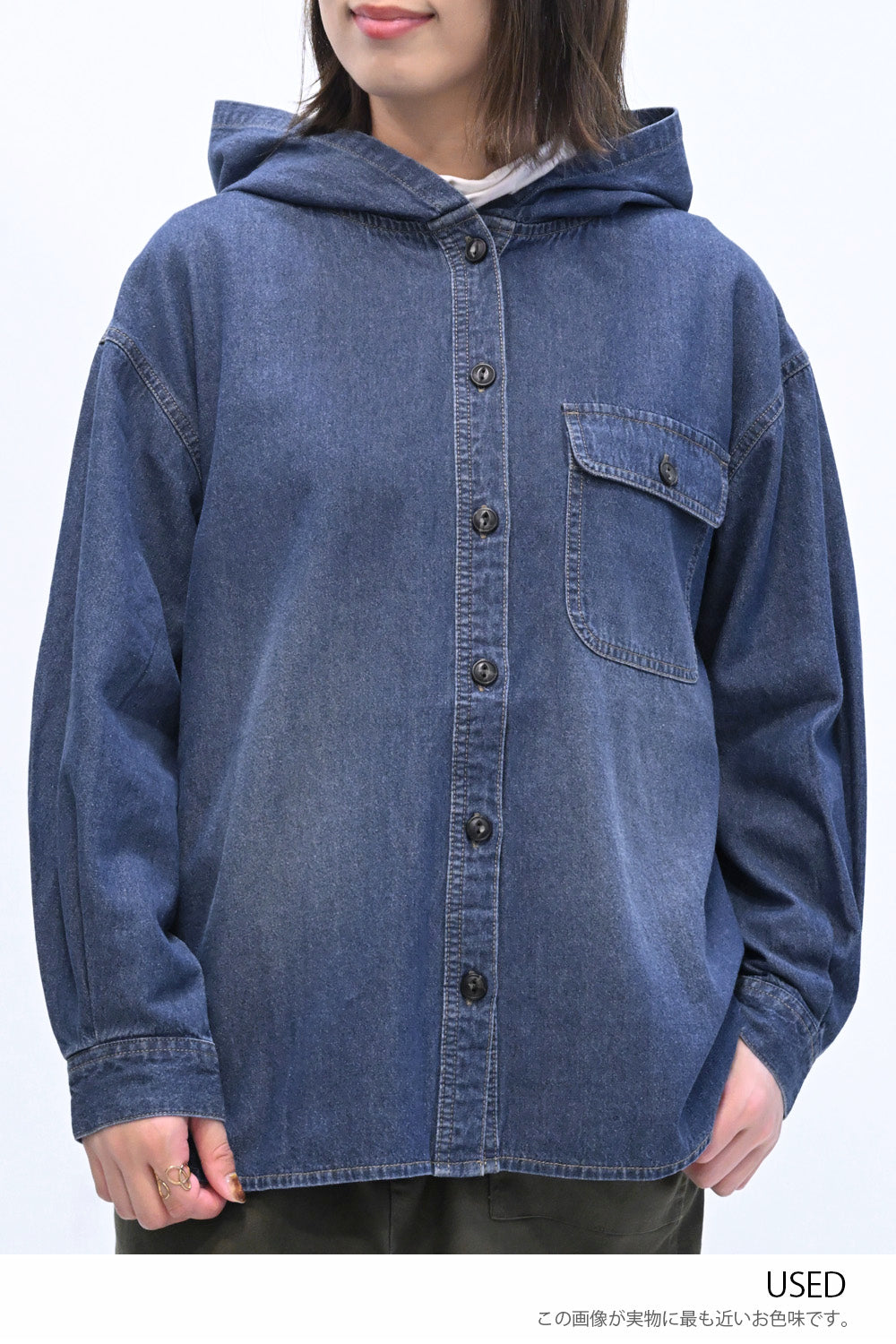 6オンスの薄手デニム生地を使用した、フード付きデニムシャツです。