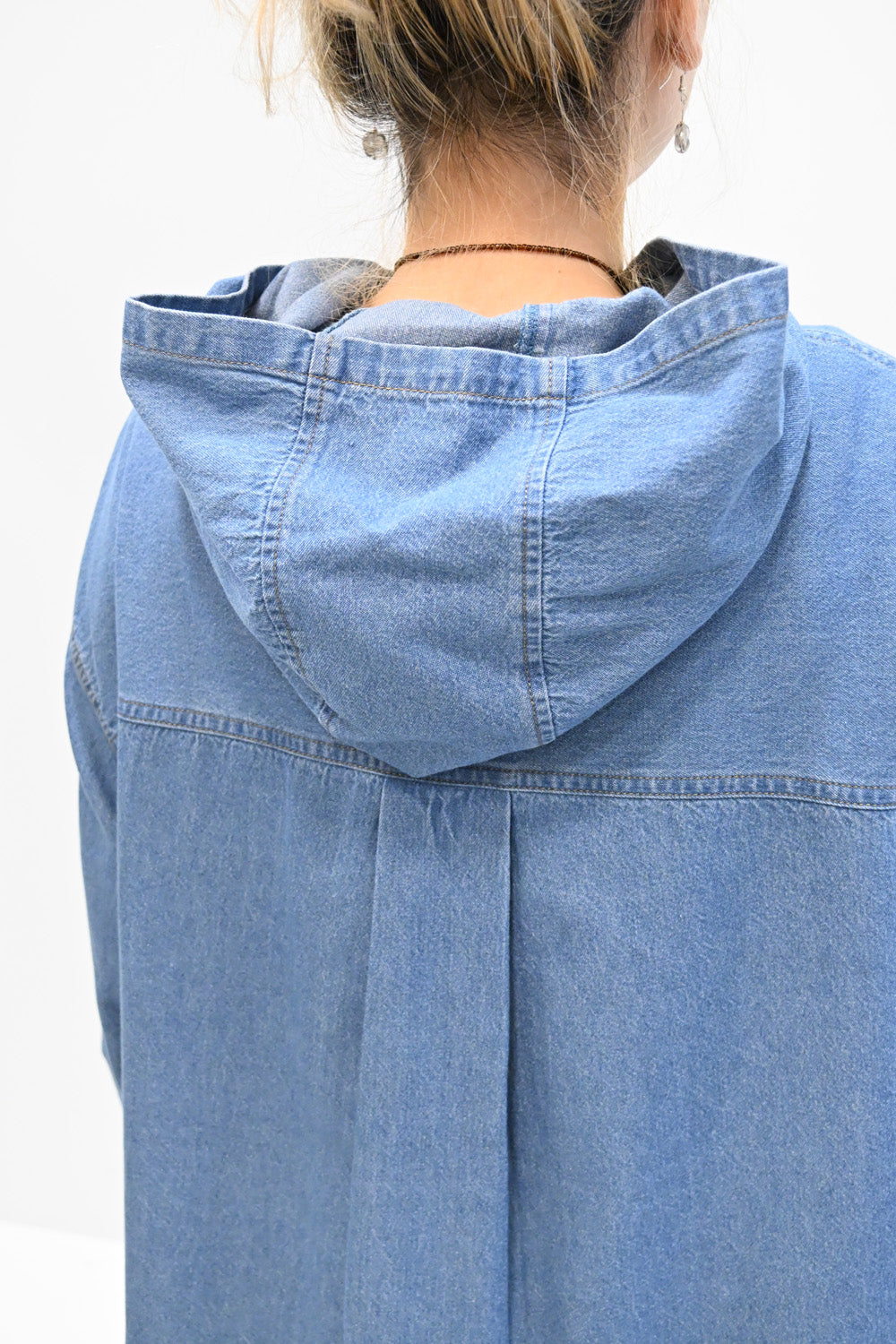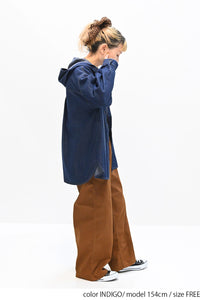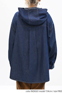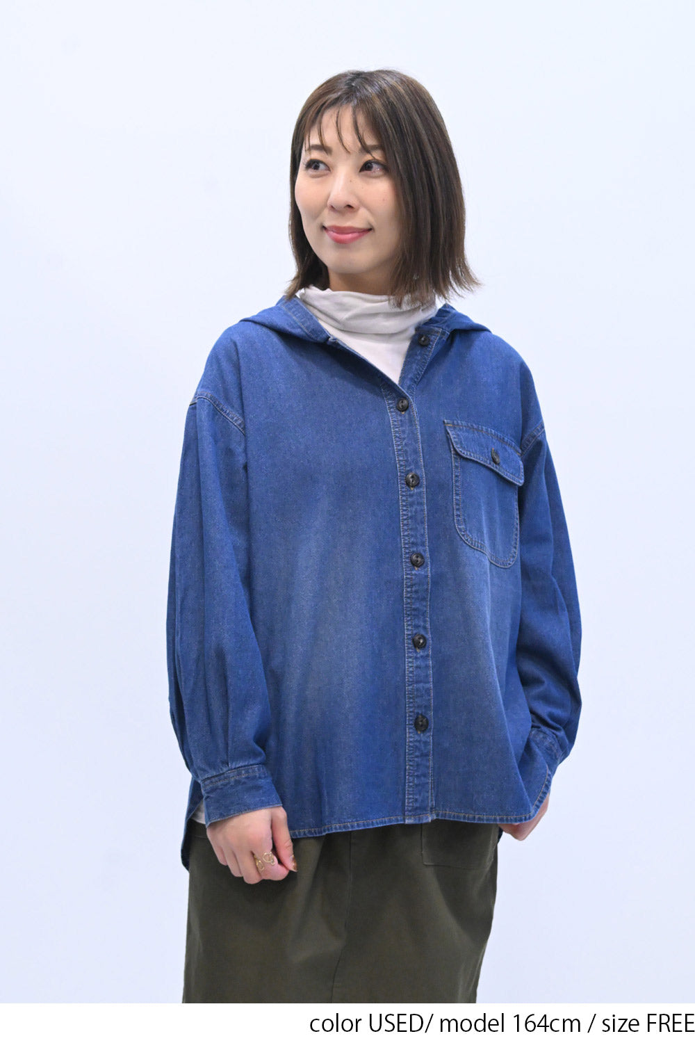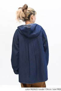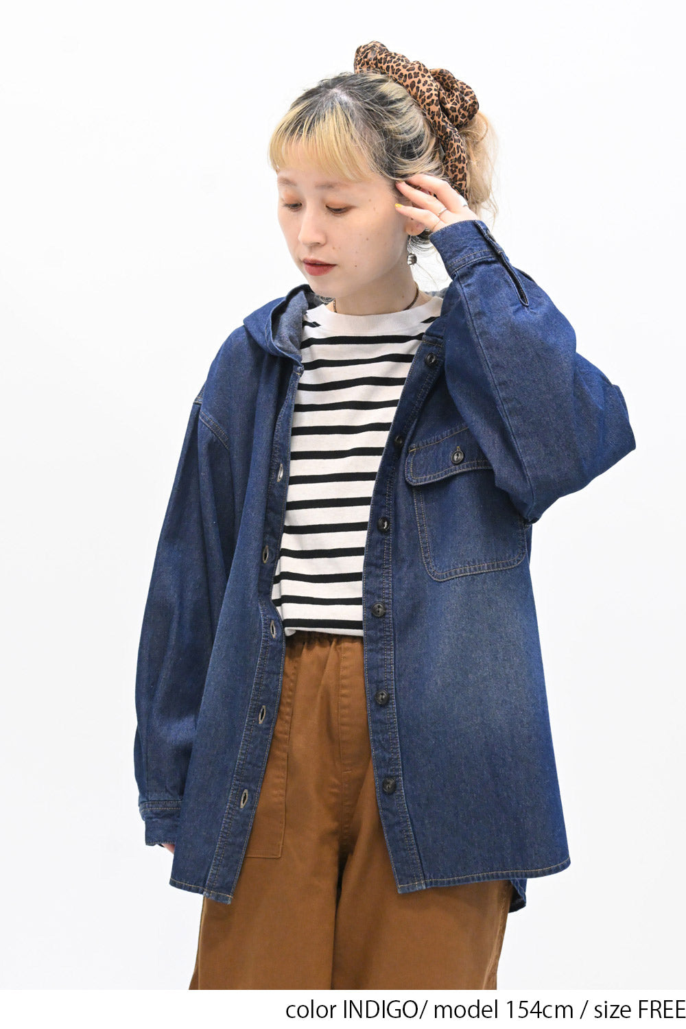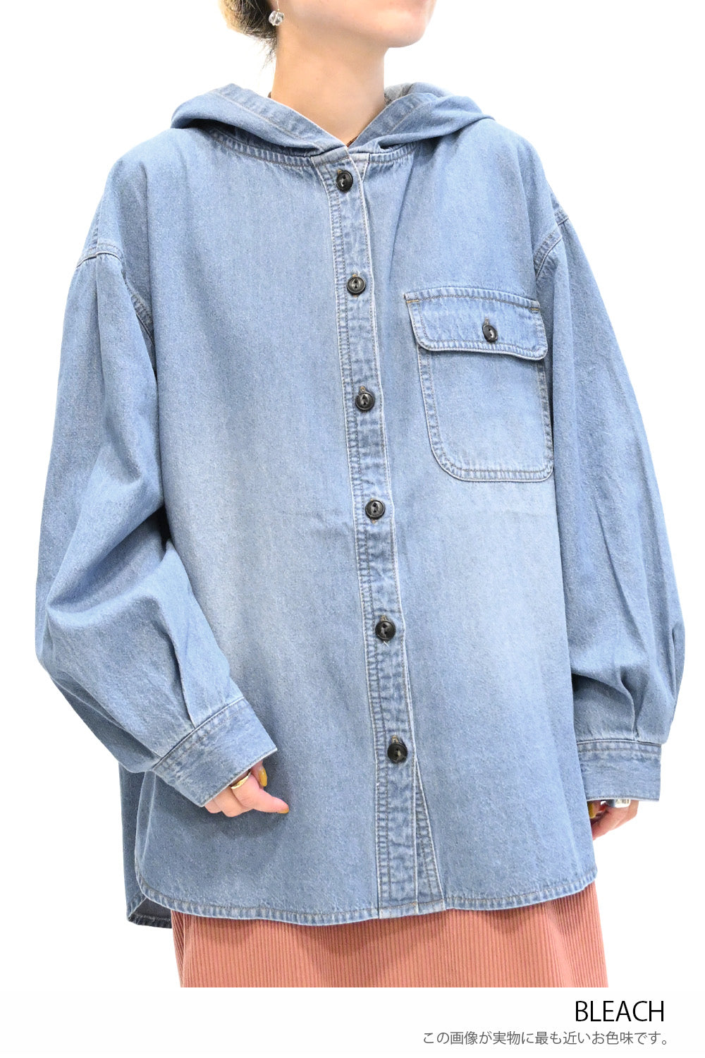 6オンスの薄手デニム生地を使用した、フード付きデニムシャツです。