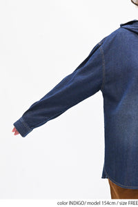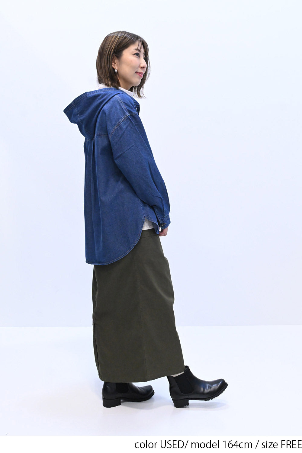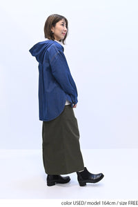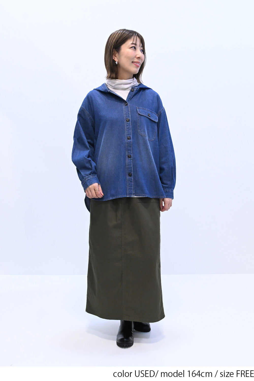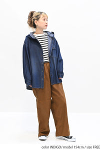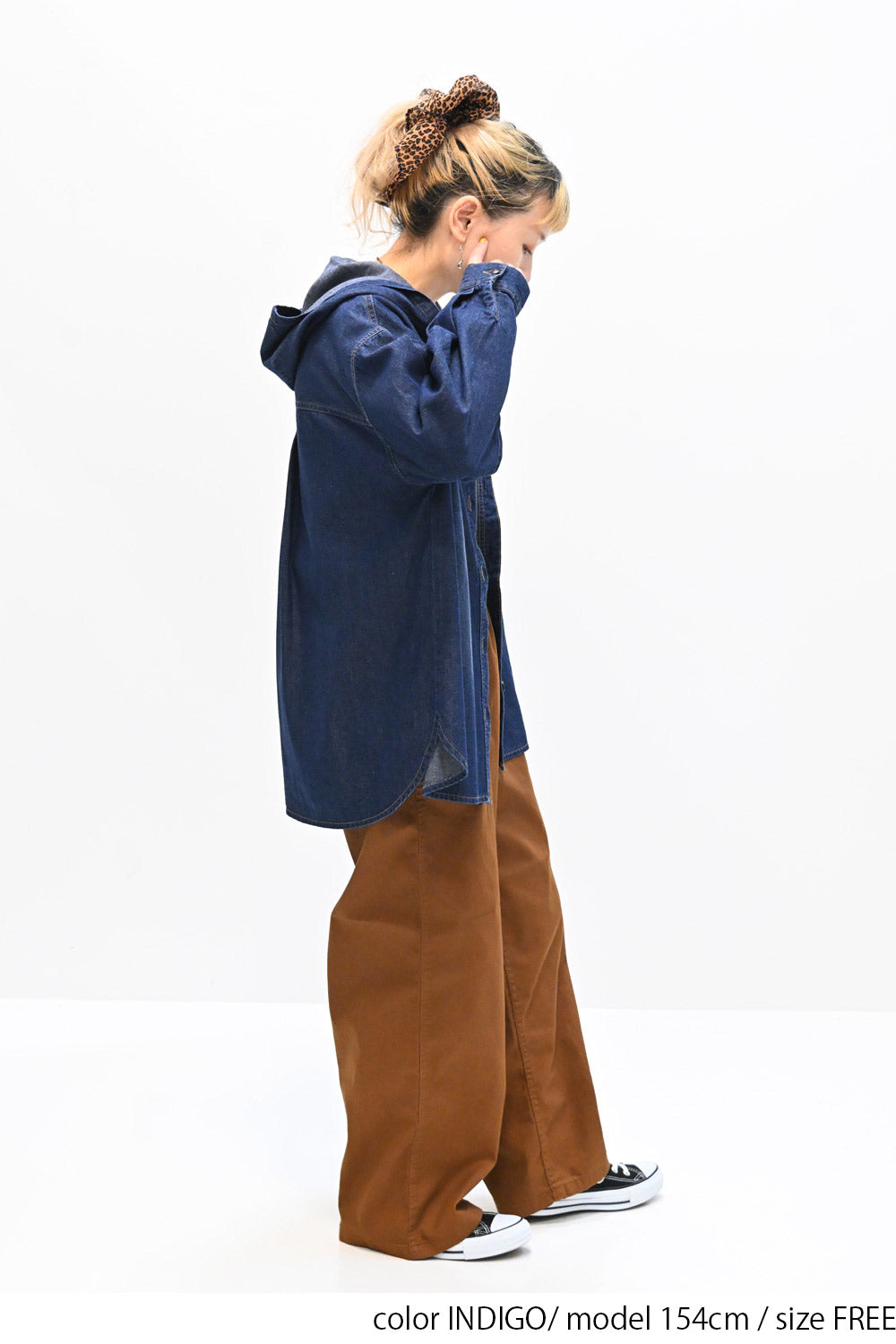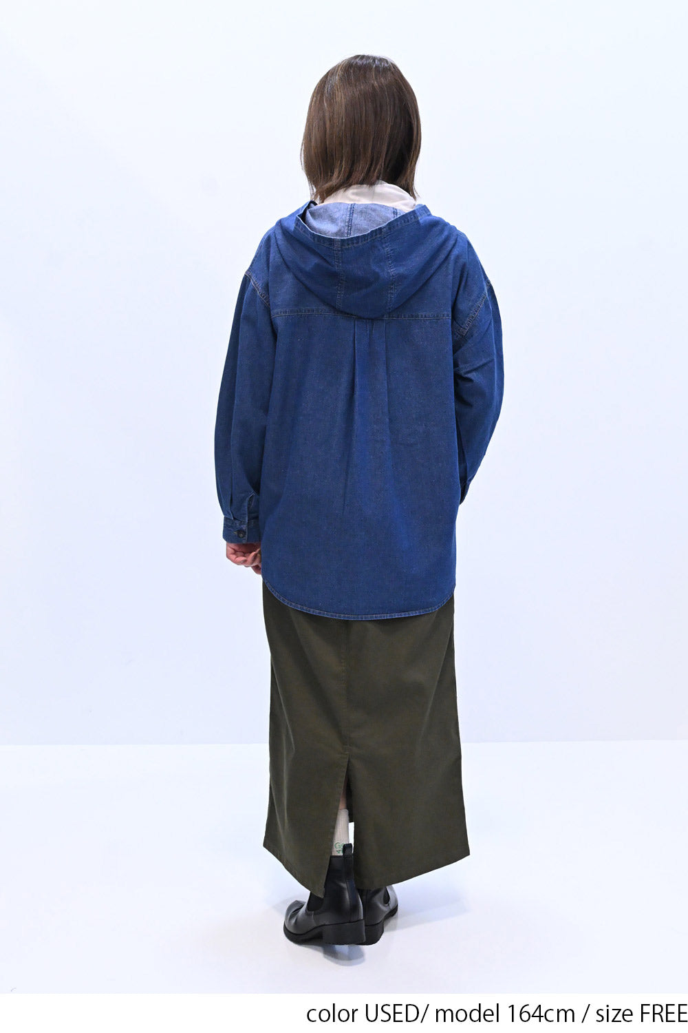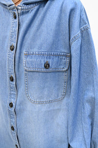 6オンスの薄手デニム生地を使用した、フード付きデニムシャツです。