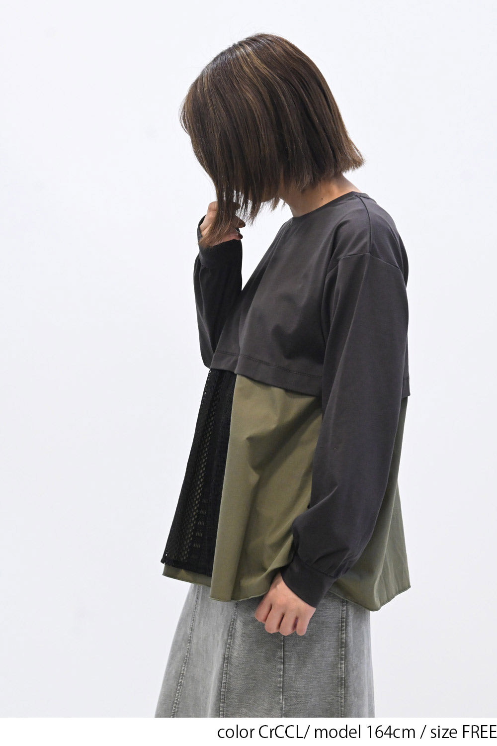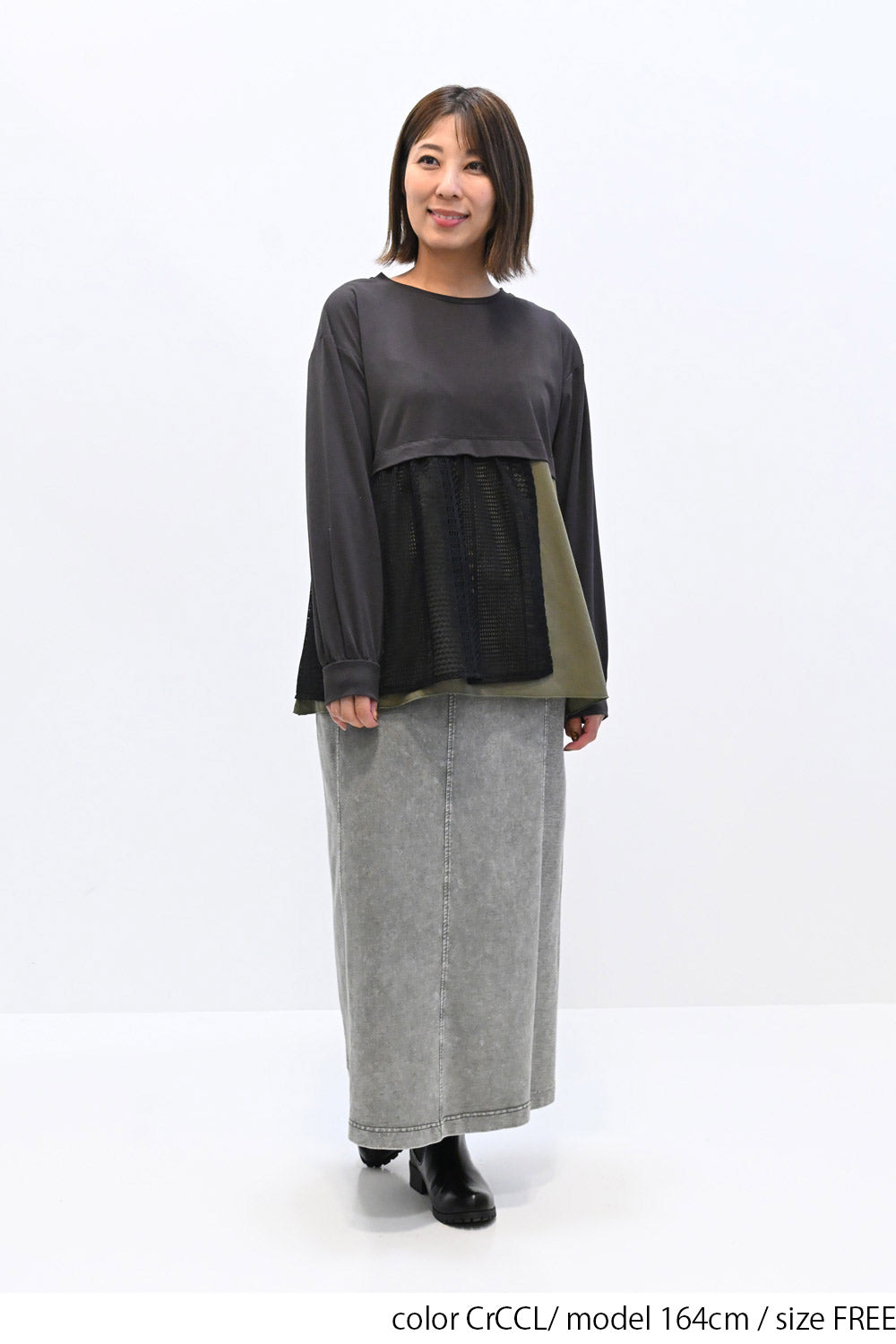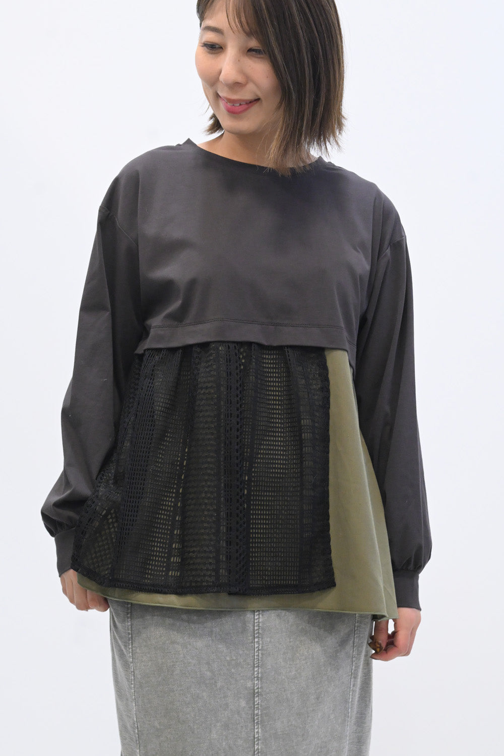 ウエスト位置から異素材で切り替えられたプルオーバーです。