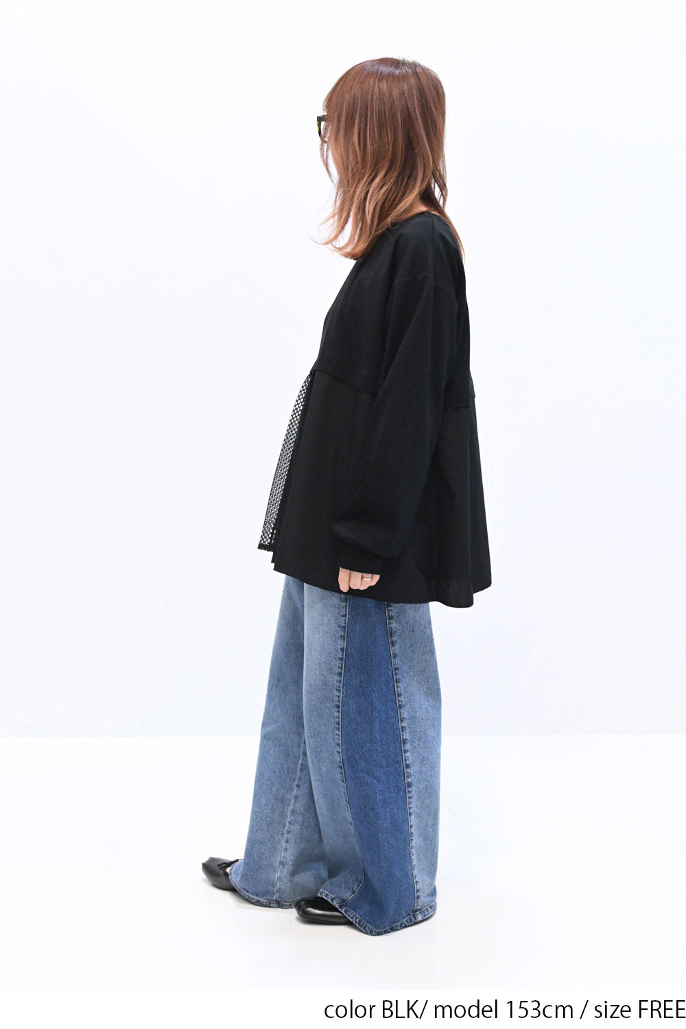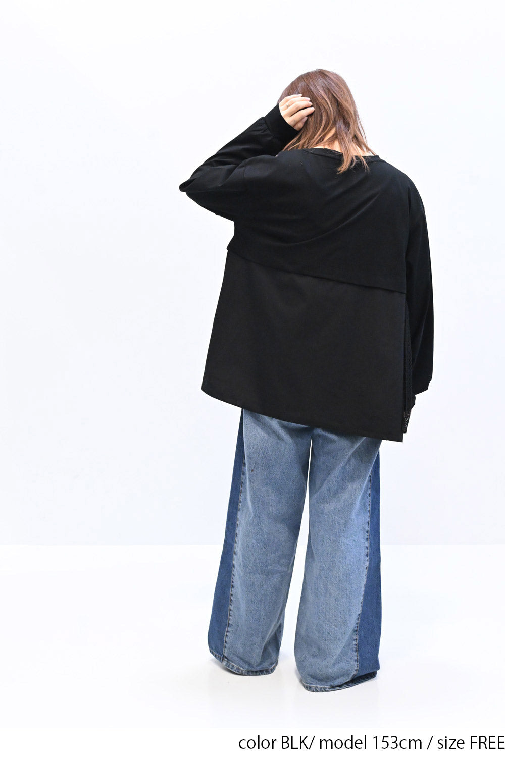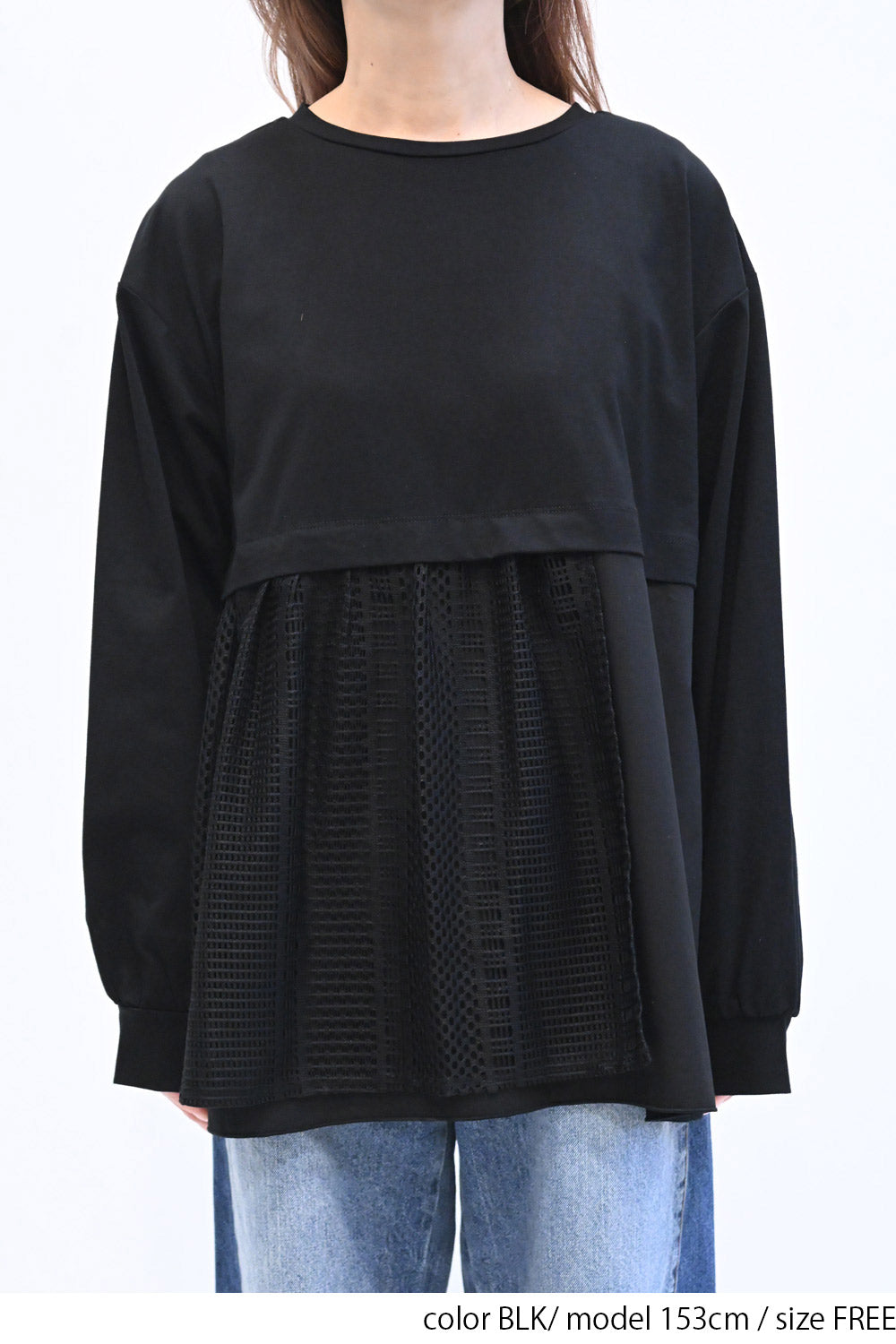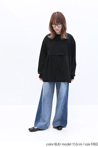 ウエスト位置から異素材で切り替えられたプルオーバーです。