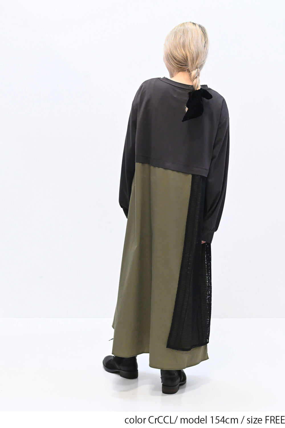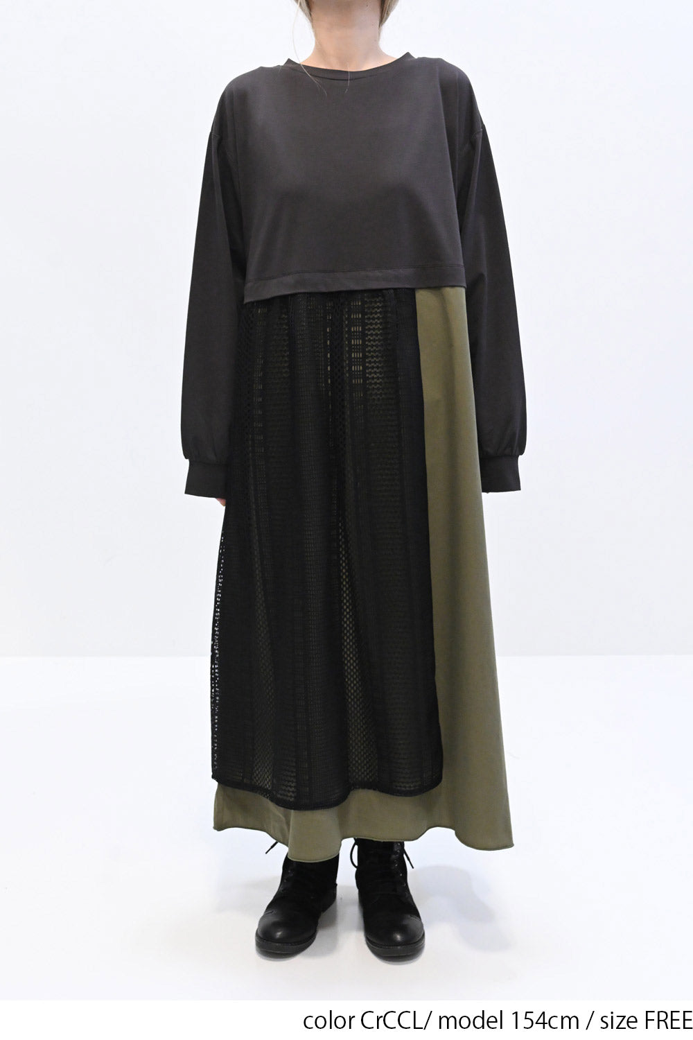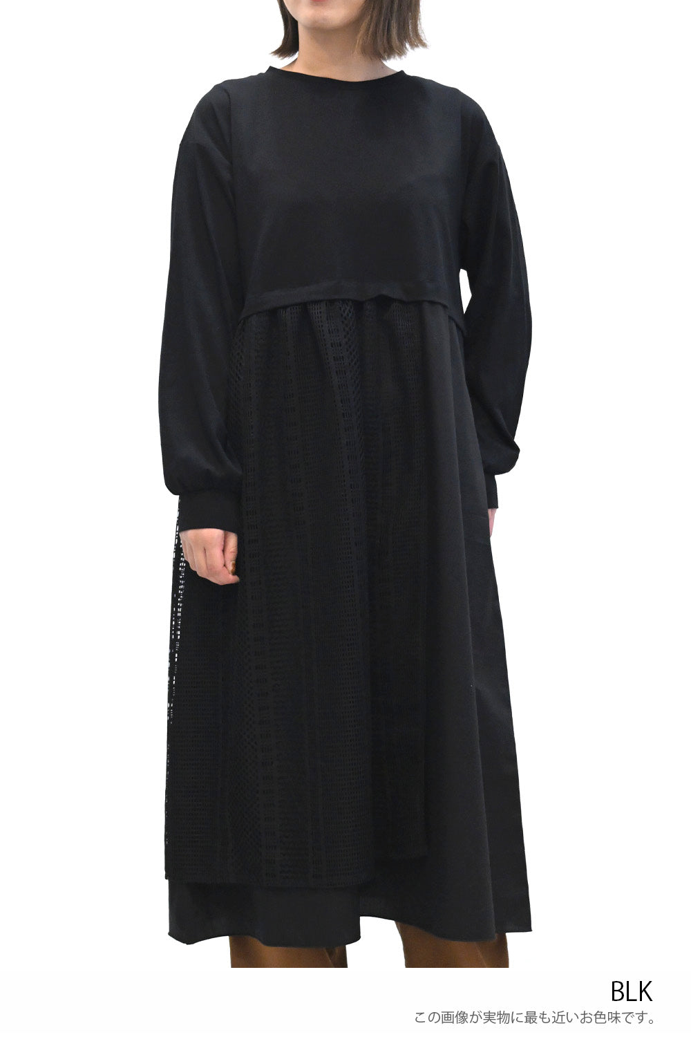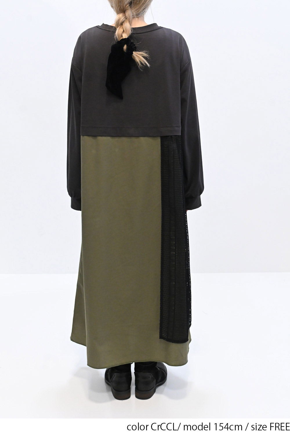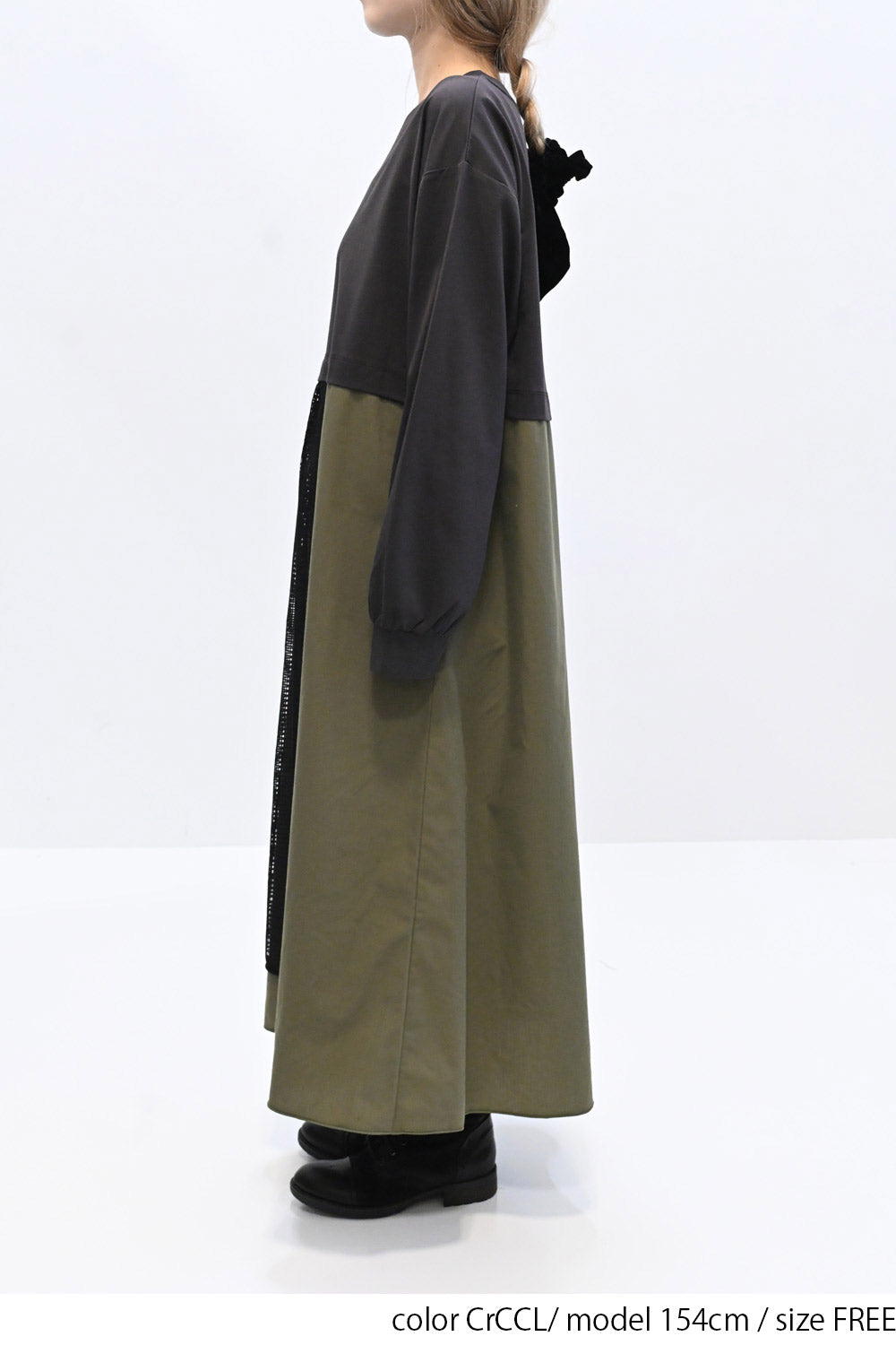 ウエスト位置から異素材で切り替えられたワンピースです。