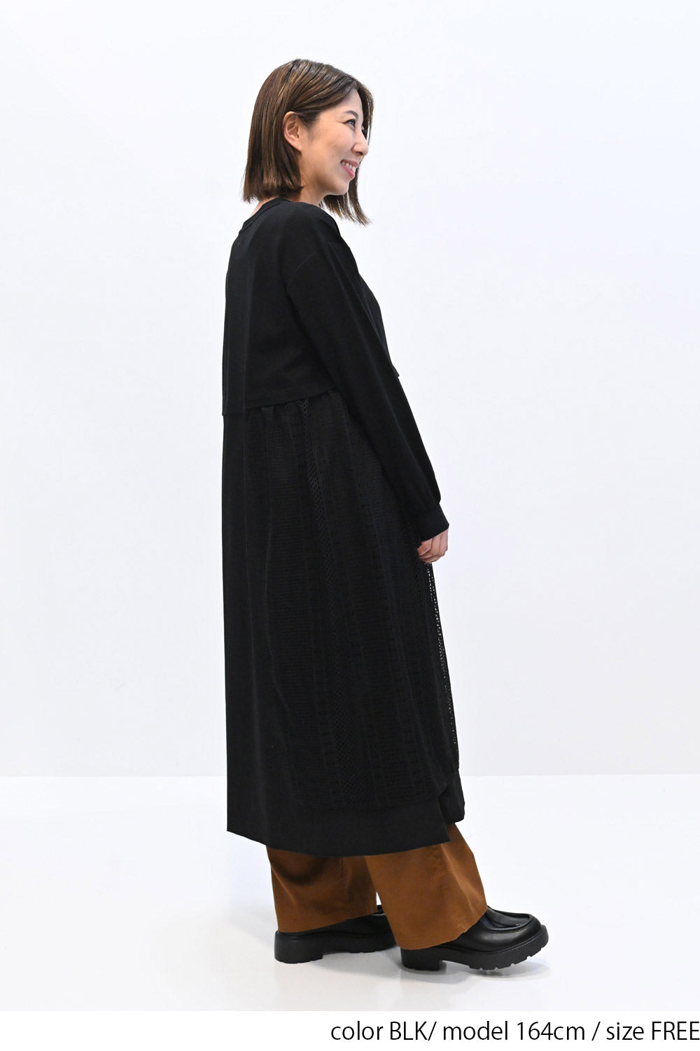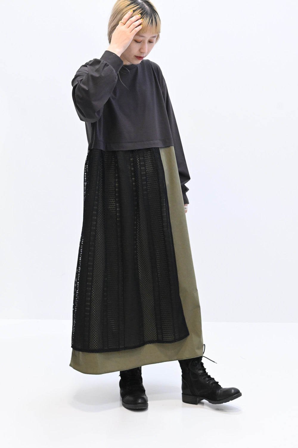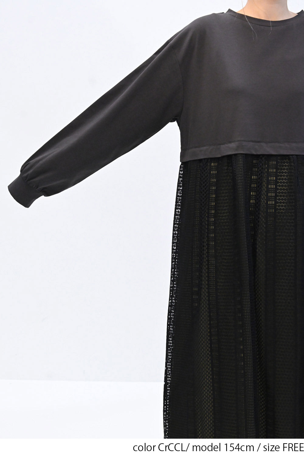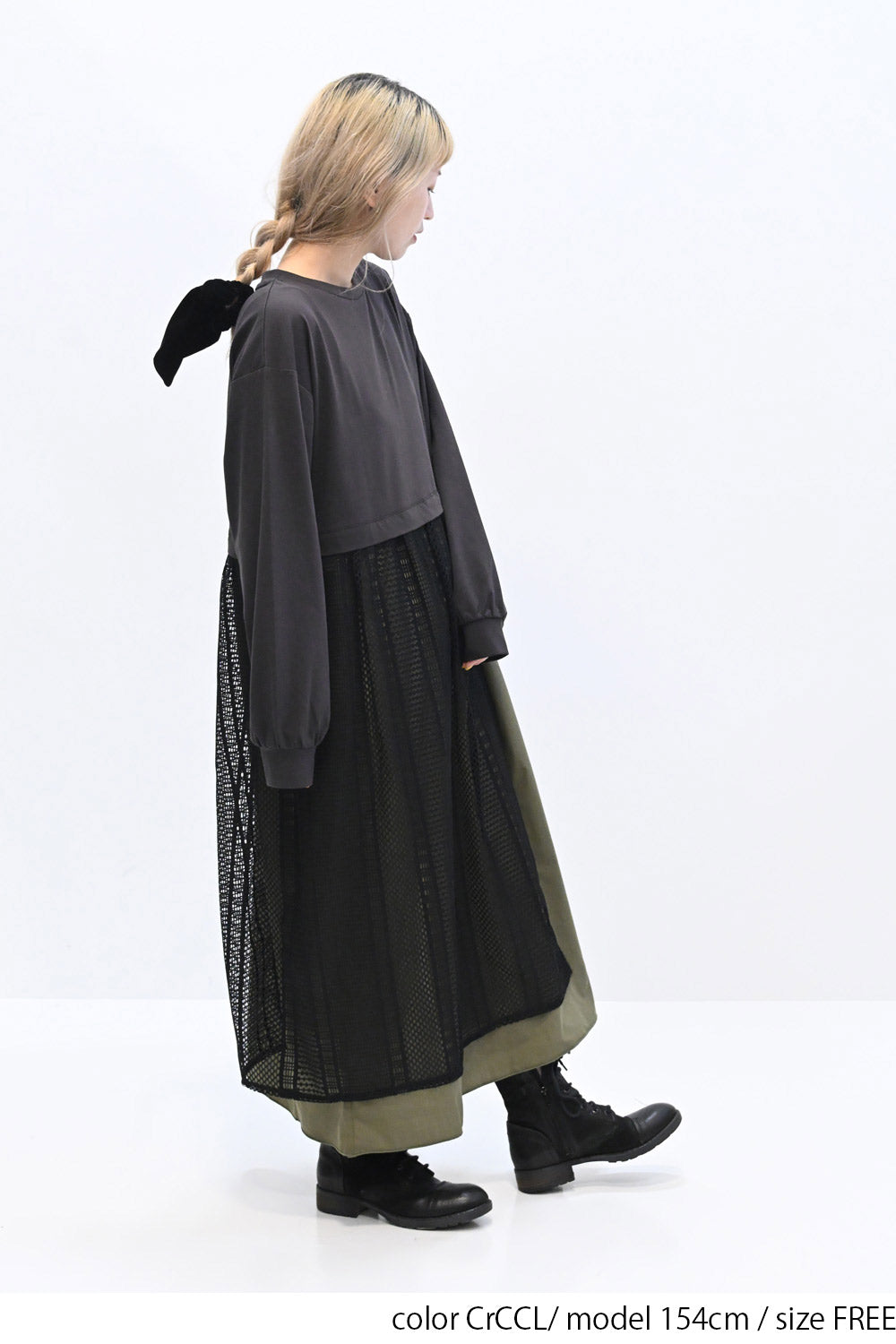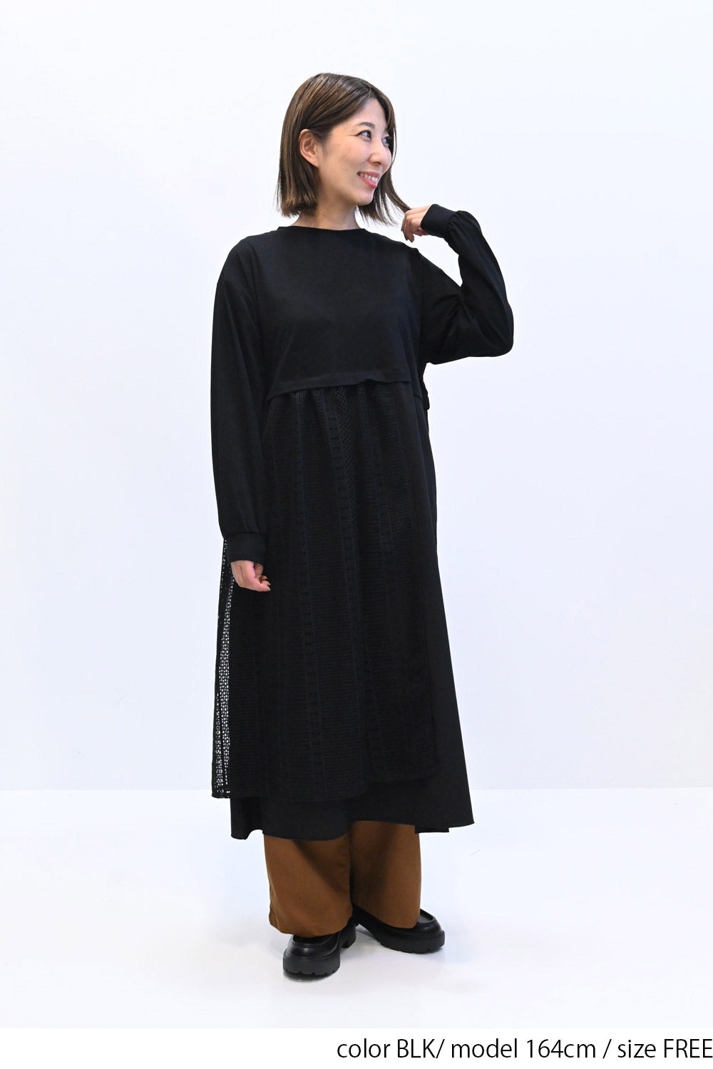 ウエスト位置から異素材で切り替えられたワンピースです。