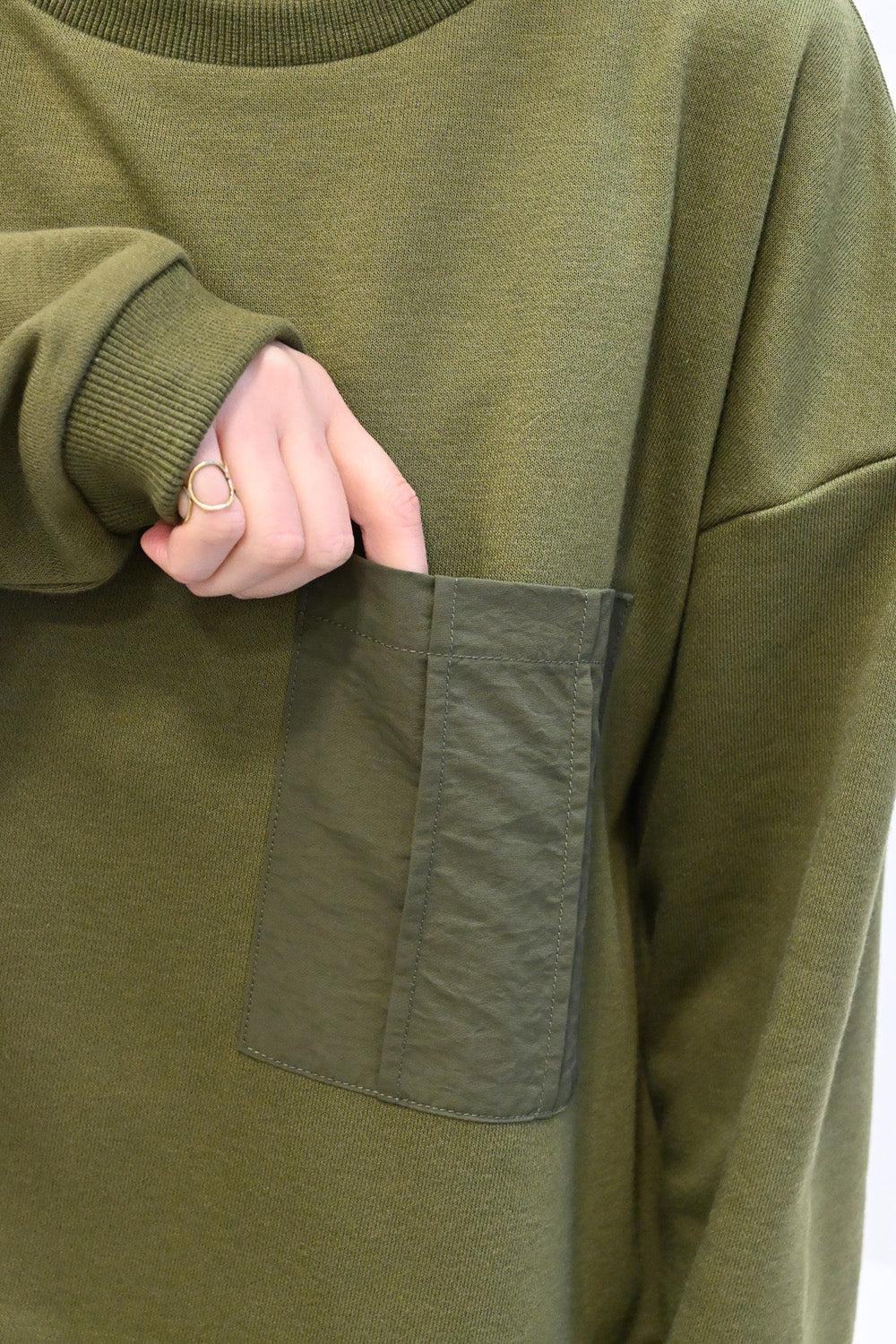 上身頃:柔らかな裏毛素材で、肌なじみの良い着心地。