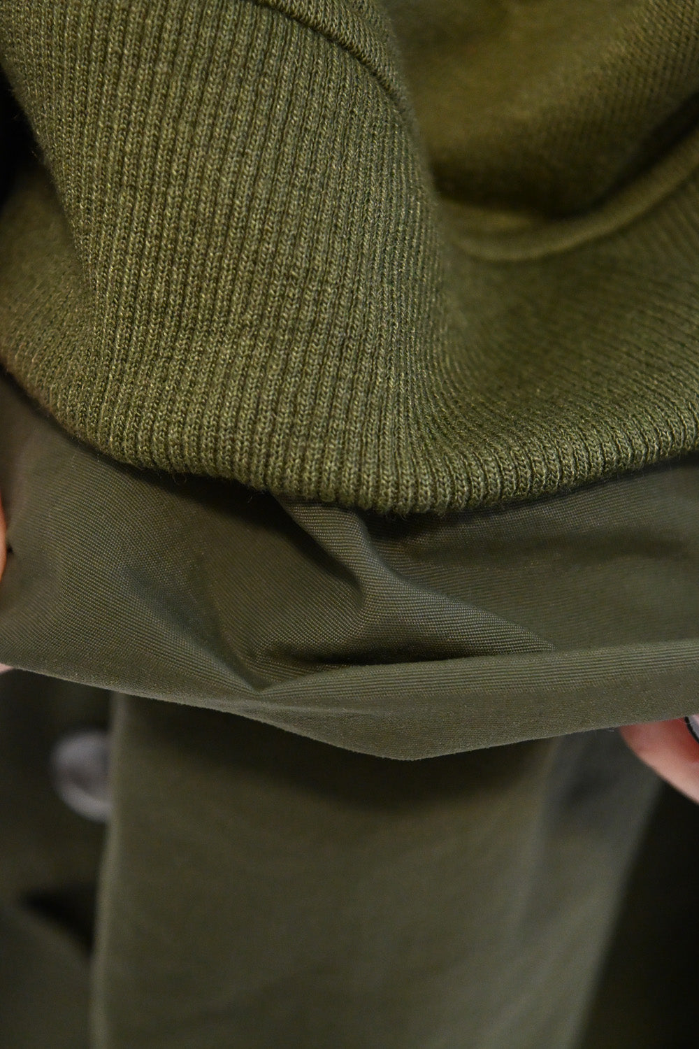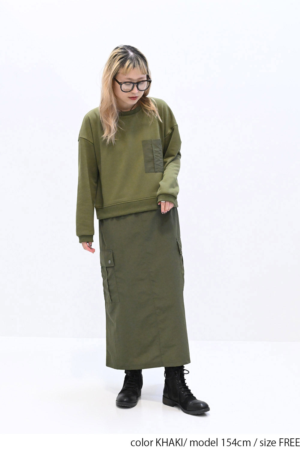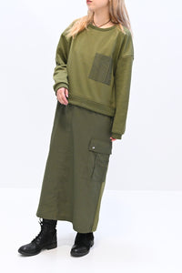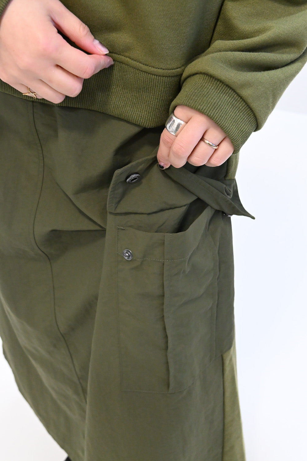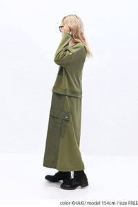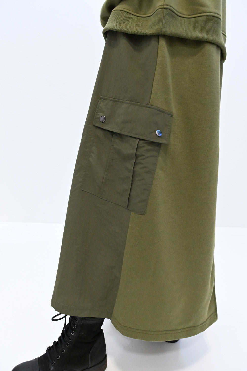 スカート部分:軽くて丈夫なナイロン素材で切り替えました。ミリタリーライクな質感が魅力です。