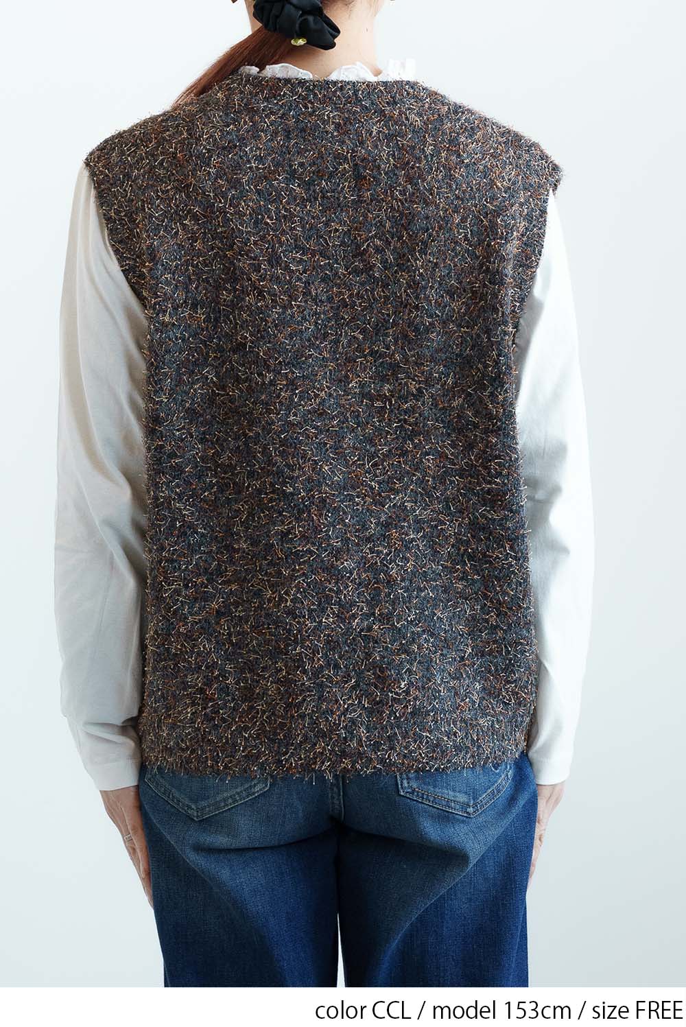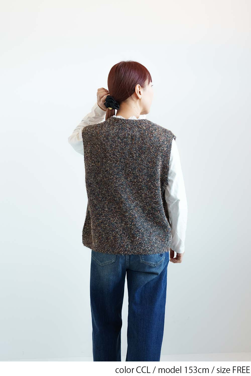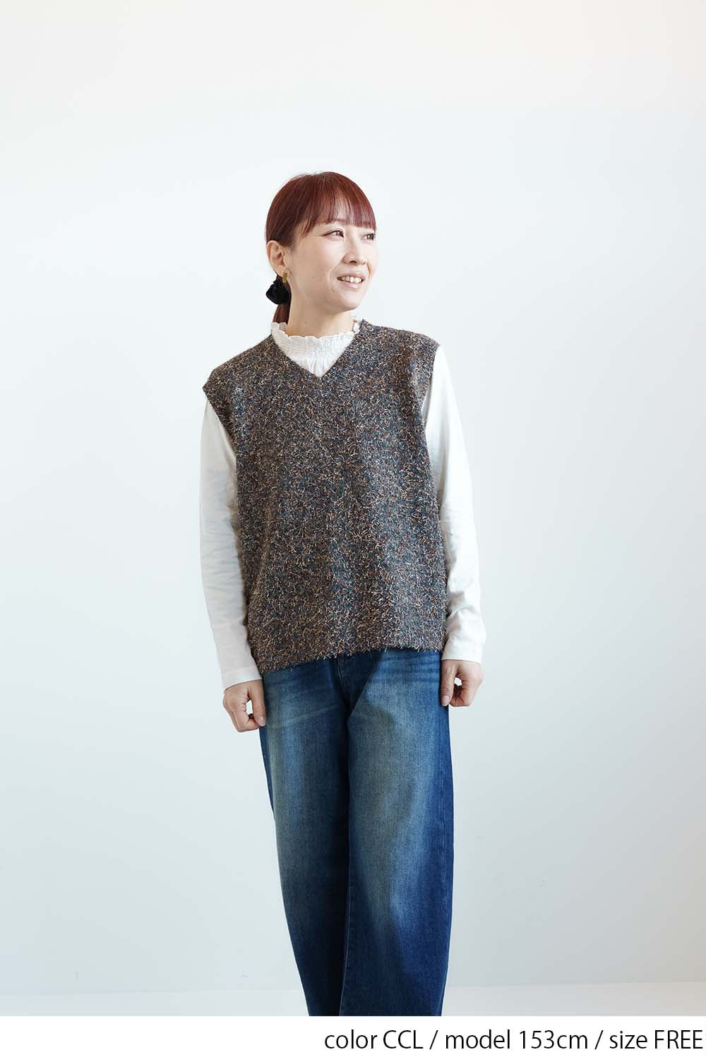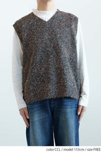 カラフルなミックスヤーンが目を惹くニットベスト。