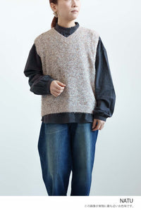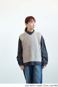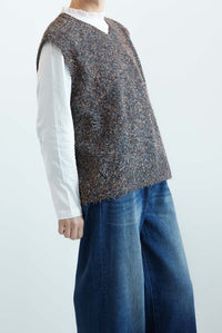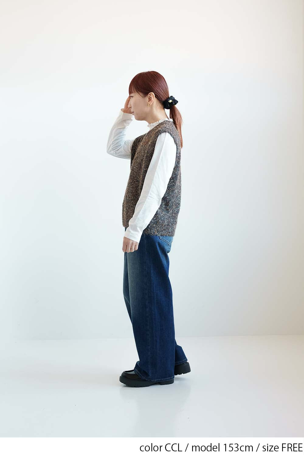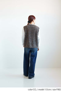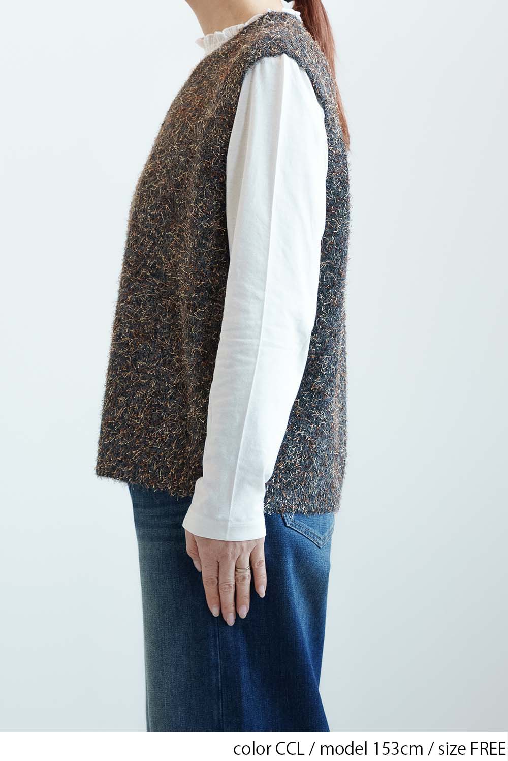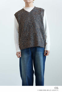 カラフルなミックスヤーンが目を惹くニットベスト。